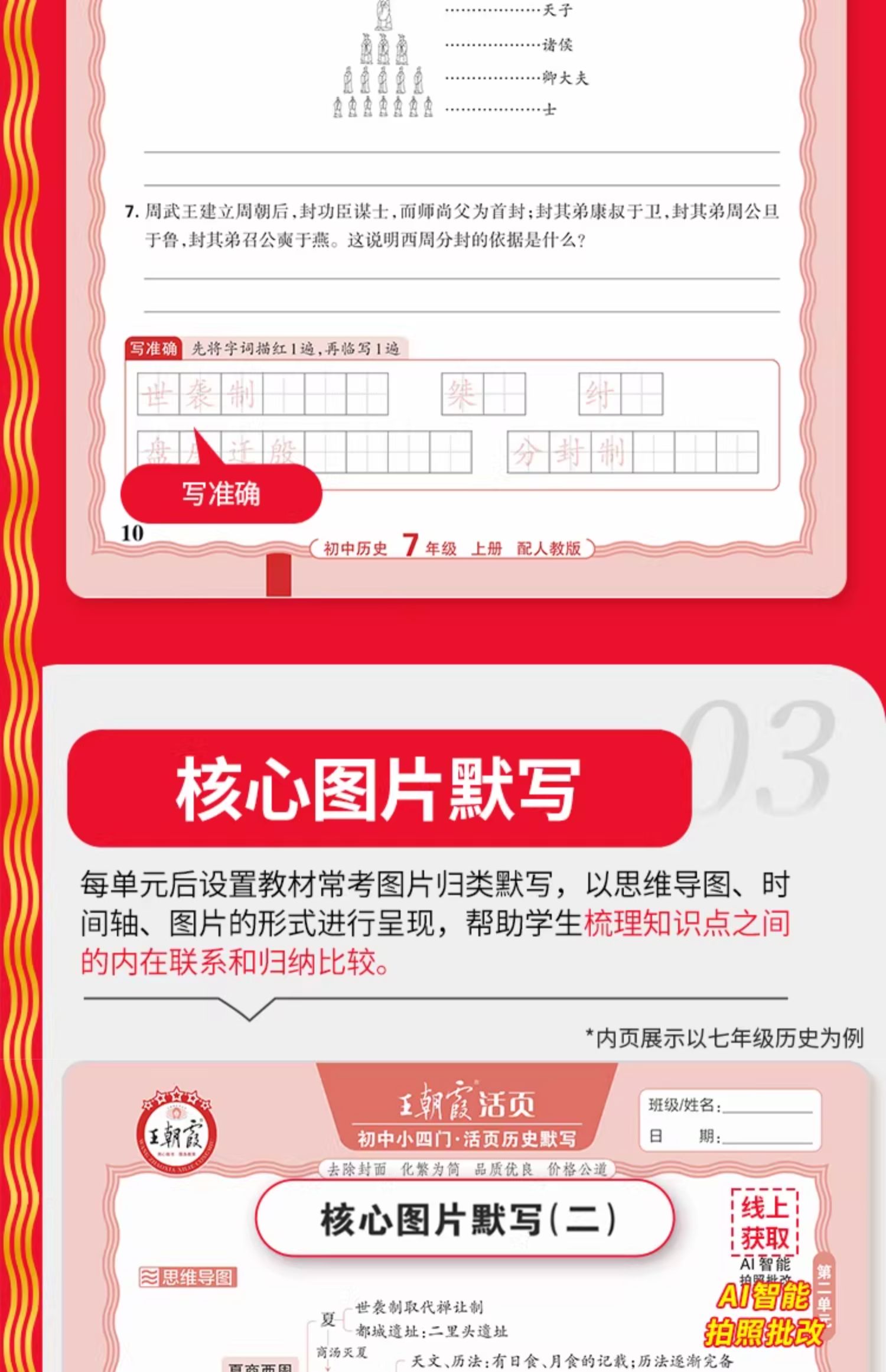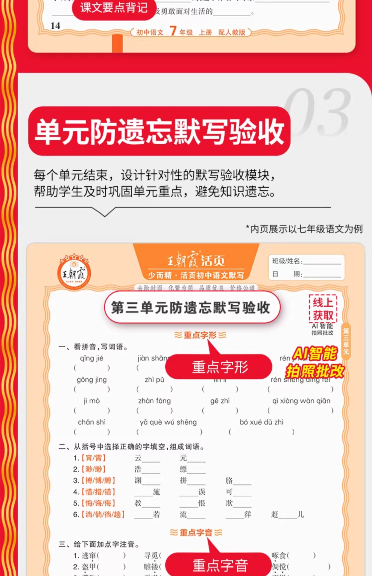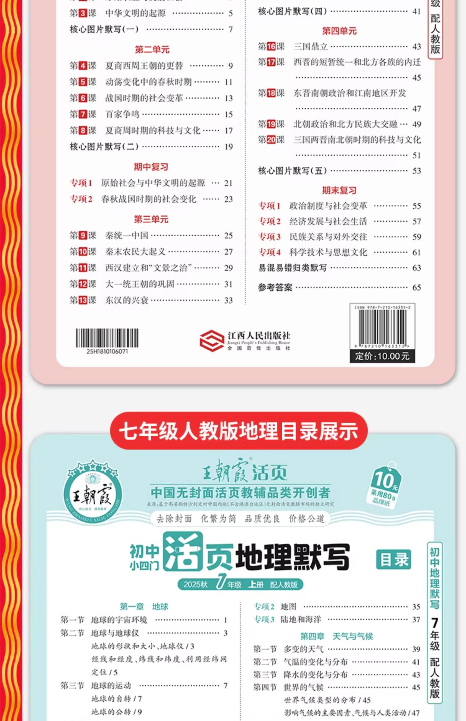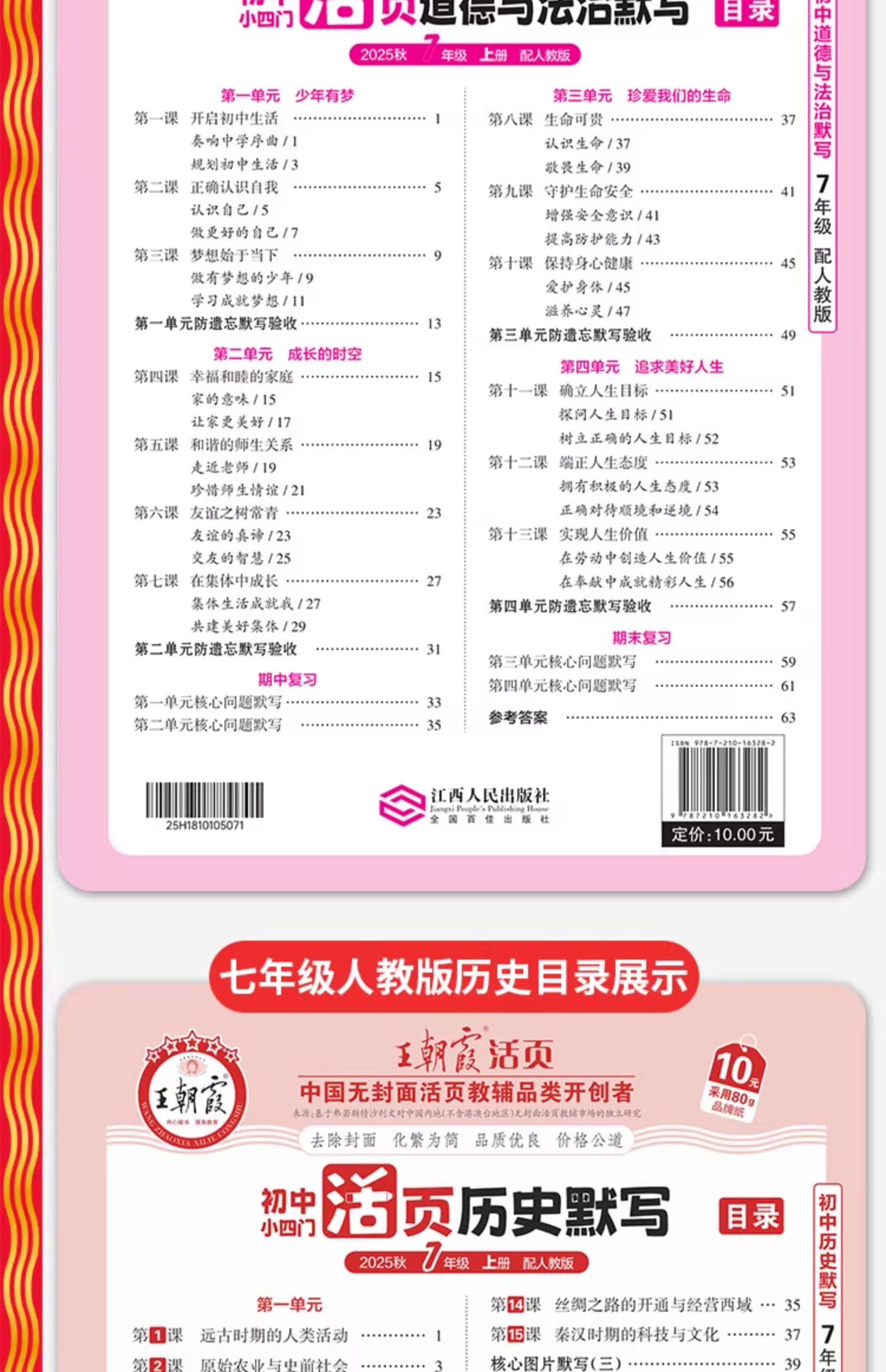 2025秋王朝霞活页默写初中小四门七八九年级上册政治历史地理生物人教版初一二三小四科语数英课本同步练习册试卷基础知识复习资料