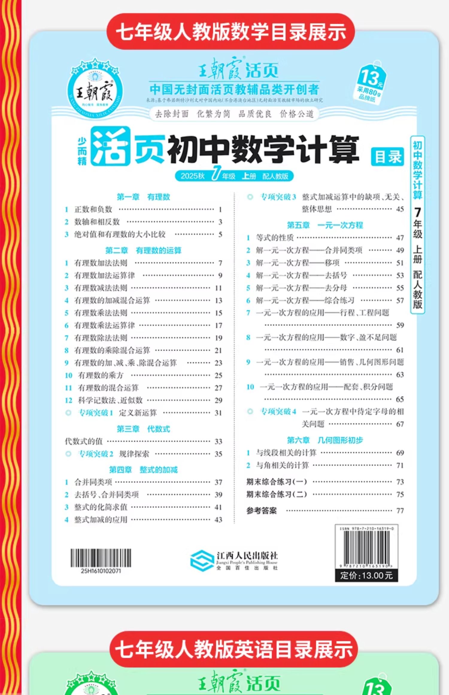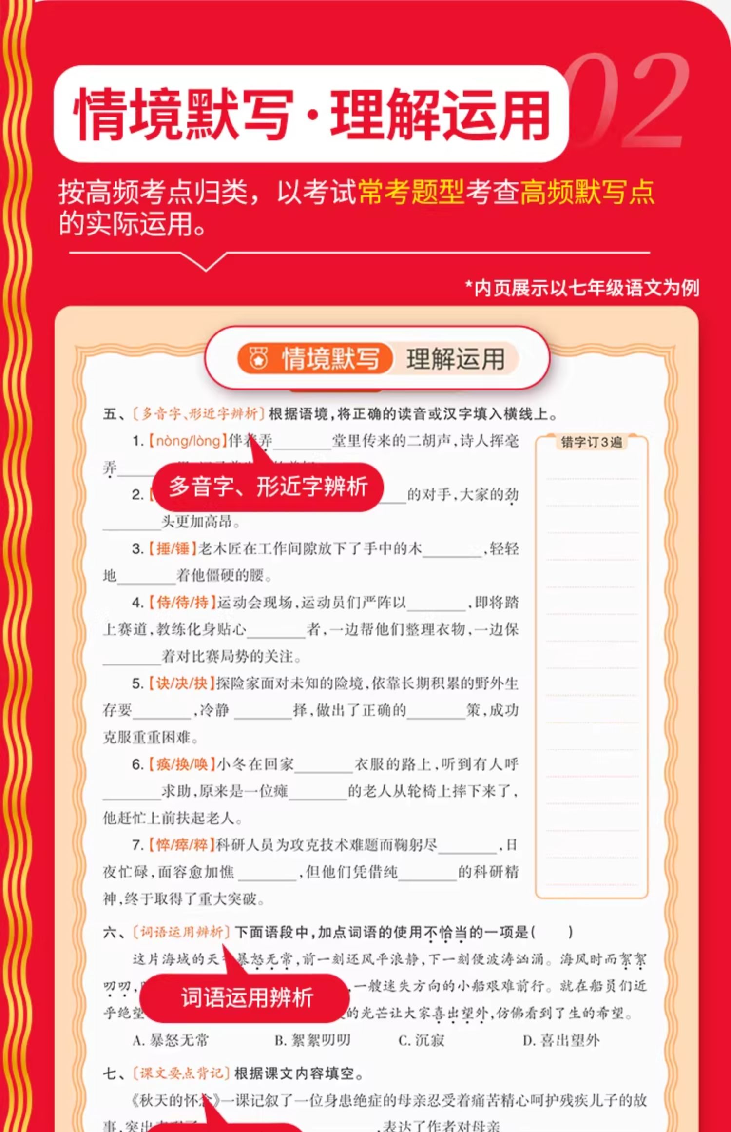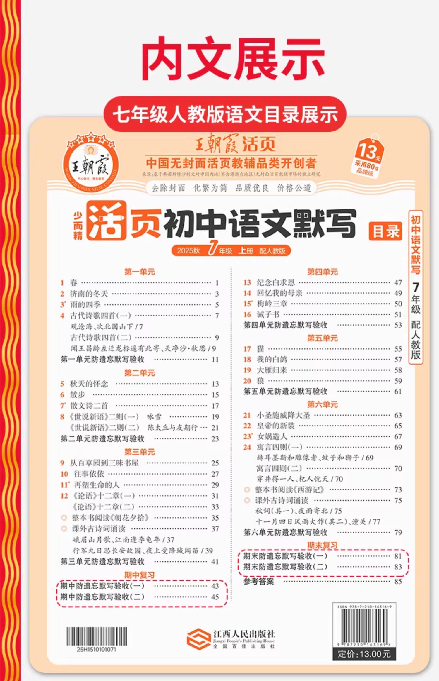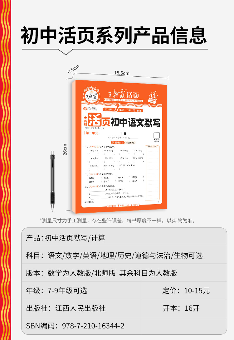 2025秋王朝霞活页默写初中小四门七八九年级上册政治历史地理生物人教版初一二三小四科语数英课本同步练习册试卷基础知识复习资料