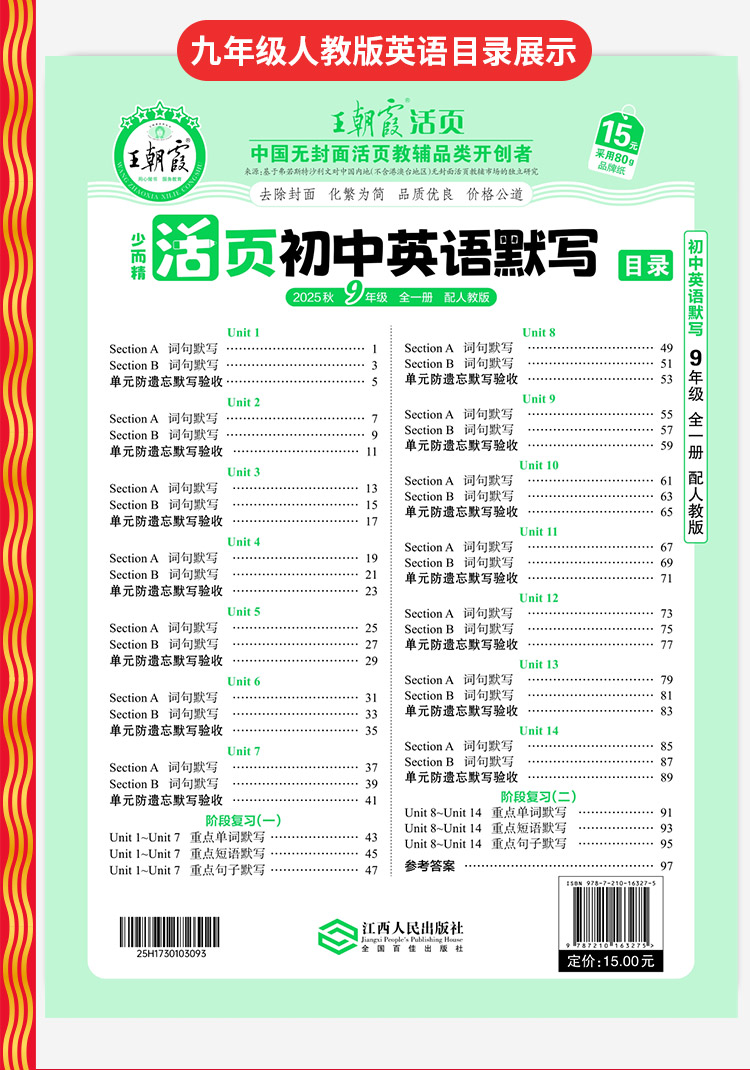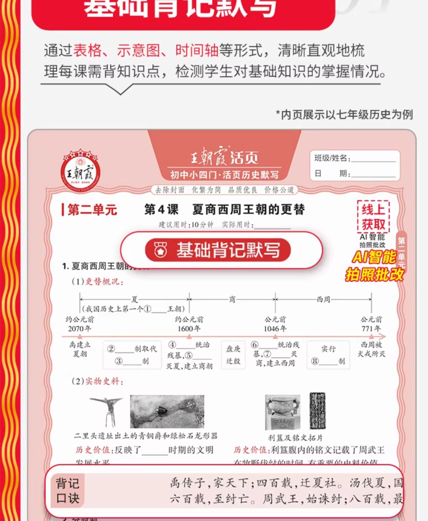 2025秋、王朝霞活页默写、初中小四门、七八九年级、人教版、课本同步、复习资料