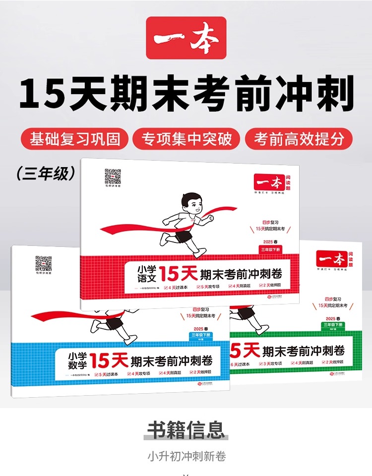 2025秋 一本15天期末考前冲刺新卷一二三四五六年级上下册语文数学英语期中期末测试人教北师版小学生同步单元练习册期末100百考试