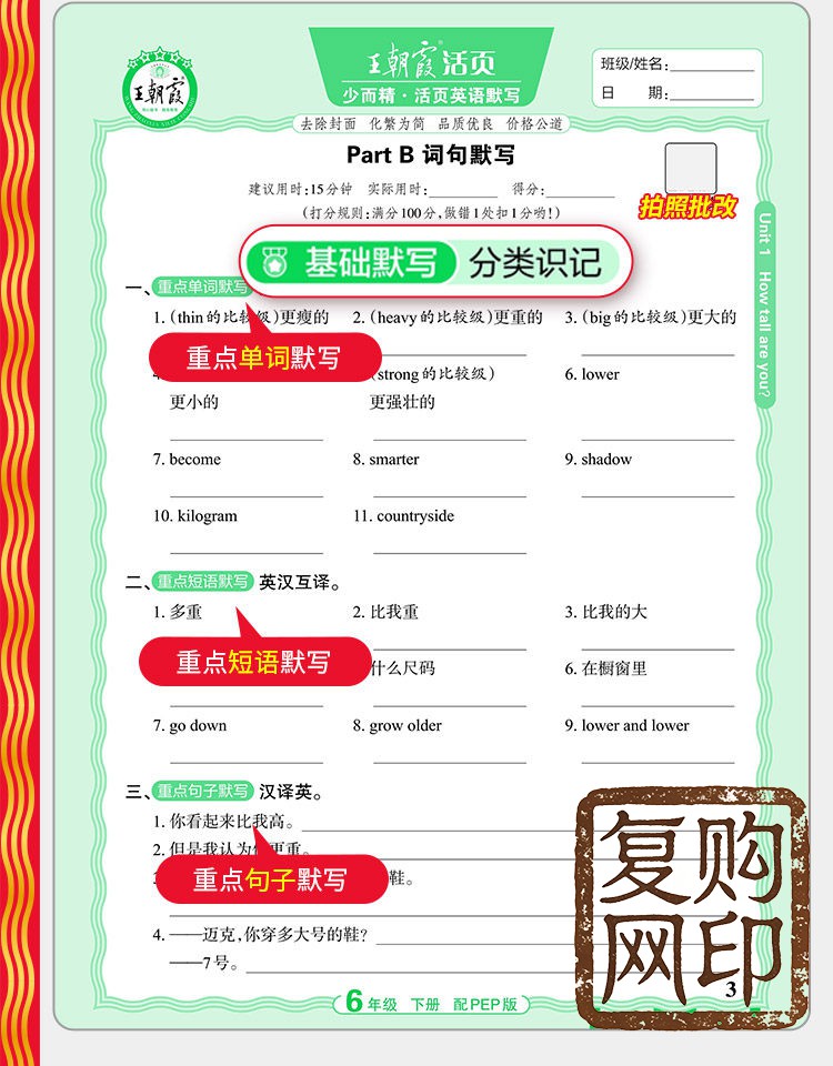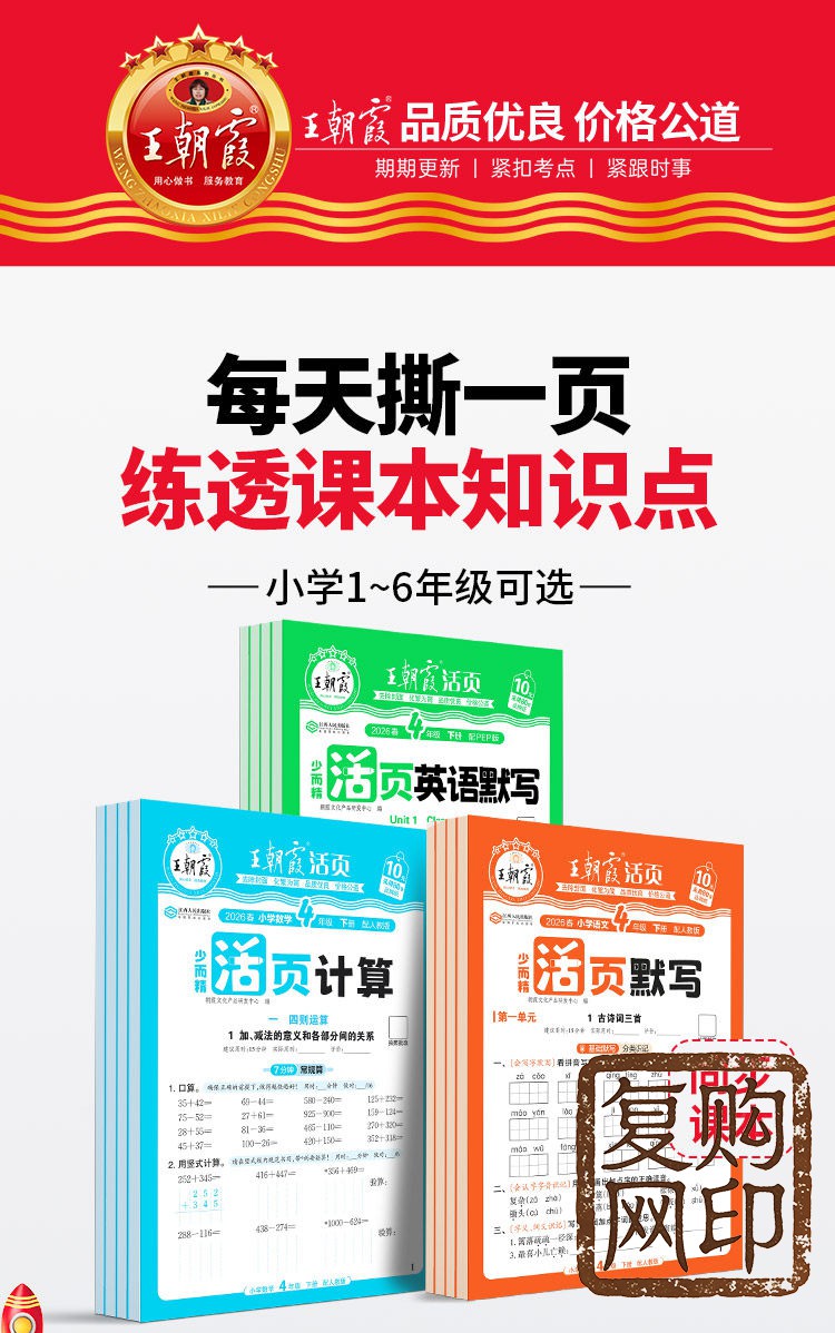 王朝霞活页默写、同步练习册、一课一练、凑十法、计算能手、专项积累