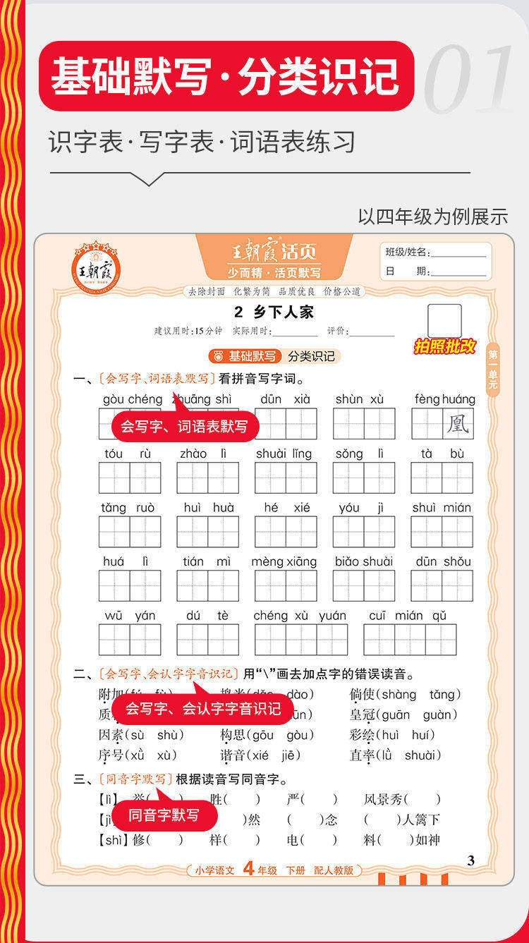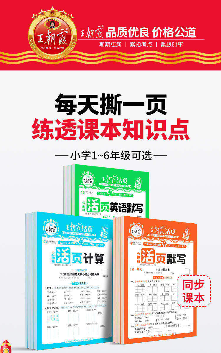 2026王朝霞活页默写计算能手一二三四五六年级上下册同步练习人教版一课一练语文数学英语每日一练看拼音基础