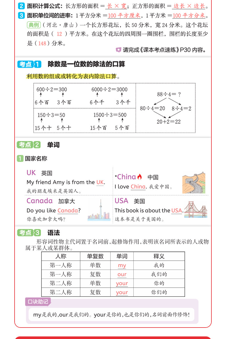 新一本 小学语文 小学数学 小学英语 考点速记手册 复习资料