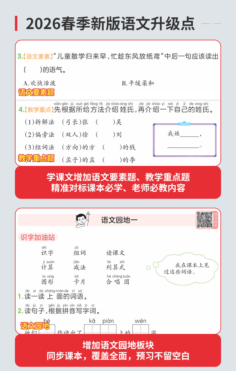26新版 一本预备 一二年级 寒假预习 衔接同步训练 新学期练习册