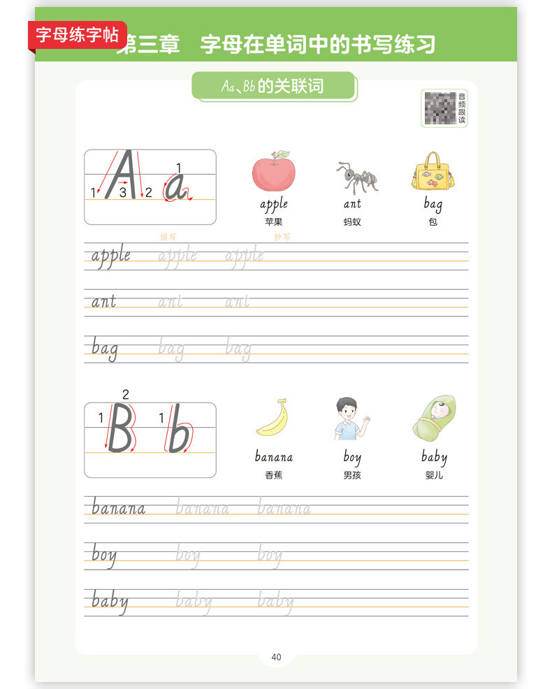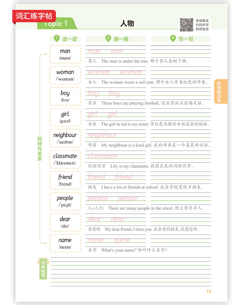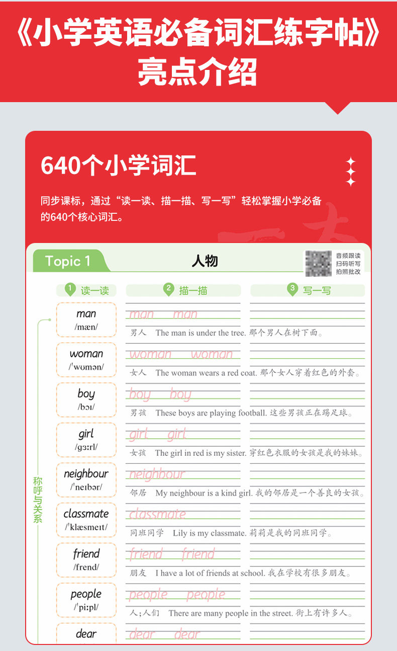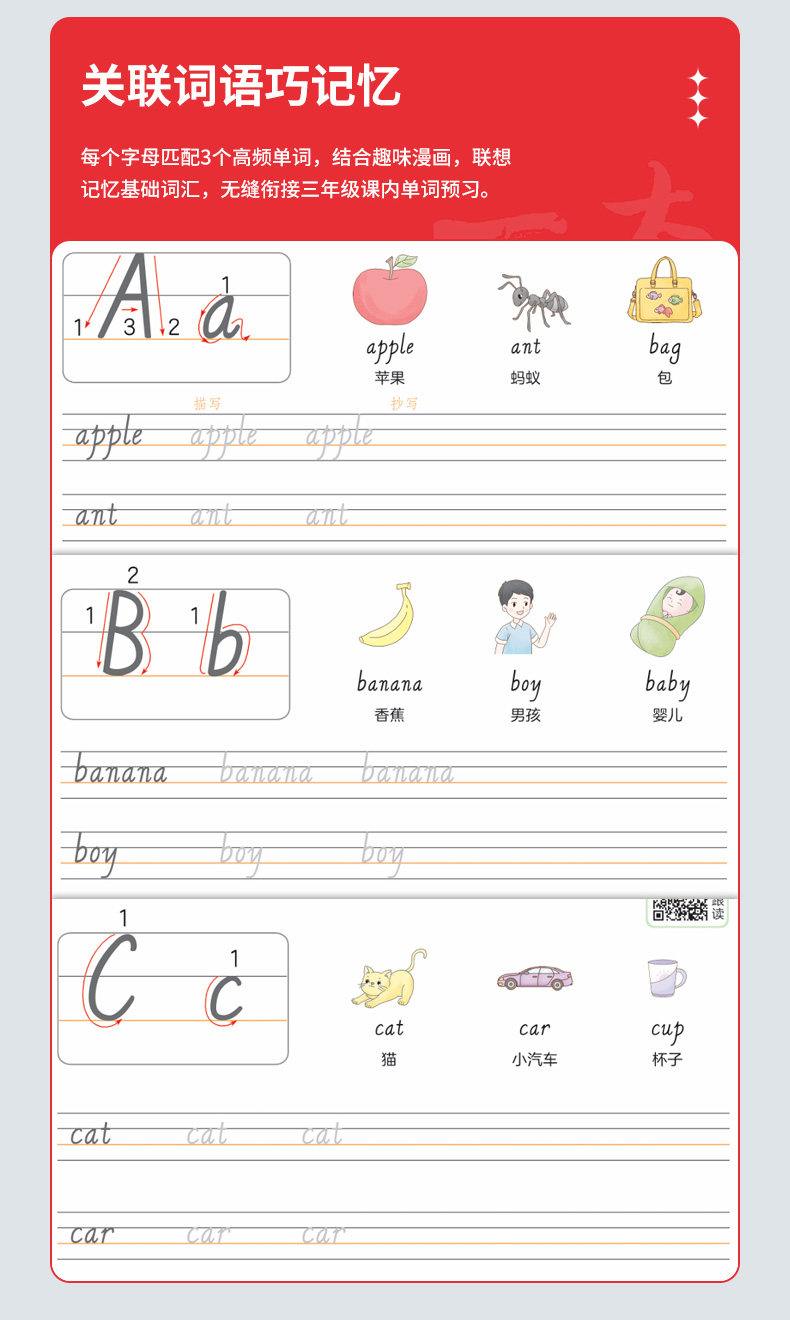 26春开学 英语练字帖 小学生 必备词汇 字母练字 视频讲解