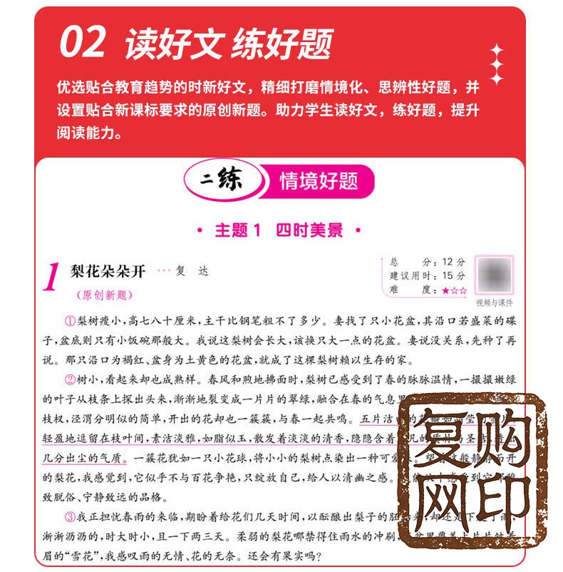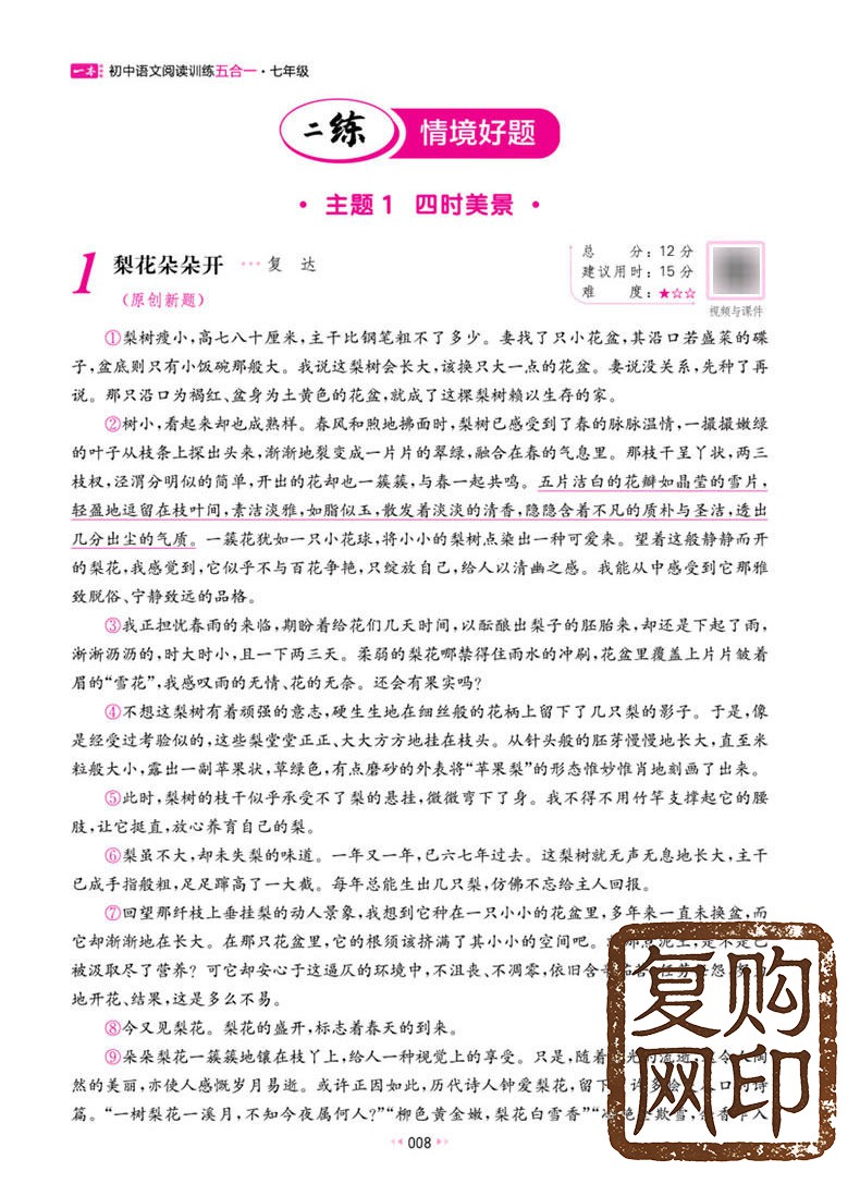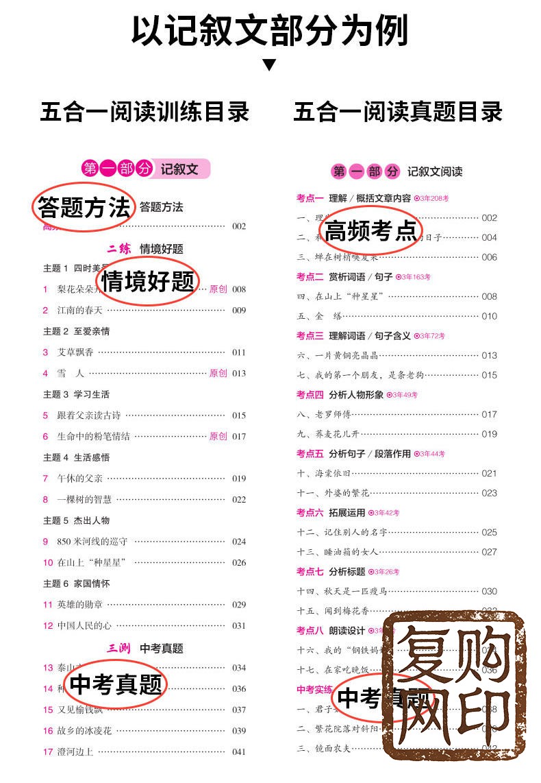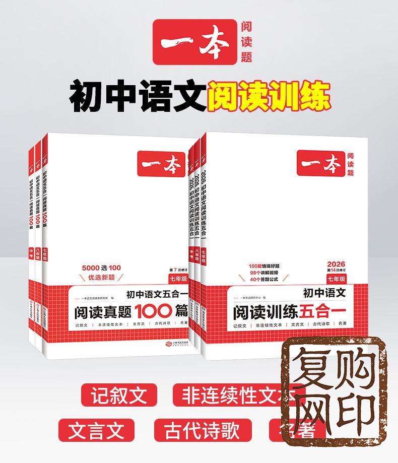 一本阅读理解 初中语文 阅读训练 五合一 真题100篇 中考专项训练
