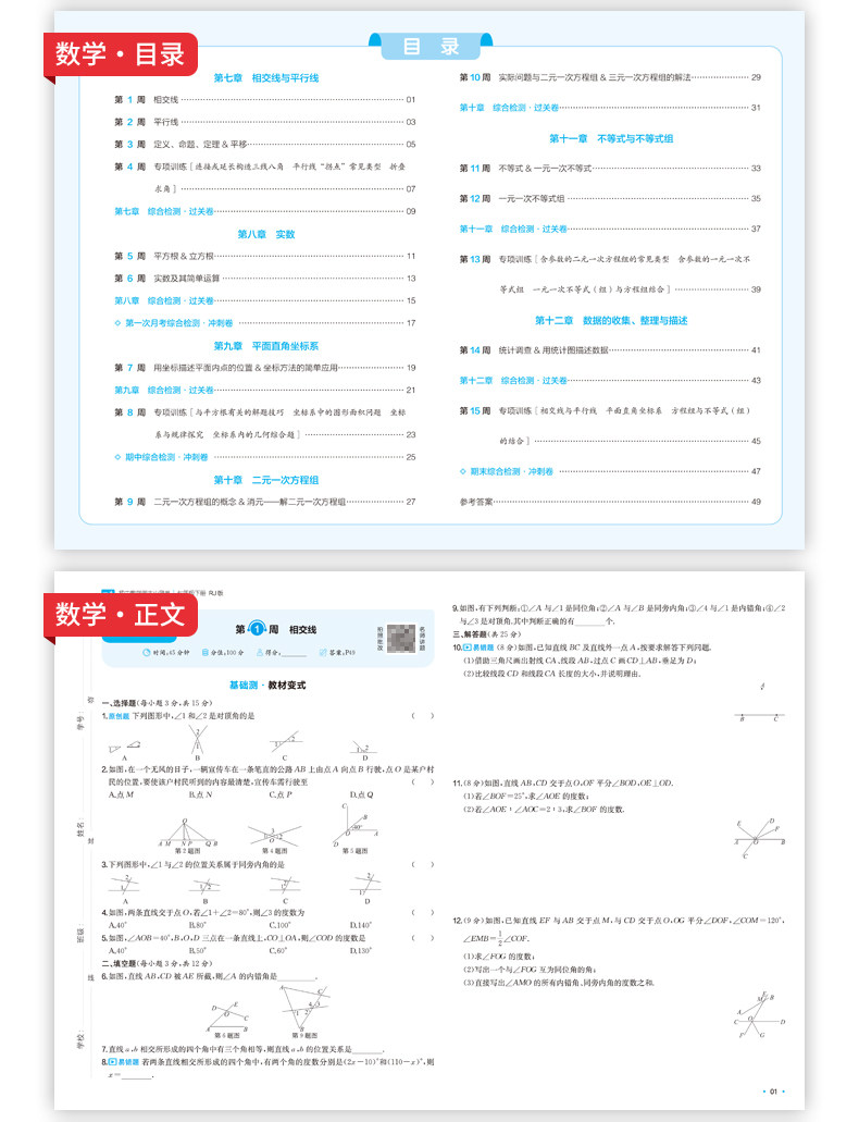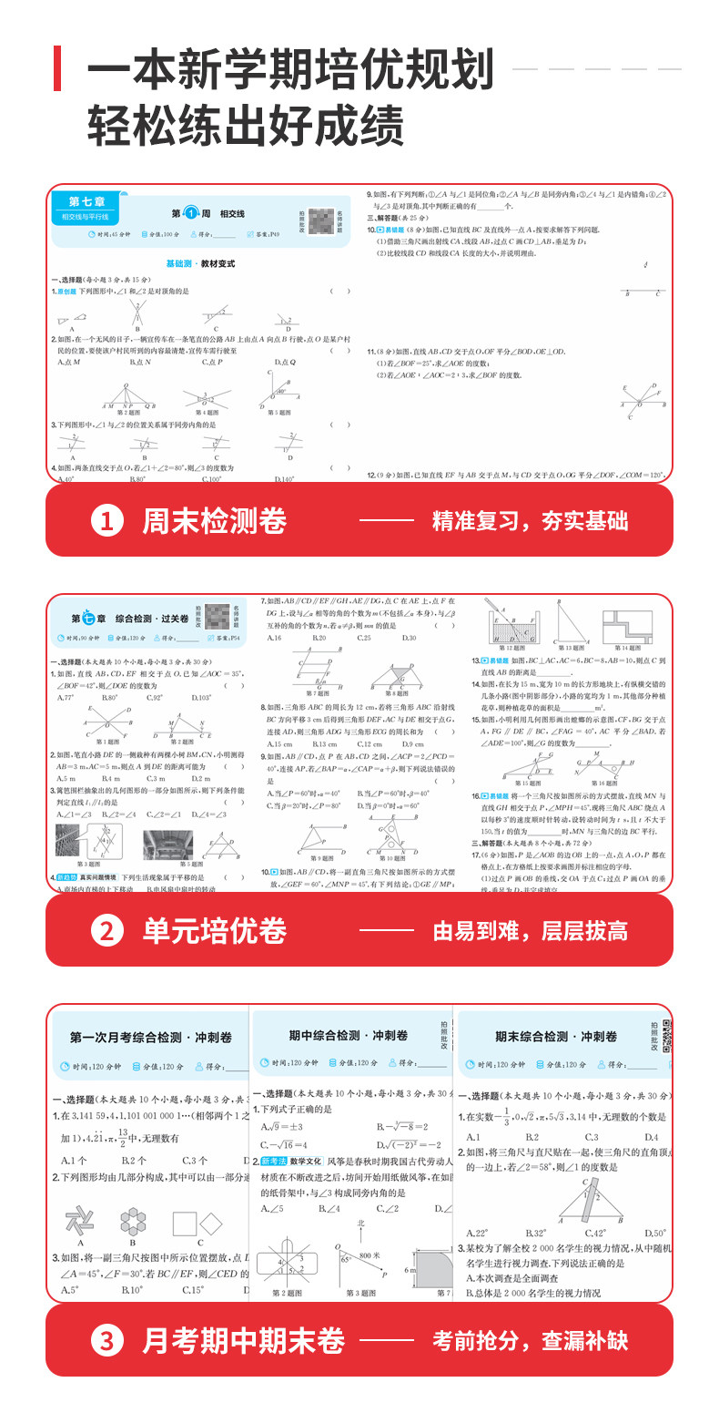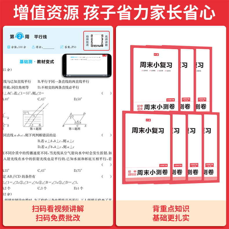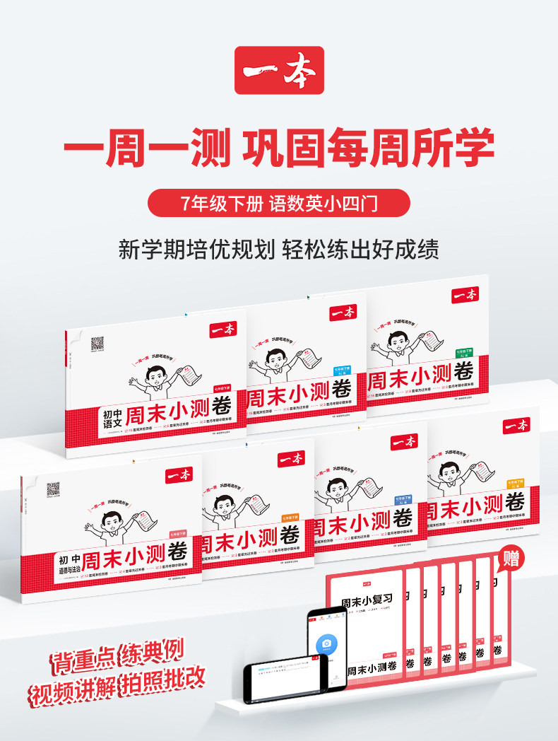 一本周末小测卷、七年级下册、官方旗舰店、同步测试卷、语文数学英语、课后作业