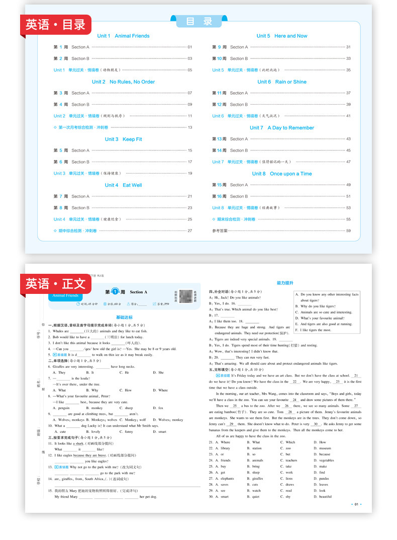 一本周末小测卷七年级下册一本官方旗舰店正品同步测试卷语文数学英语人教北师外研苏科课后作业单元检测练习期中期末考试卷教辅书