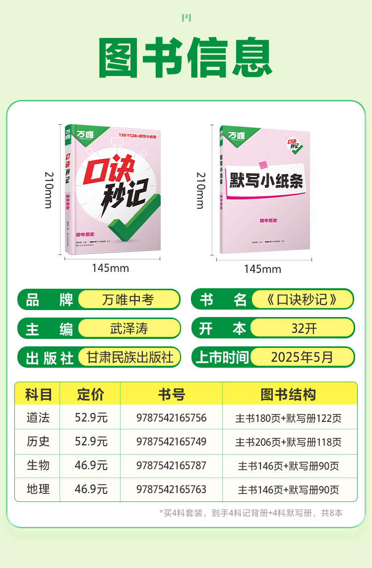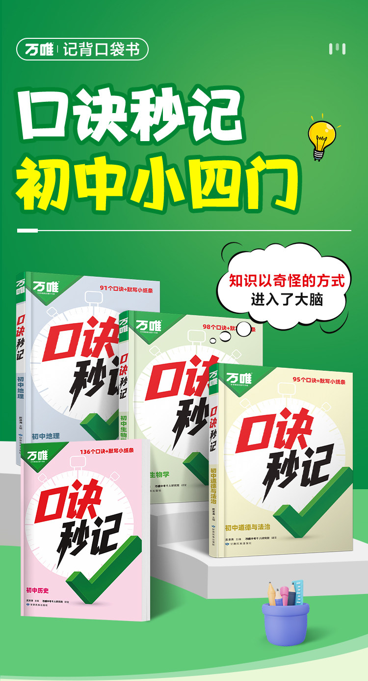 2026万唯中考、口诀秒记、小四门、必背知识点、考点学霸速记、口袋书