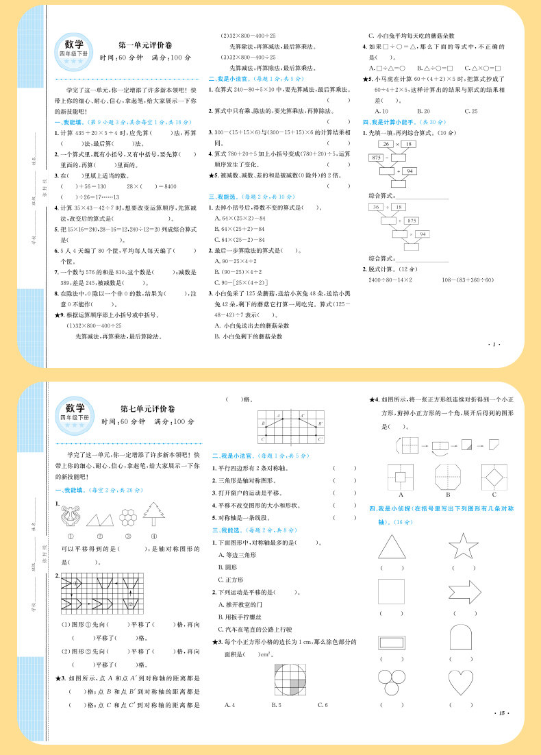 名校名卷核心素养达标卷语数英单元同步提优大考卷期中期末活页卷起跑线小学计算天天应用练数学思维训练人教版同步字帖精学活用