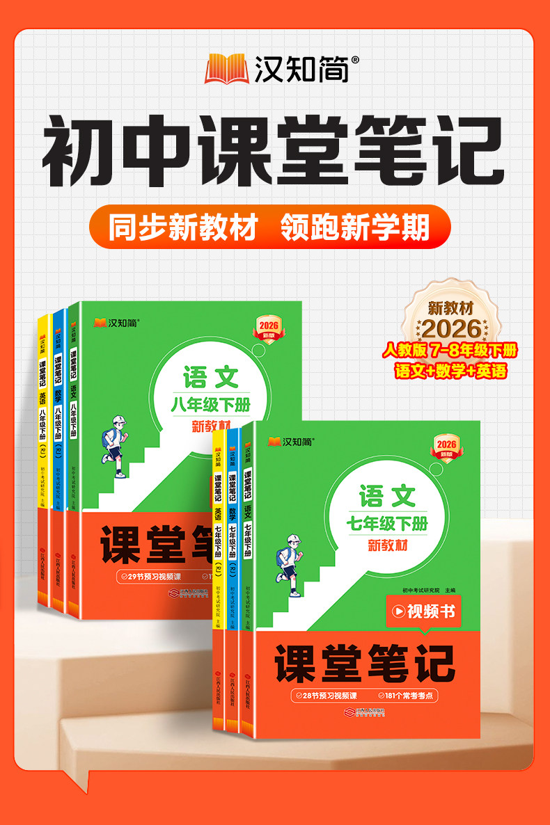 2026春、汉知简、初中课堂笔记、语文数学英语、人教版、全套教材