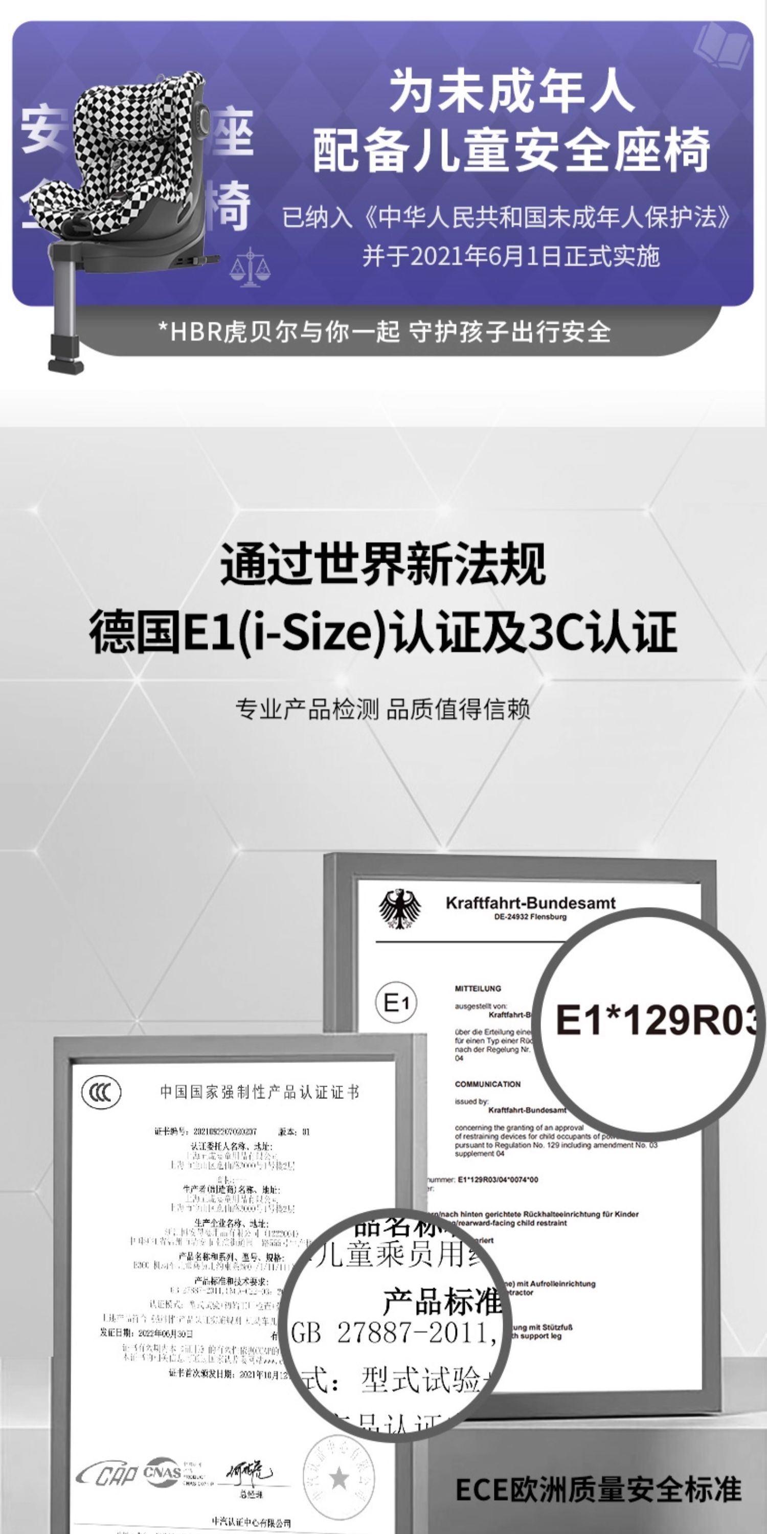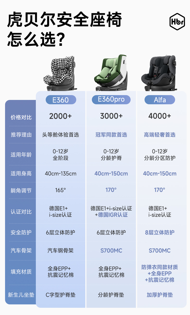 HBR虎贝尔、E360儿童安全座椅、婴儿宝宝、车载、智能通风、0到12岁、德国认证