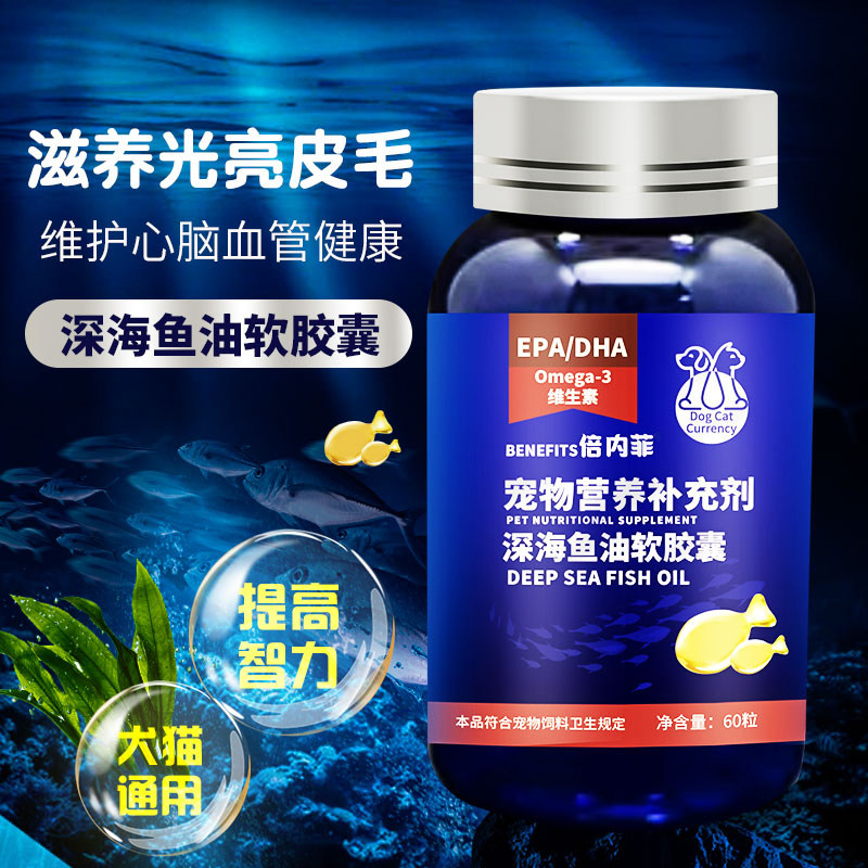 倍内菲宠物深海鱼油软胶囊狗狗猫咪美毛护肤爆毛亮毛犬猫通用