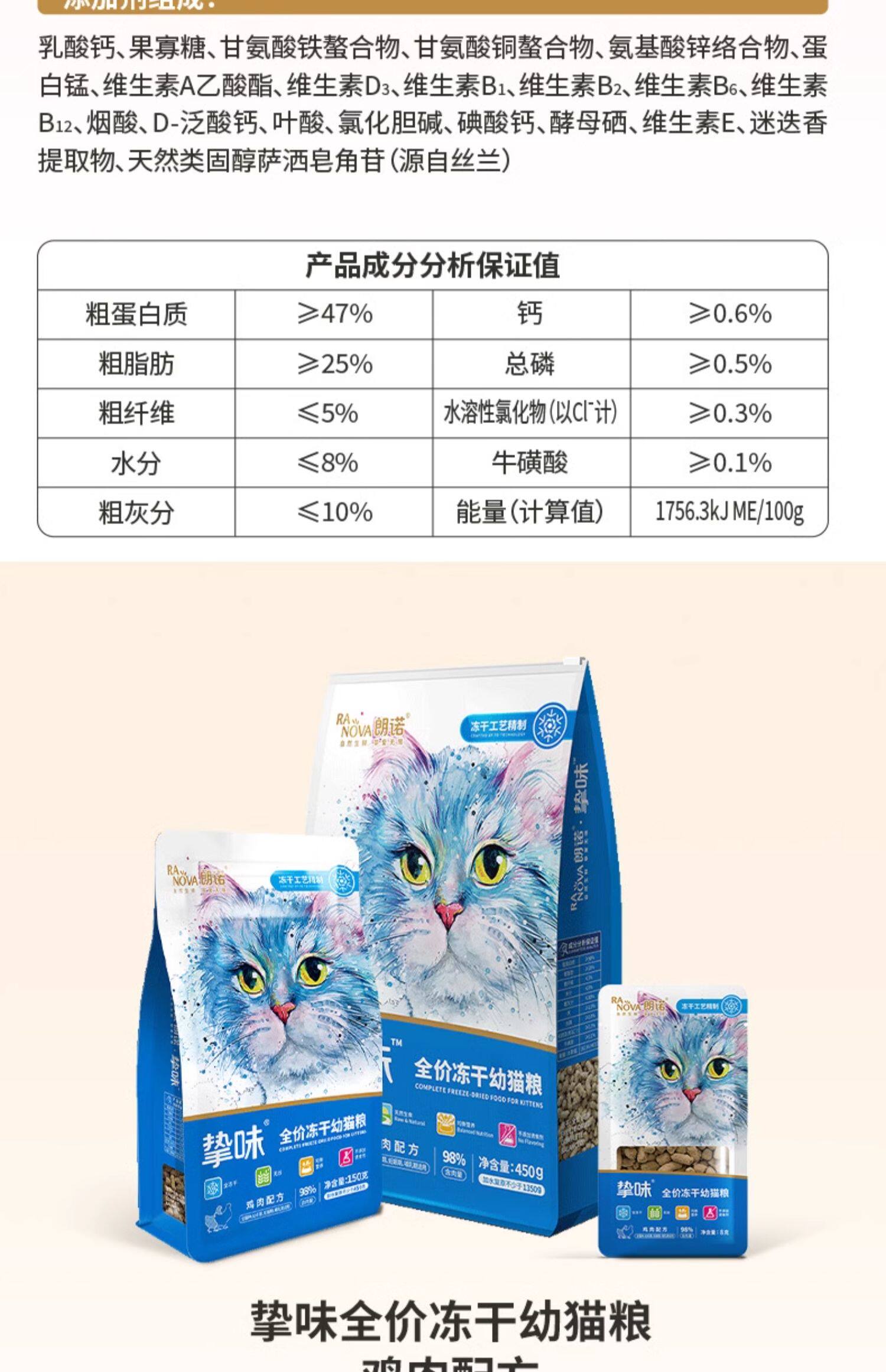 朗诺全价主食冻干猫粮生骨肉猫主粮鸡肉三文鱼兔肉鹌鹑450g