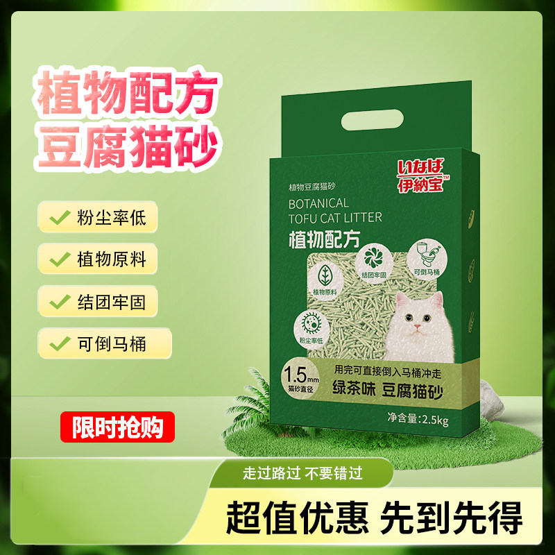 伊纳宝宠物猫用猫砂除臭原味绿茶5斤