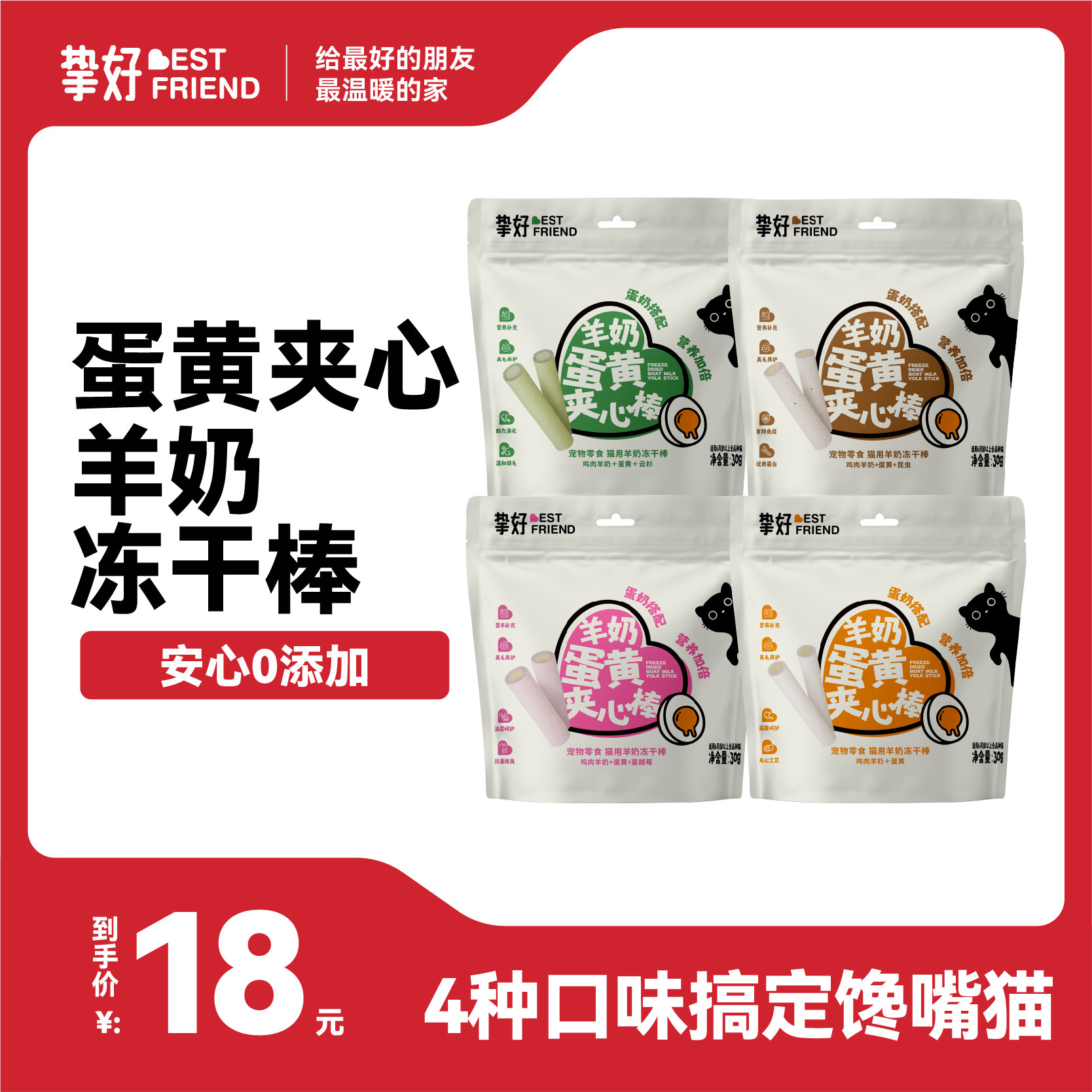 挚好 猫咪羊奶 冻干棒 补充营养 幼猫草棒 零食 磨牙 洁齿 鸡肉奶酪棒