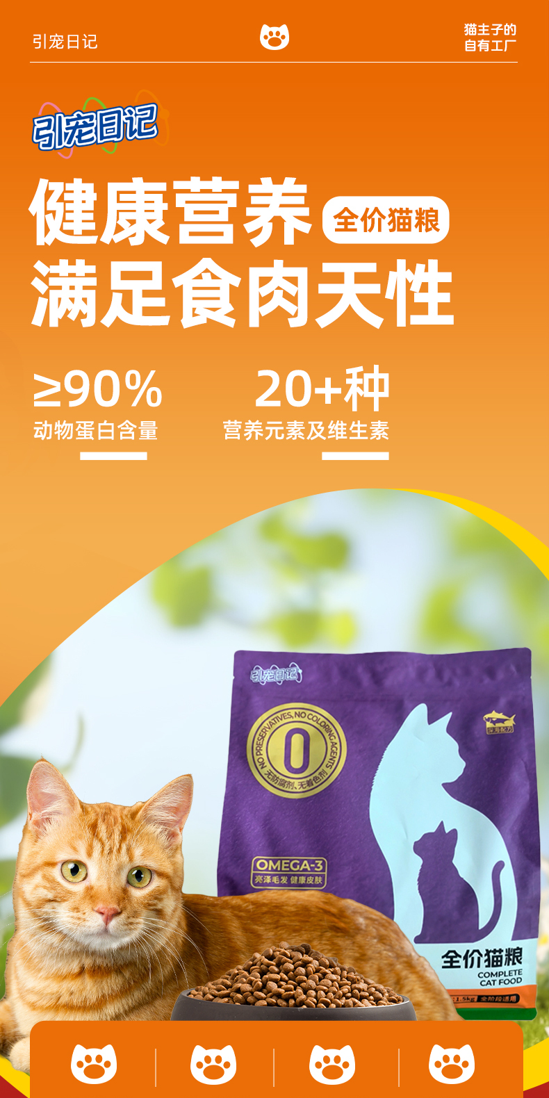 引宠日记、全价猫粮、通用猫粮、幼猫成猫、营养猫粮、鸡肉三文鱼配方