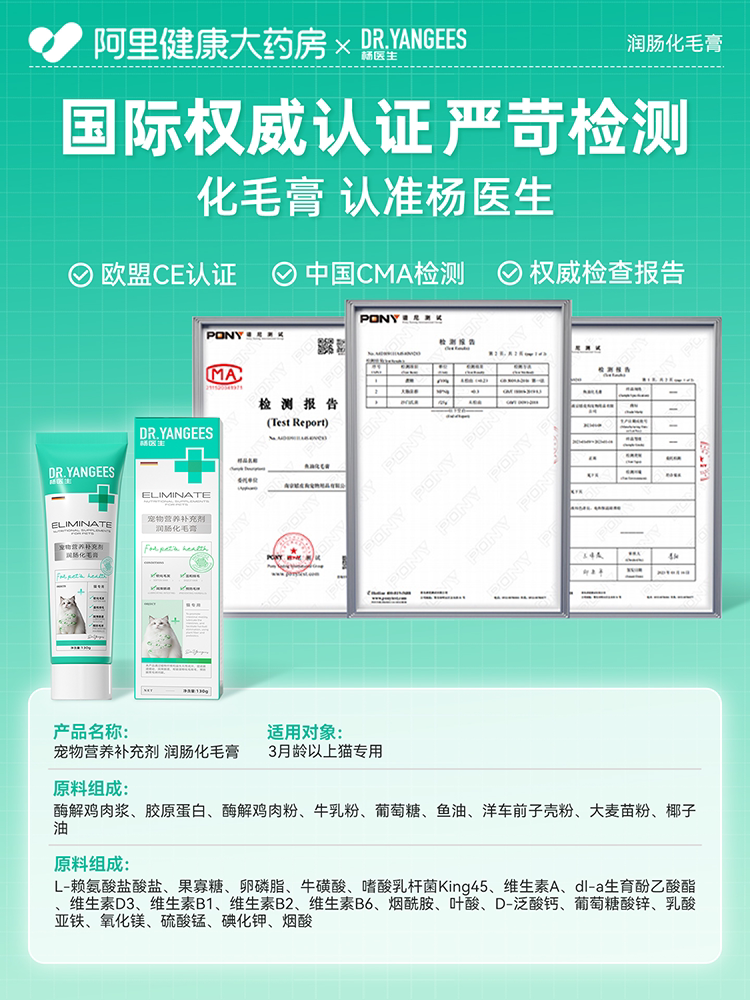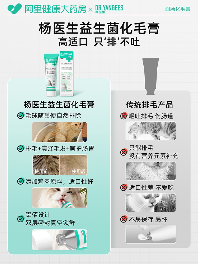 杨医生、化毛膏、猫咪专用、化毛球片、猫草片、宠物营养膏
