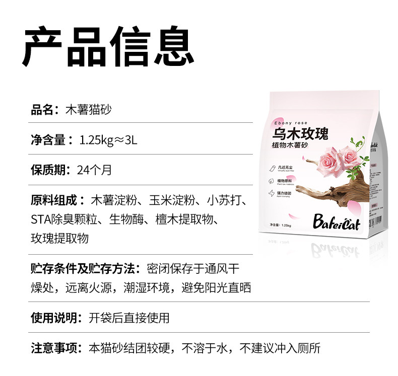 芭菲猫、木薯豆腐猫砂、1.25kg、除臭、幼猫专用、防臭吸水