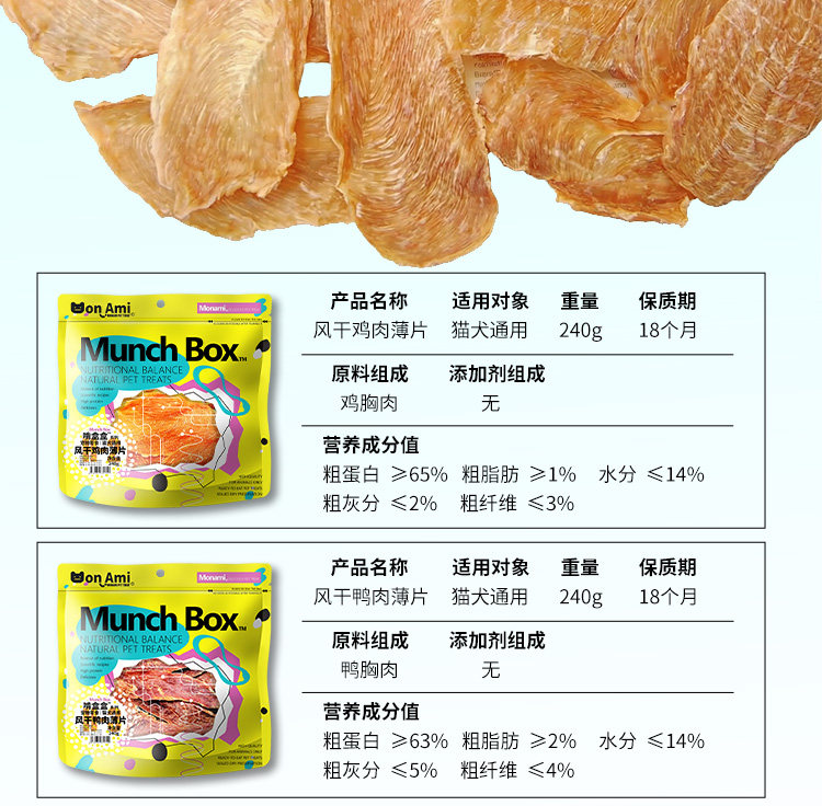 啃盒盒、猫咪、风干鸡肉鸭肉干、宠物零食、低敏、风干工艺