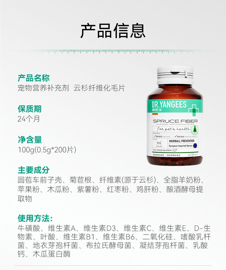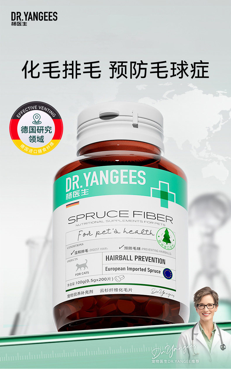 杨医生、云杉化毛片、猫草化毛球片、猫咪专用、小猫、温和排毛