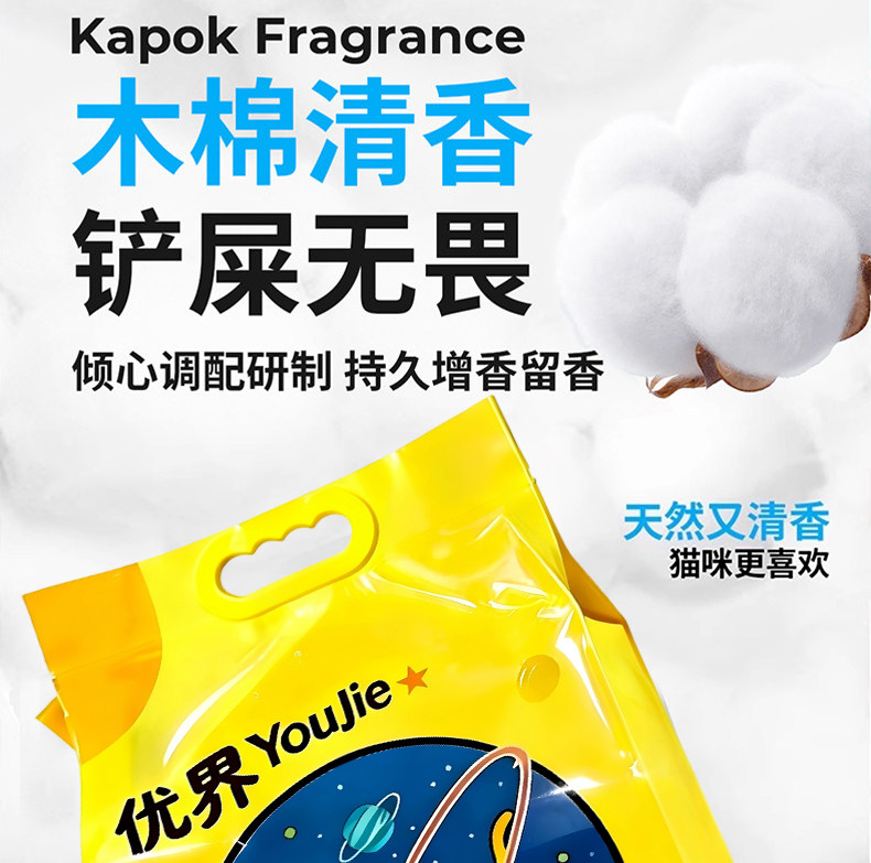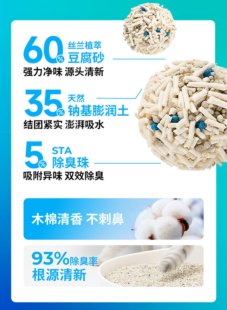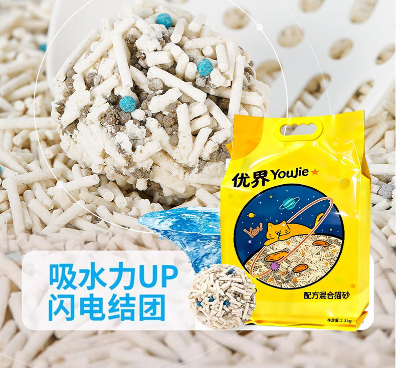 优界混合猫砂、除臭、几近无尘、豆腐砂、膨润土猫砂、植物结团、吸臭去味