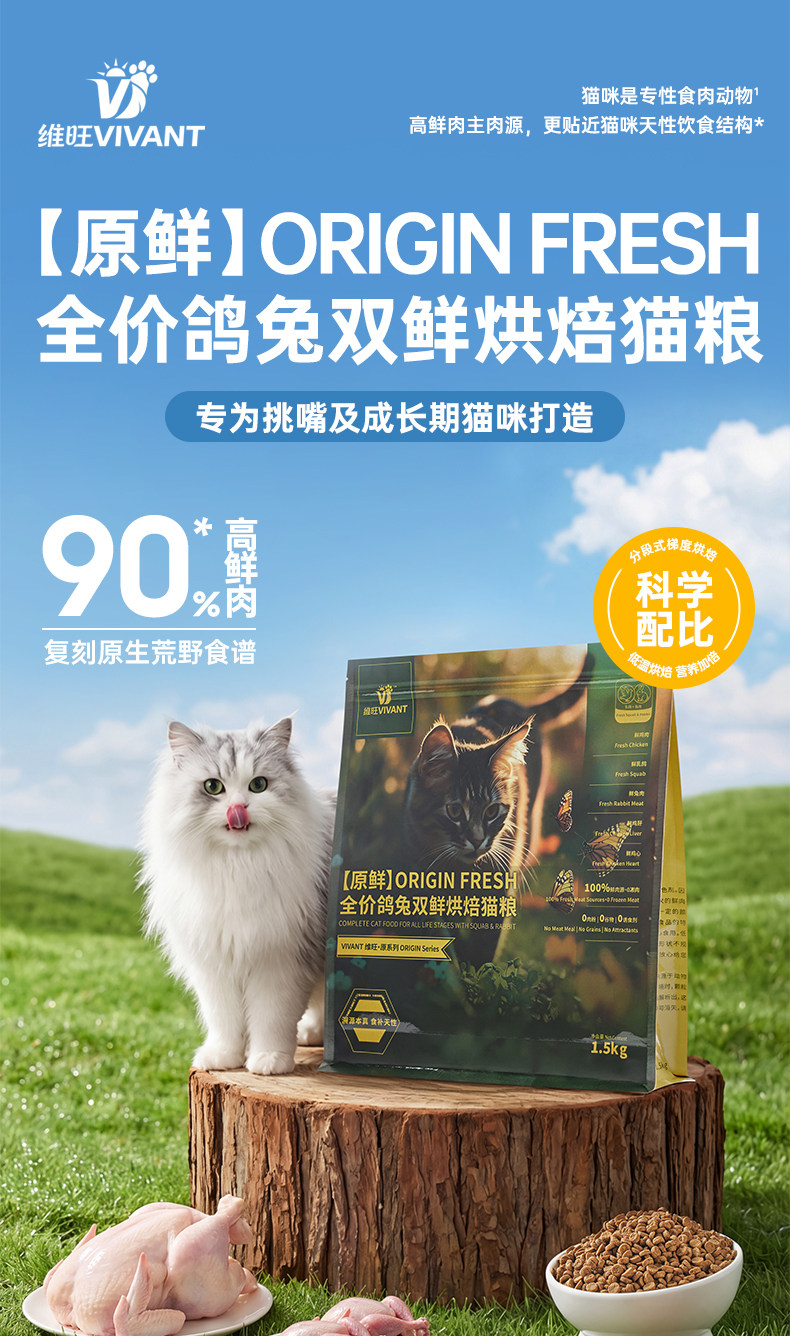 维旺鸽兔双鲜 低温烘焙猫粮 无谷纯鲜肉 成幼猫 长肉主粮 鲜肉粮