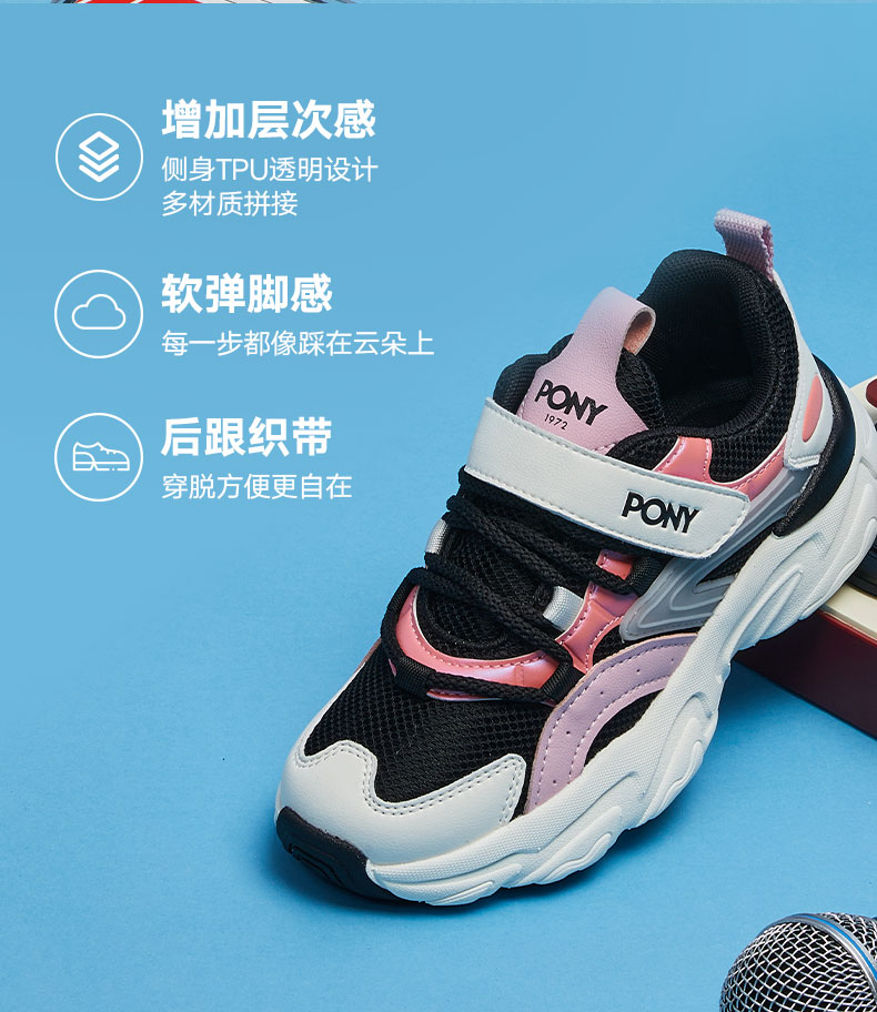 pony童鞋儿童跑步鞋男童女童运动鞋网面透气宝宝鞋时尚百搭学生鞋