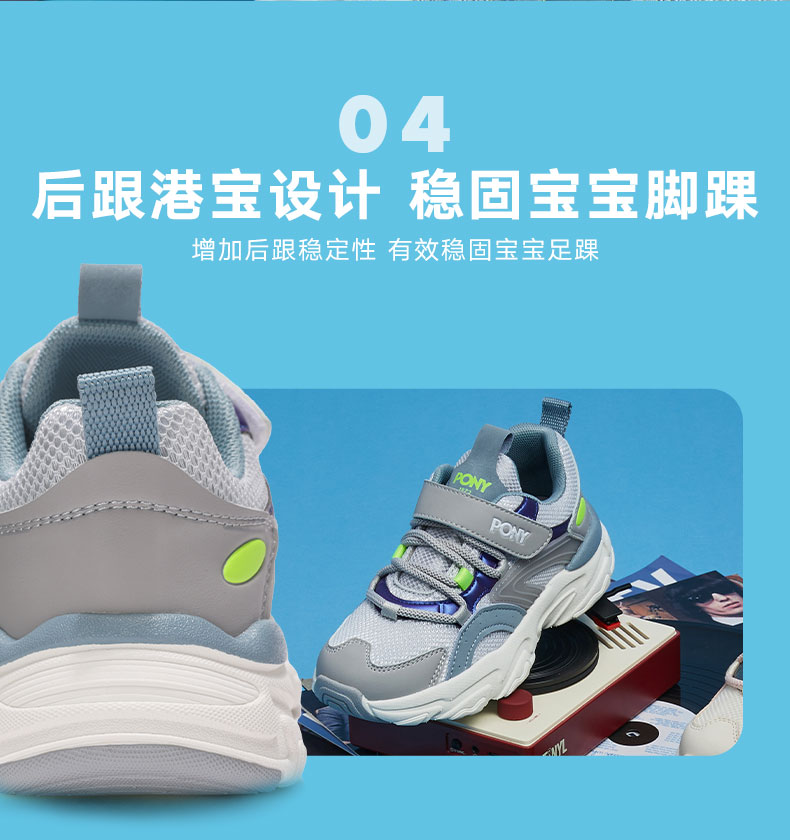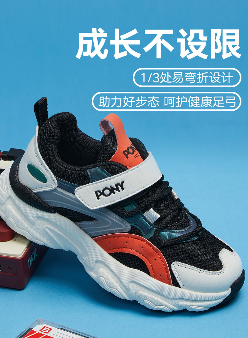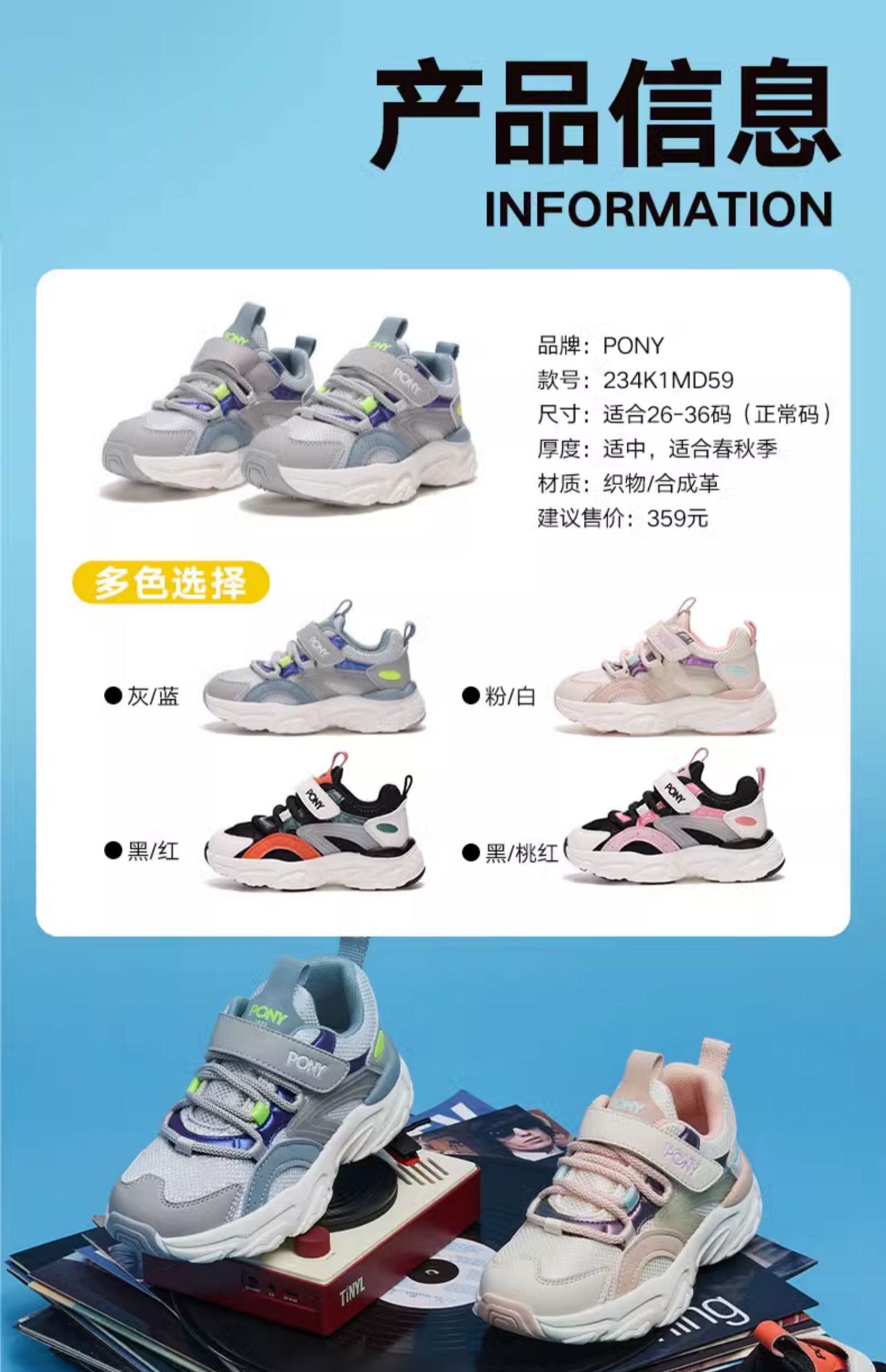 pony童鞋、儿童跑步鞋、男童女童、运动鞋、网面透气、宝宝鞋、时尚百搭、学生鞋