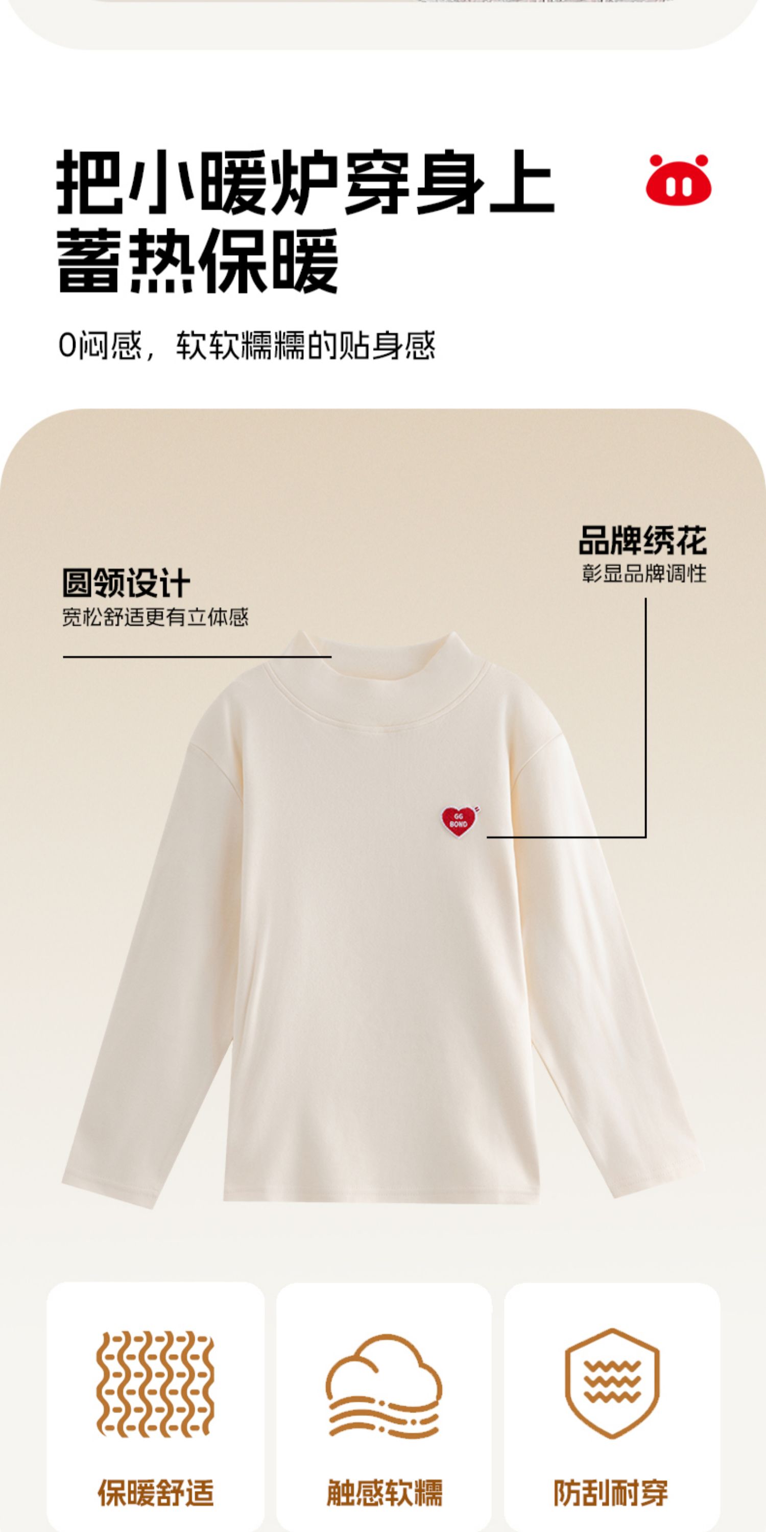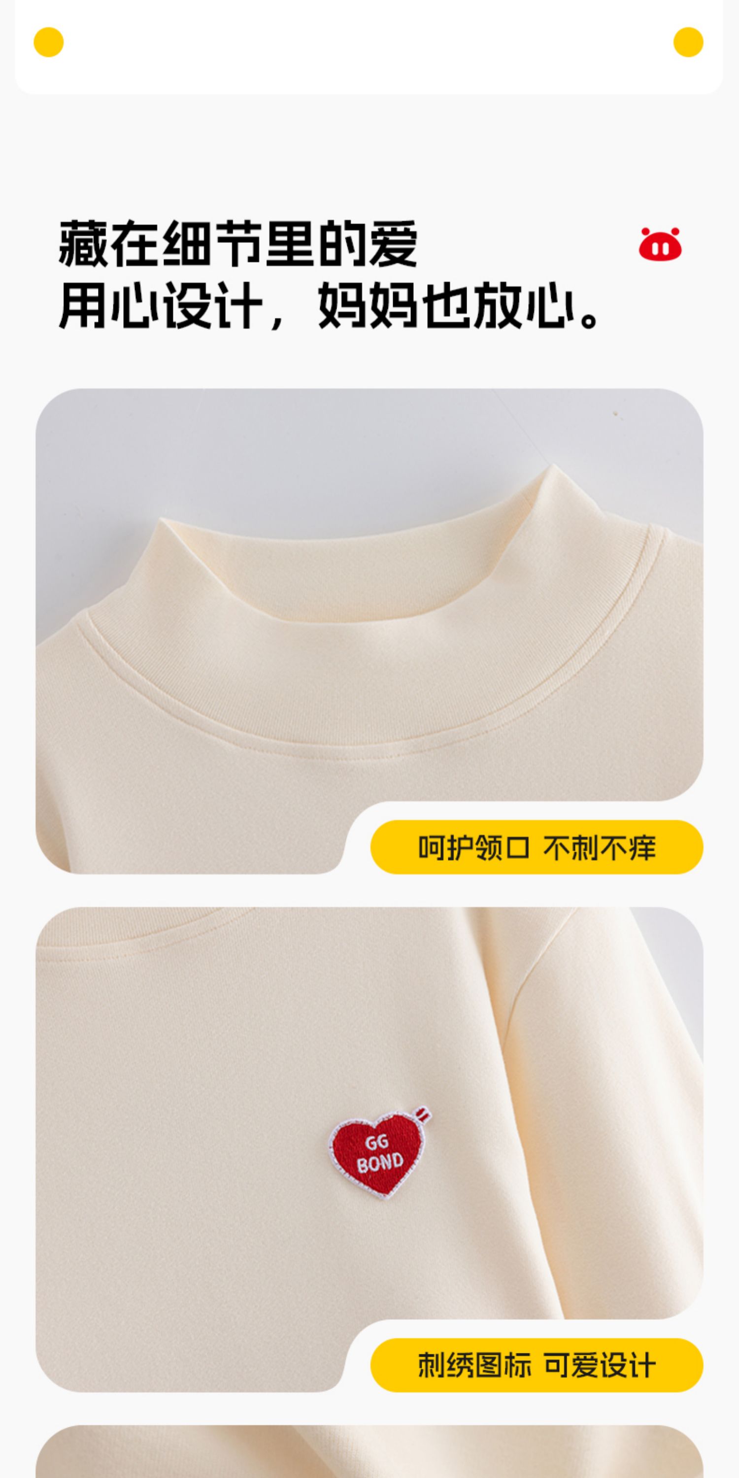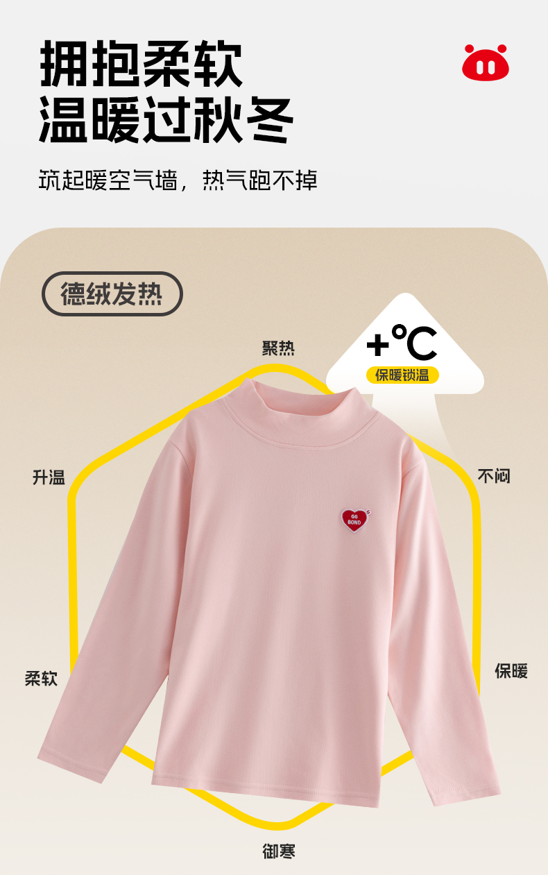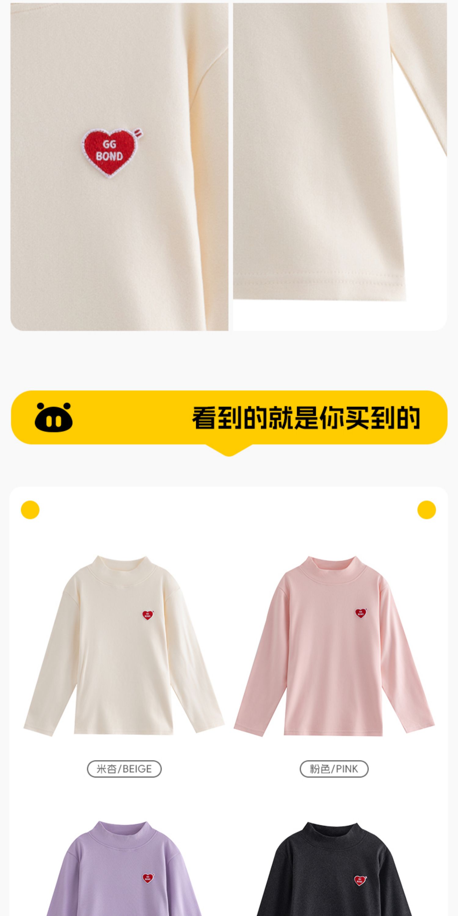 GGBOND、猪猪侠、德绒打底衫、秋冬季新款、儿童秋衣、保暖内搭、爱心长袖上衣
