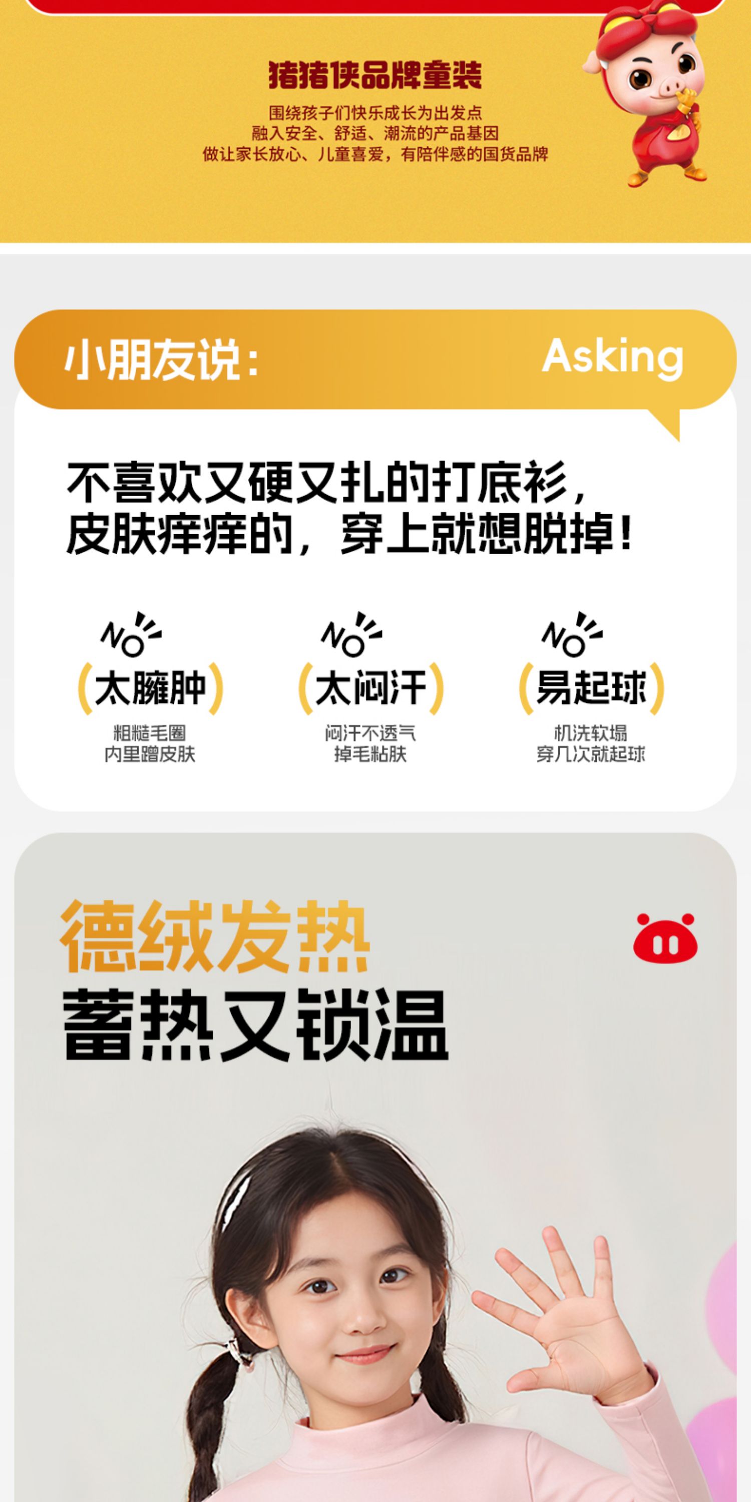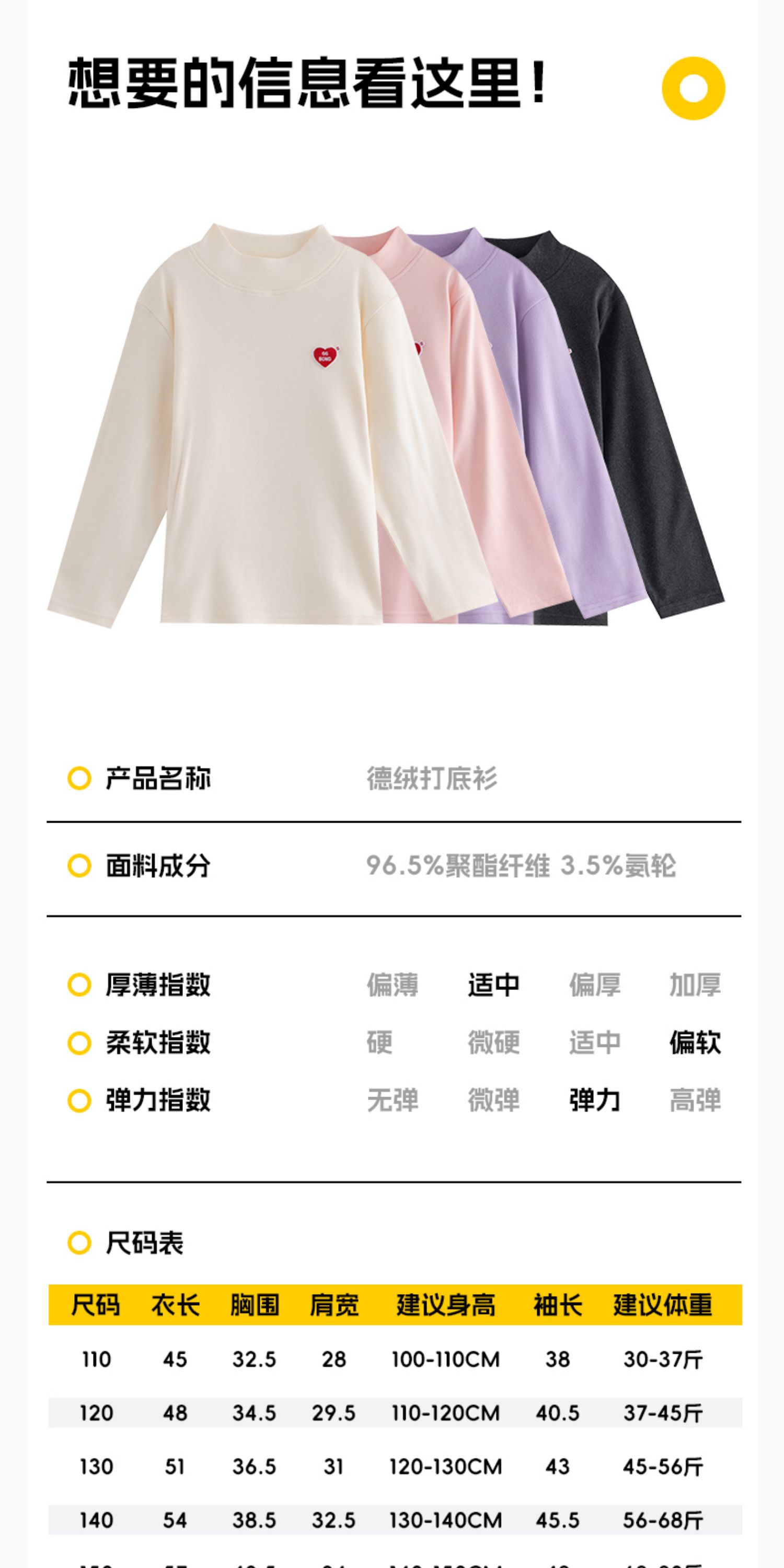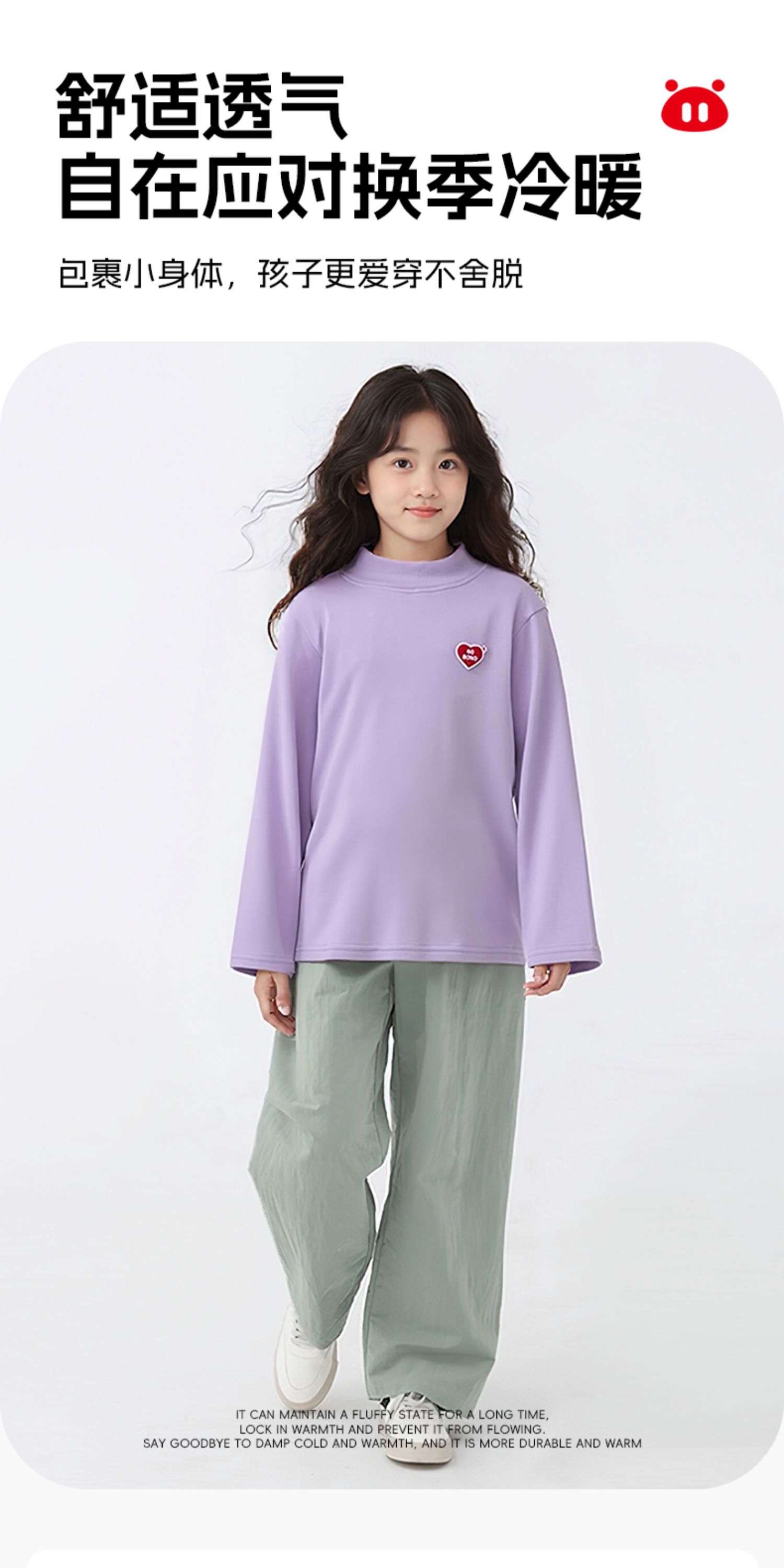 GGBOND、猪猪侠、德绒打底衫、秋冬季新款、儿童秋衣、保暖内搭、爱心长袖上衣