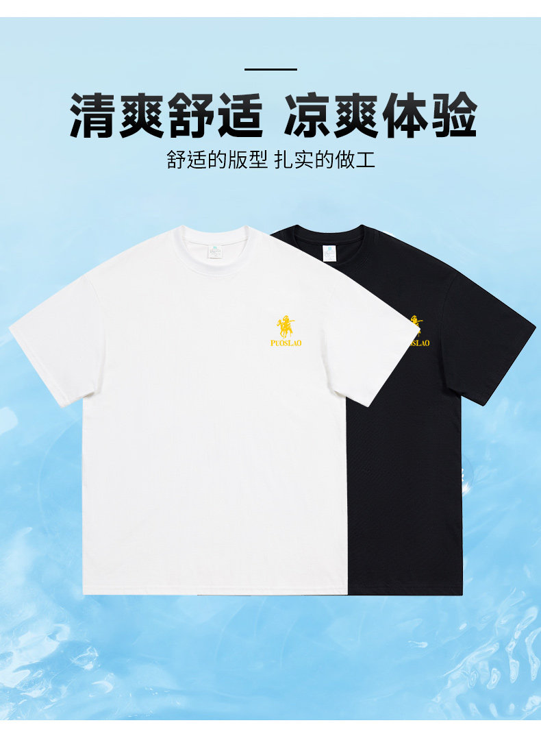 PUOSLAO夏季薄款纯棉印花短袖T恤中青年男女同款透气白T宽松款