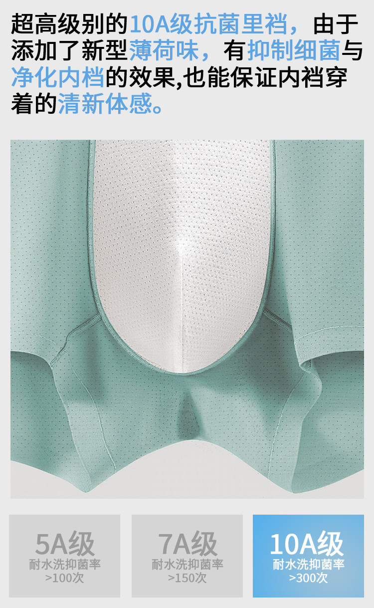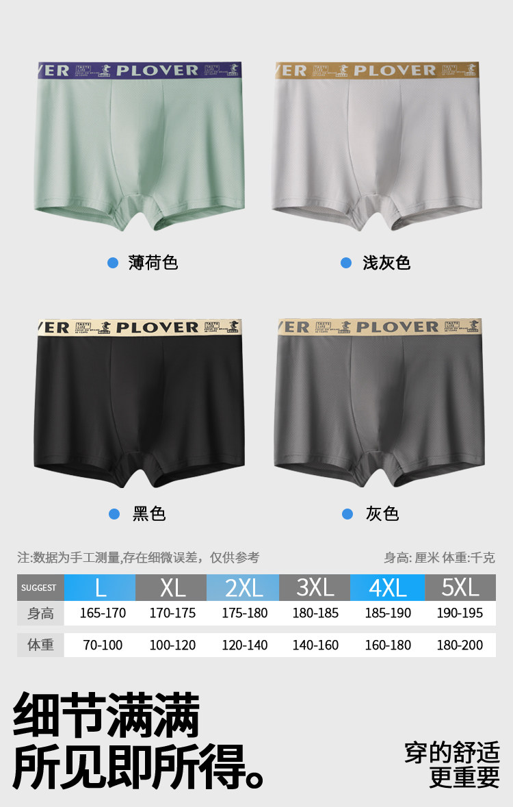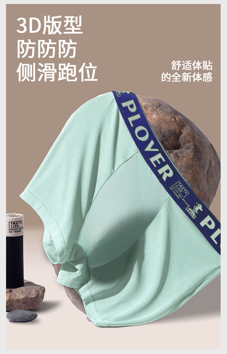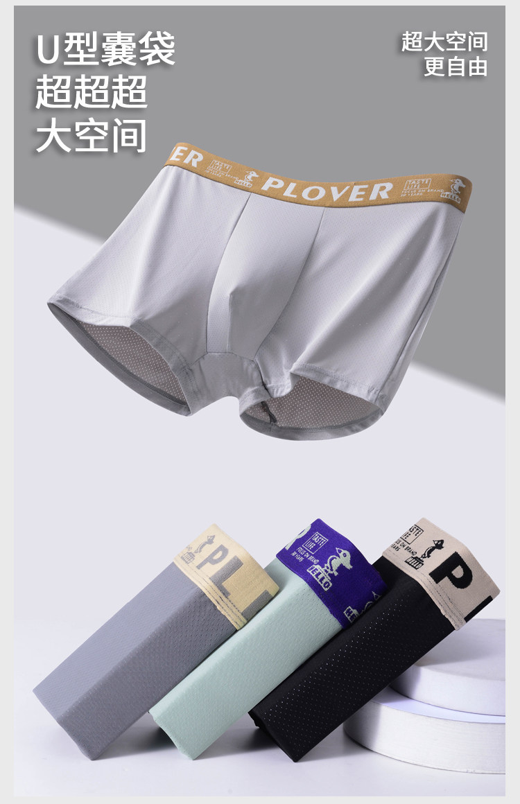 Plover、薄荷冰丝、抗菌、男士内裤、夏季薄款、满天星小网眼