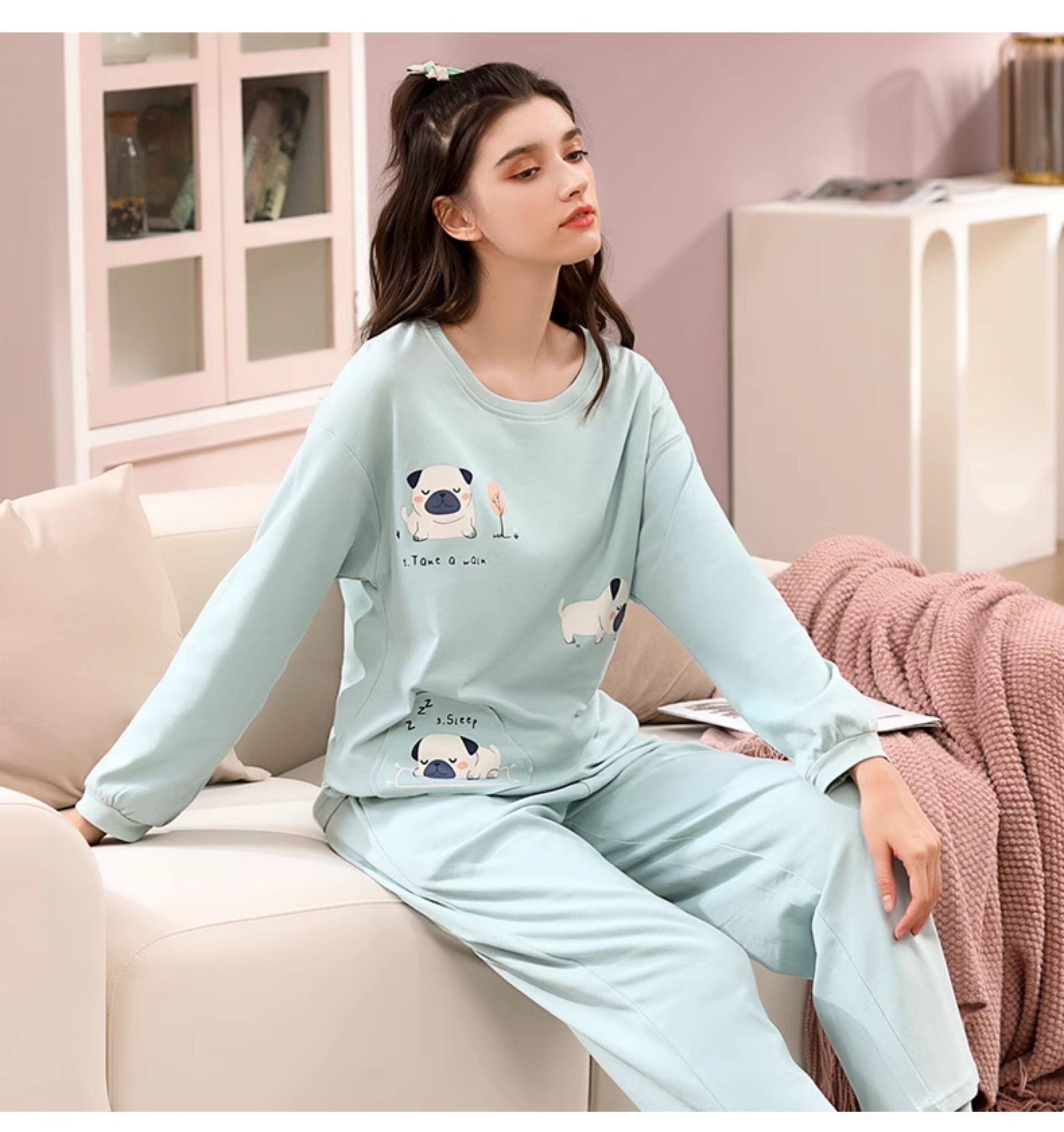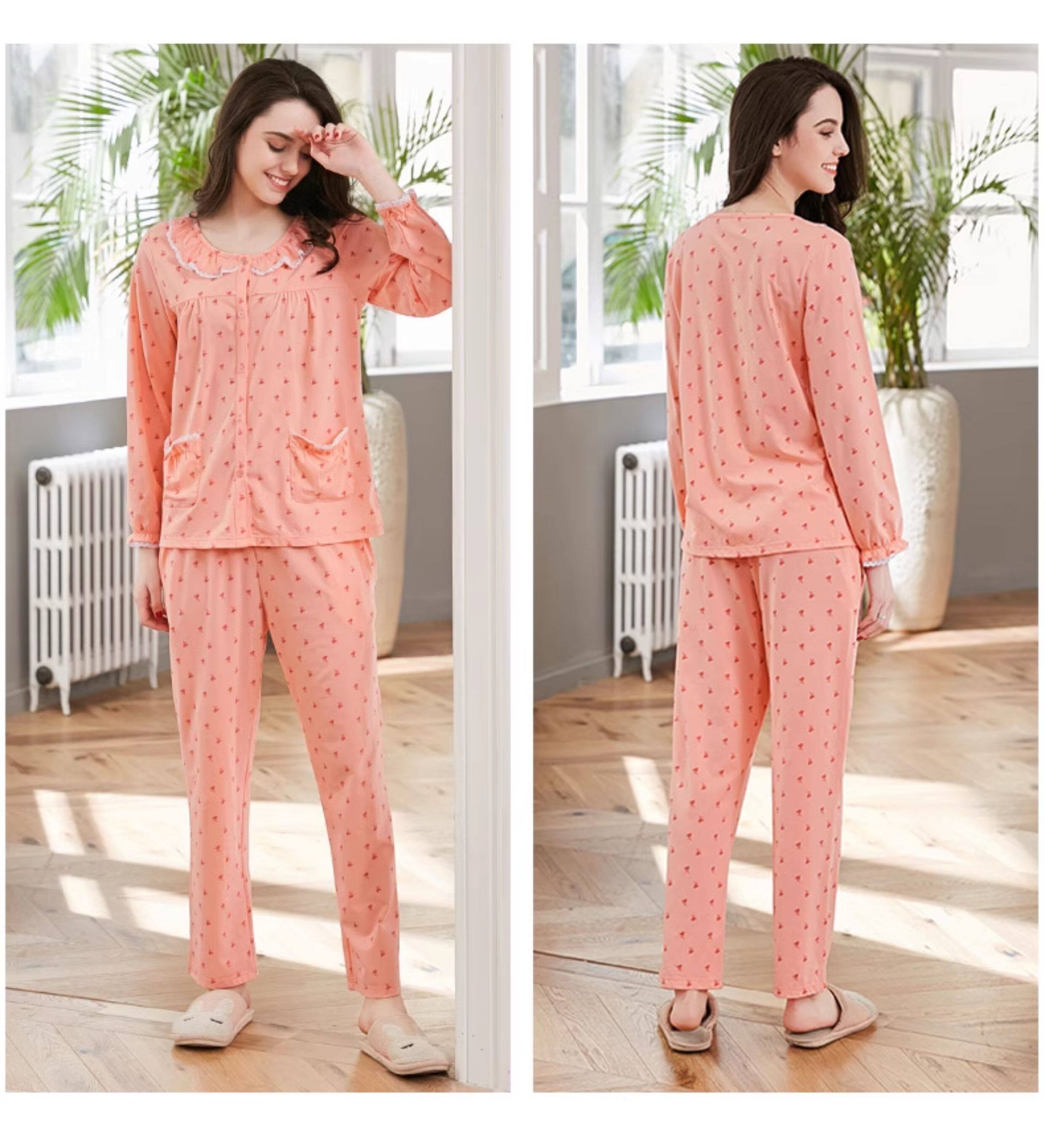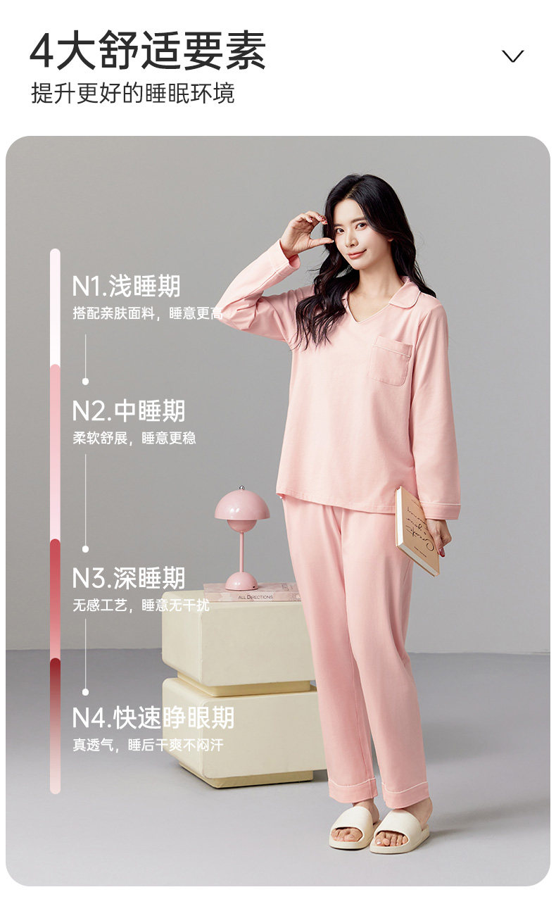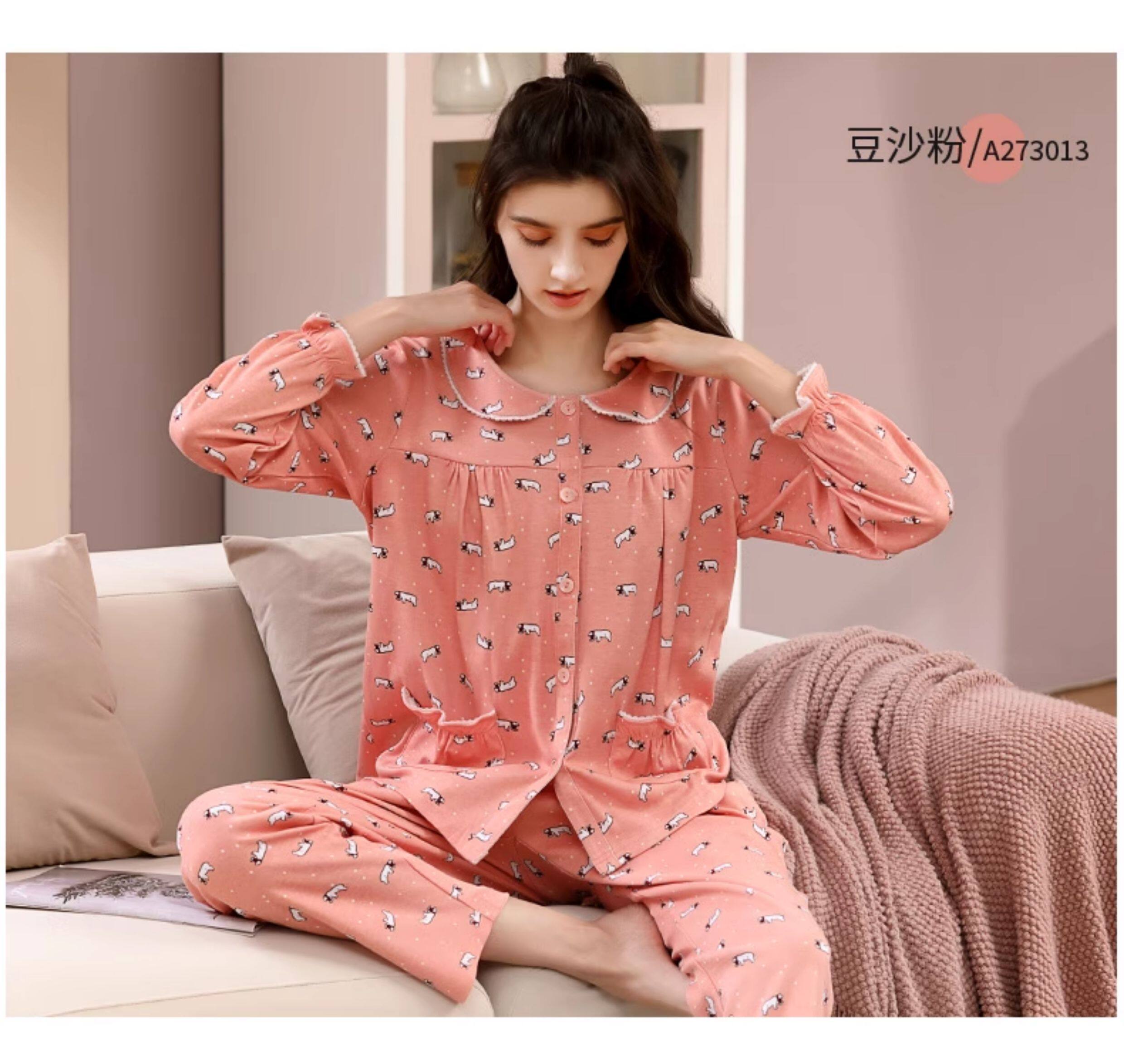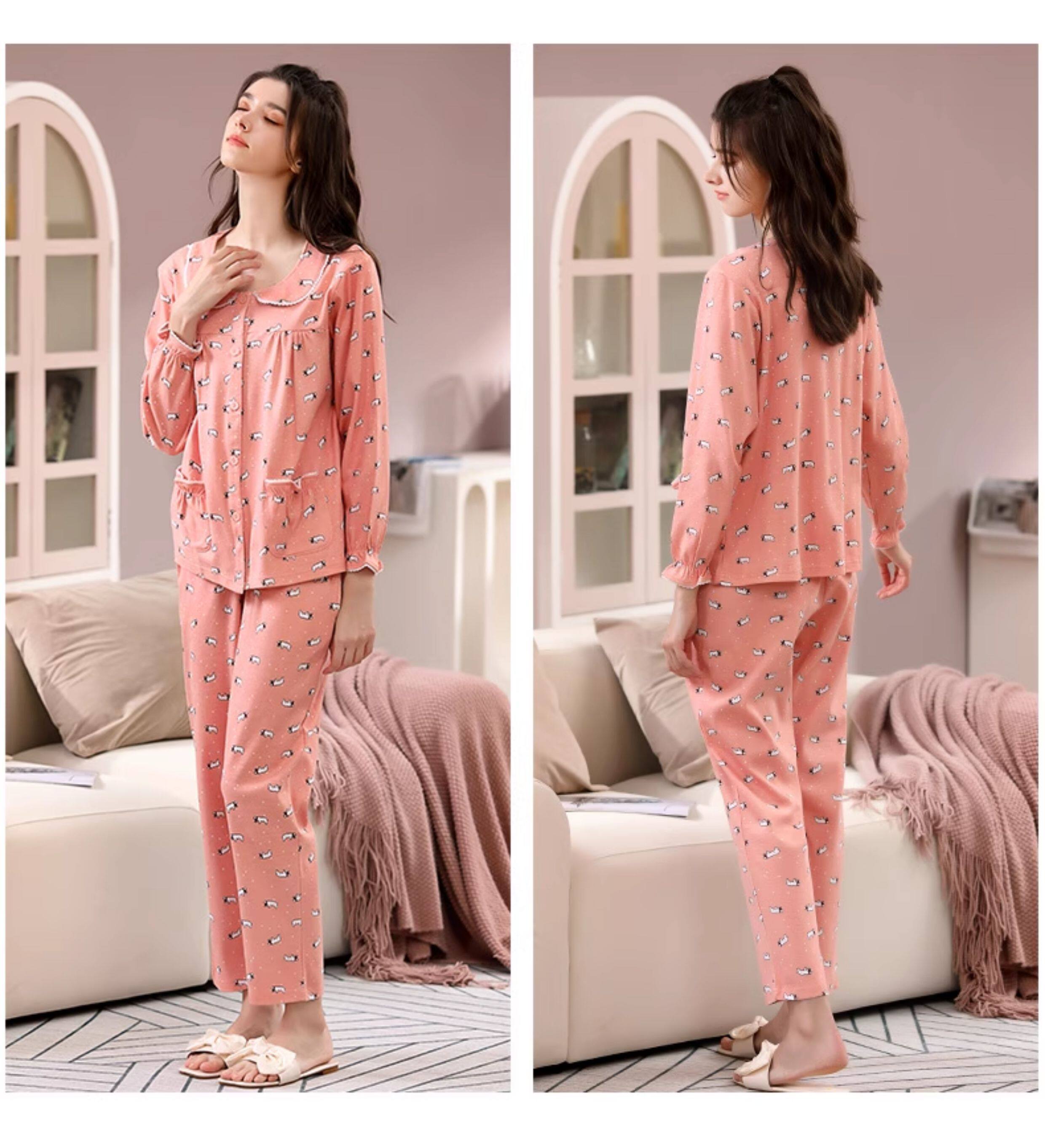 韩彩睡衣、春季女款、2025新款、纯棉、长袖、可外穿