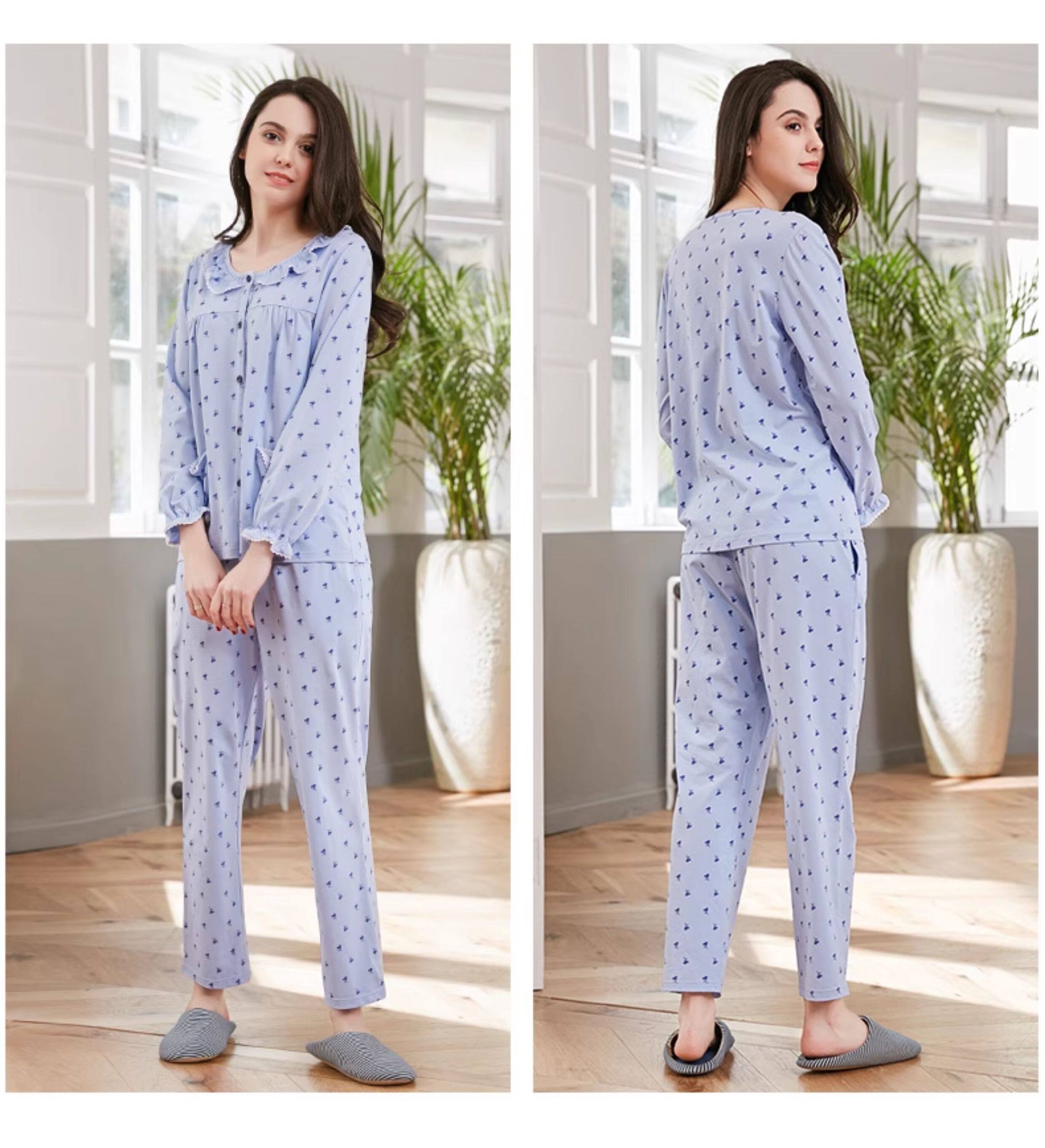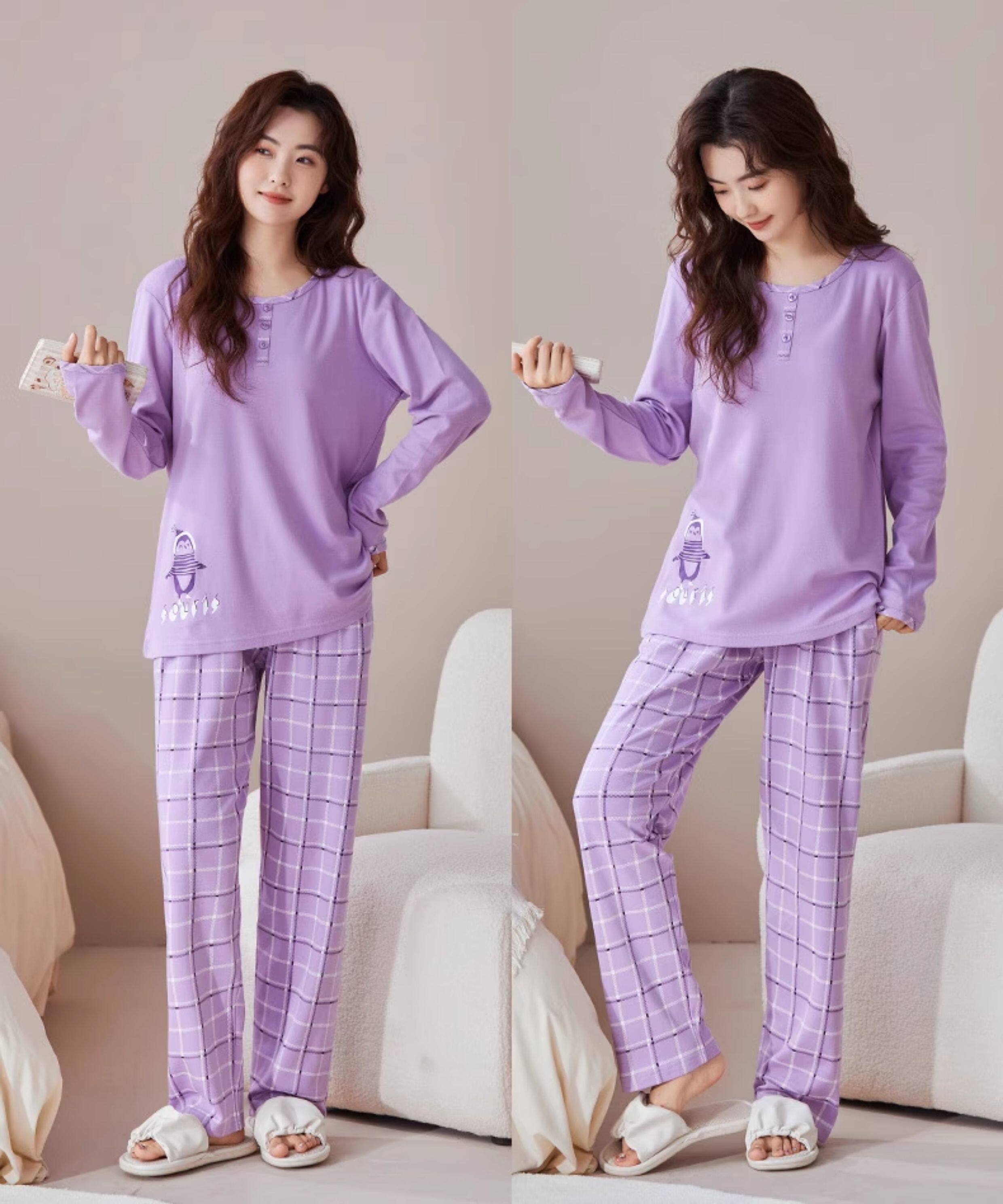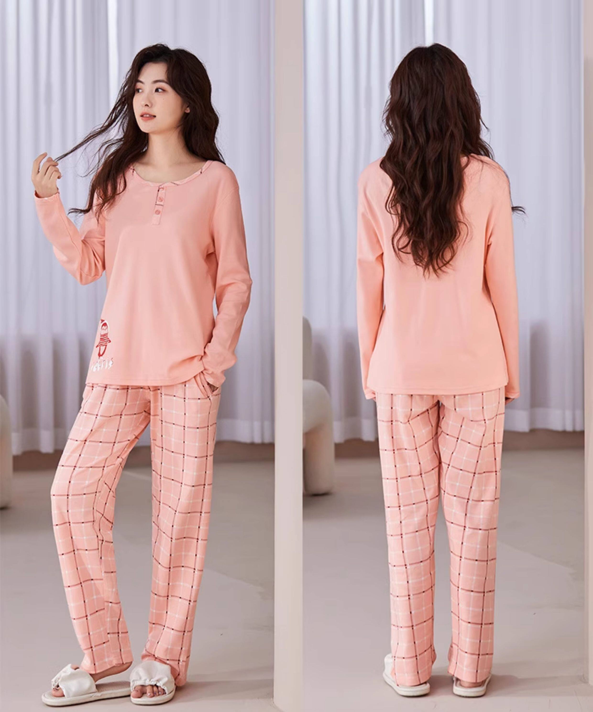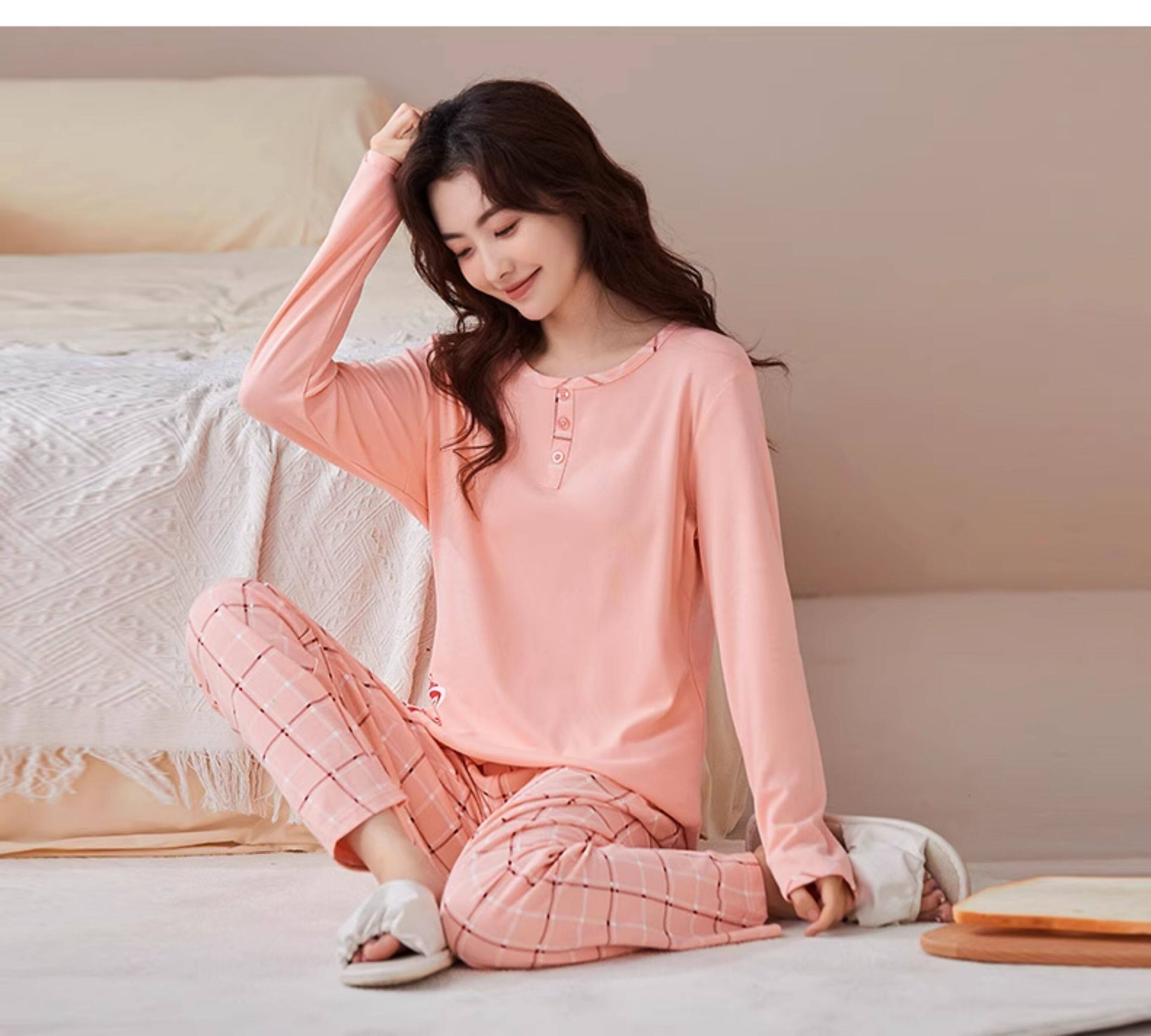 韩彩睡衣、春季女款、2025新款、纯棉、长袖、可外穿