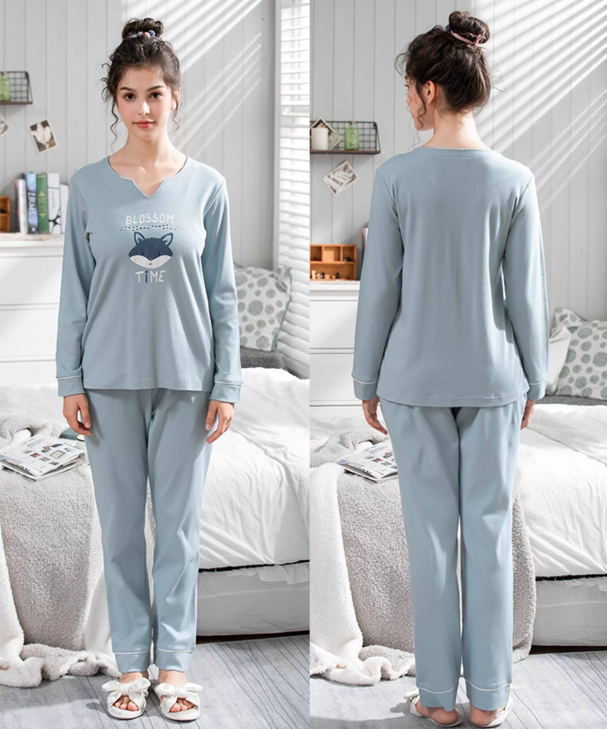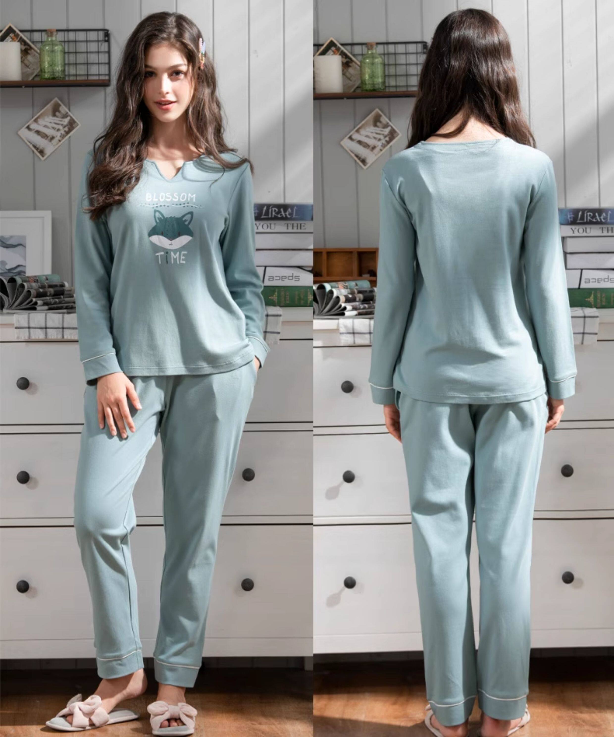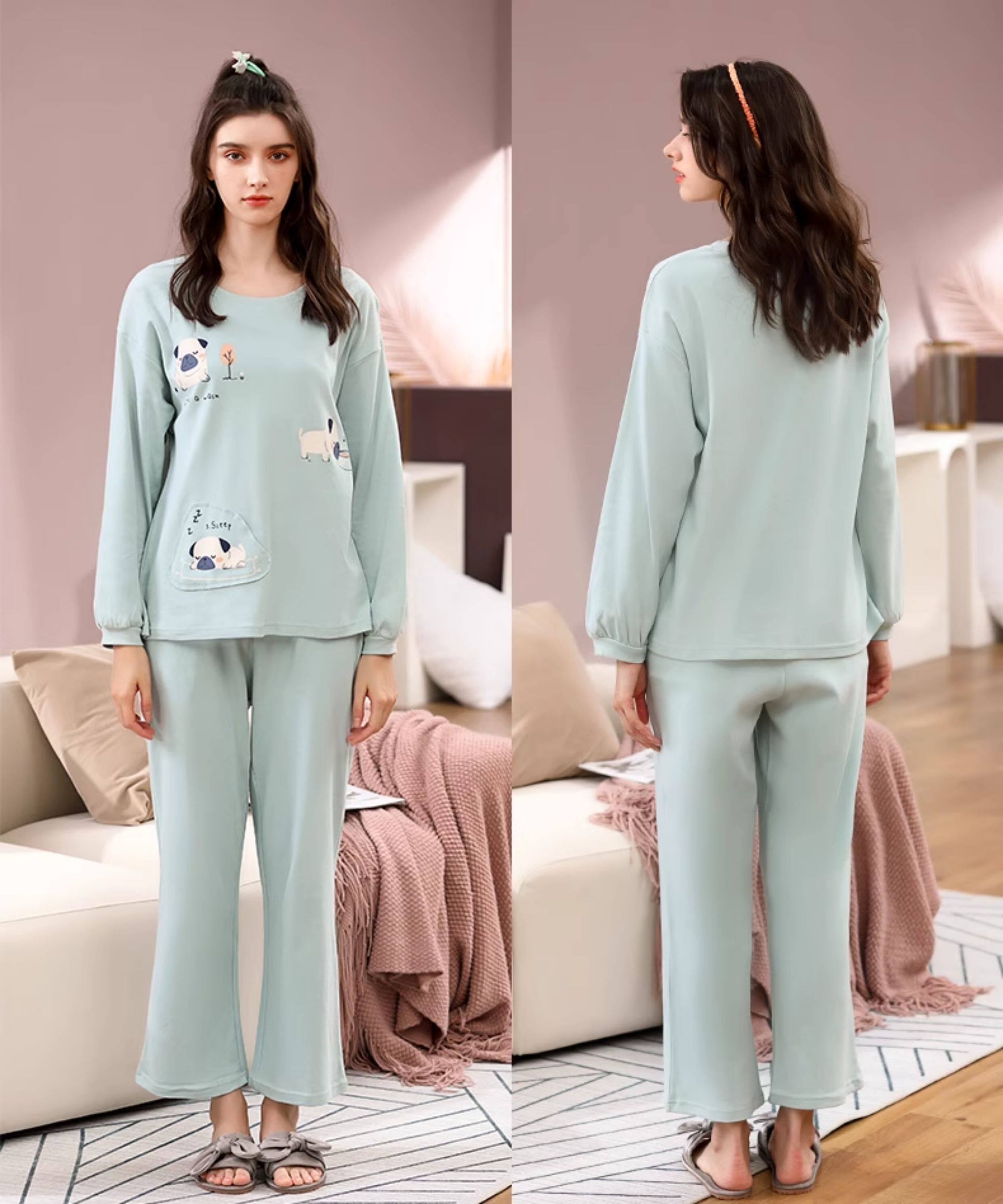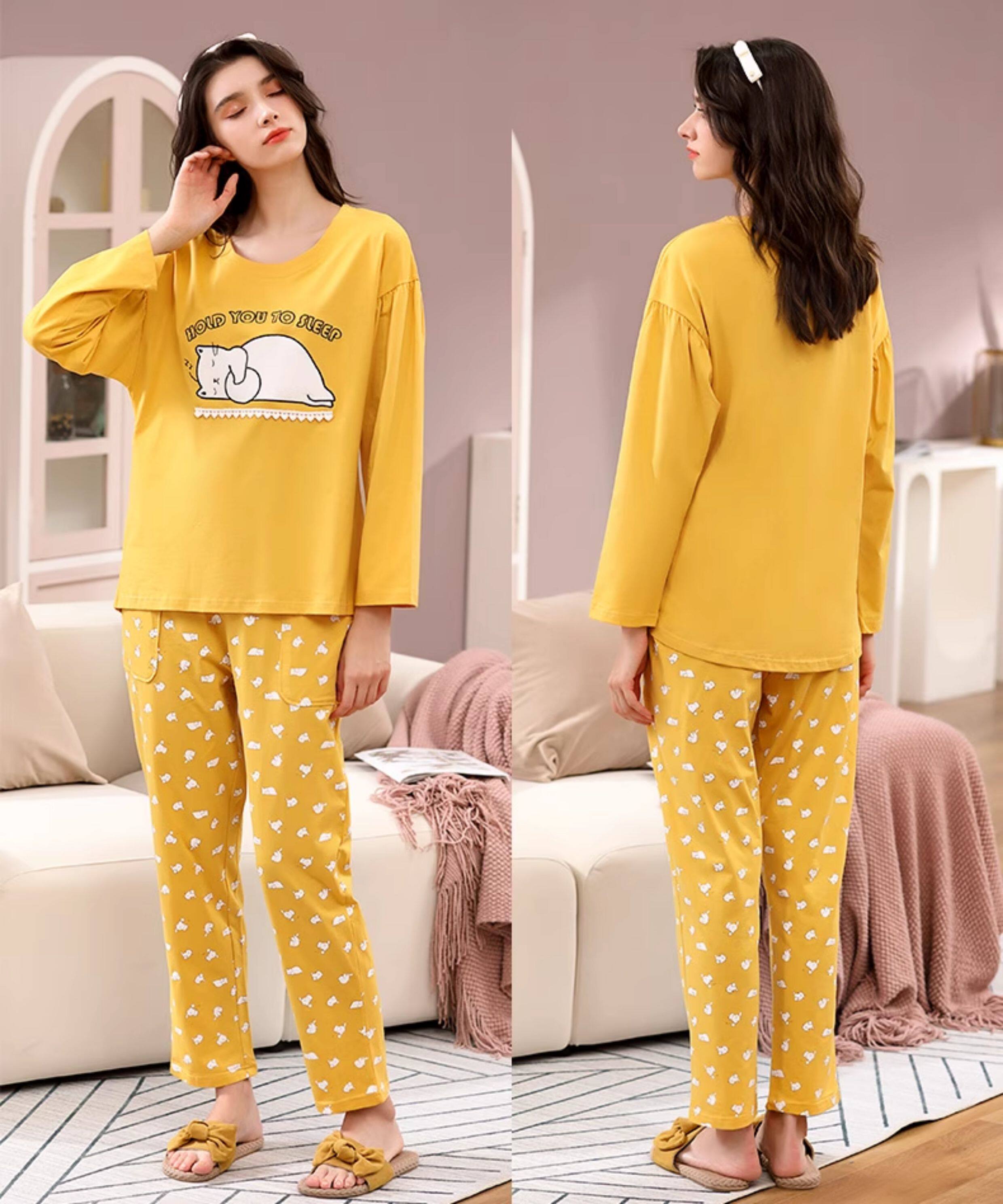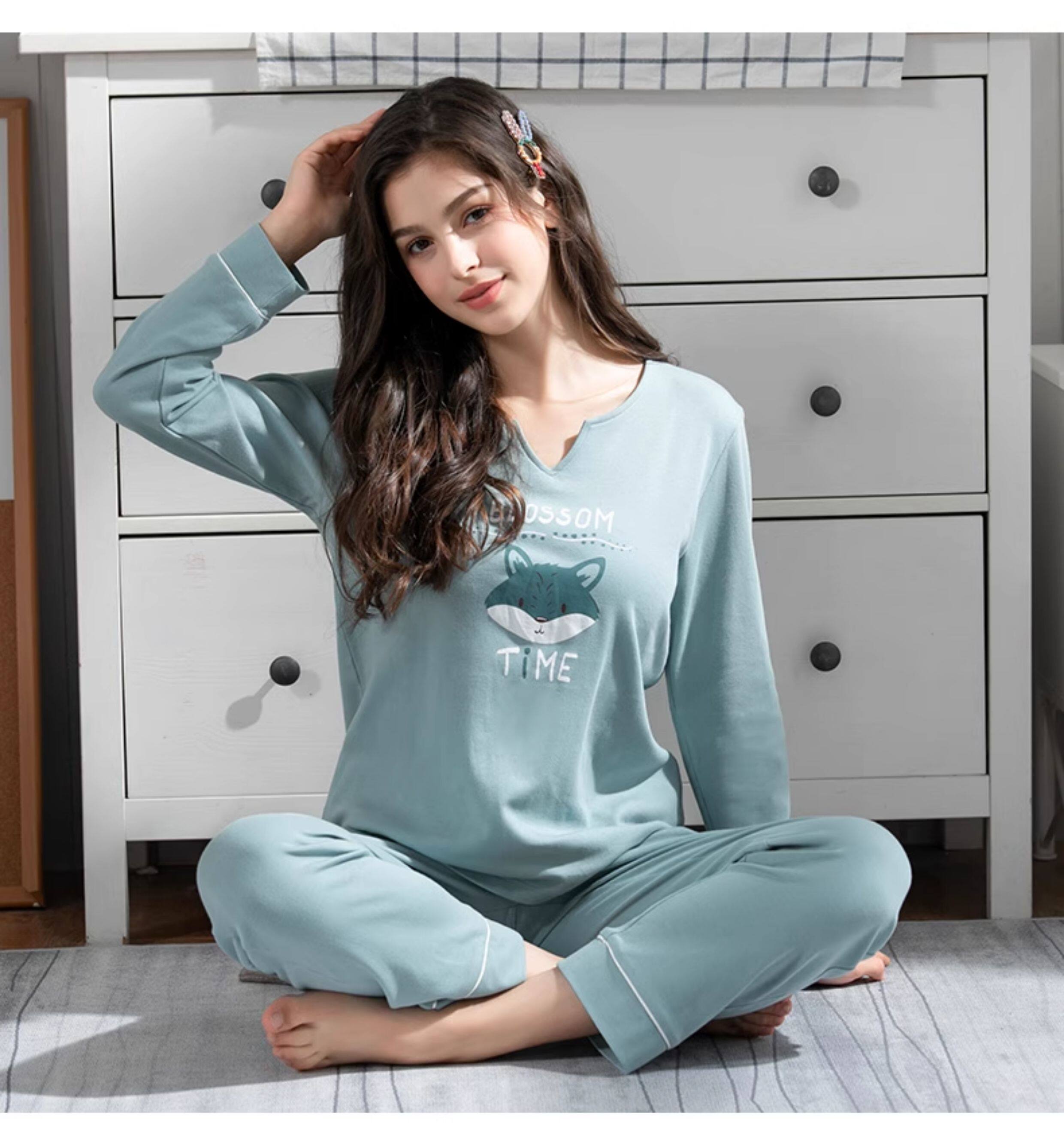 韩彩睡衣、春季女款、2025新款、纯棉、长袖、可外穿