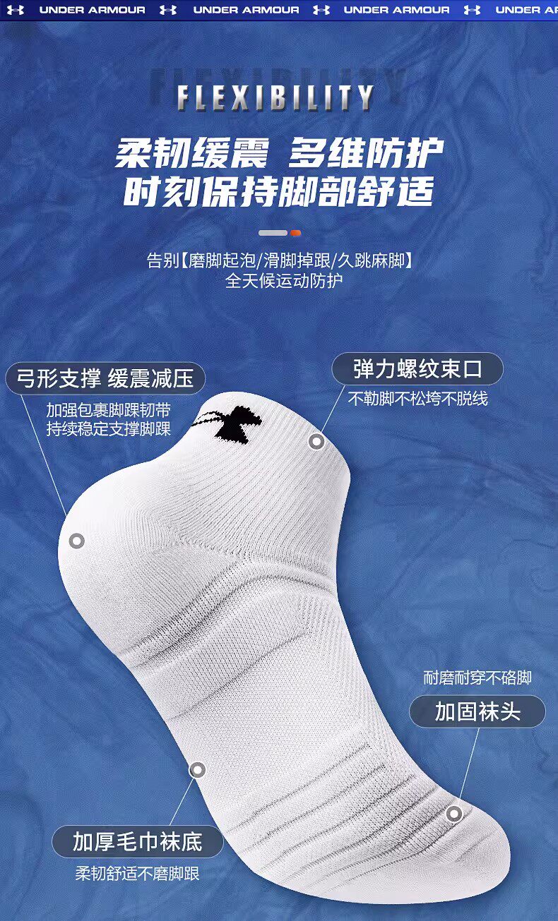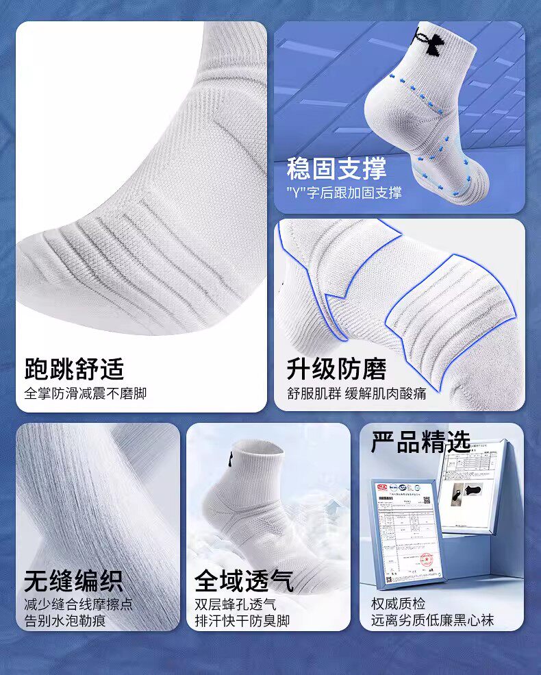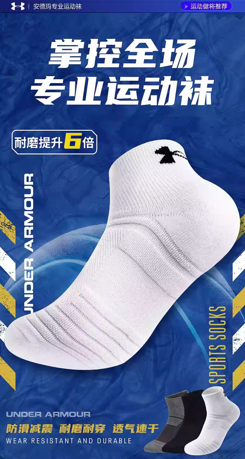 安德玛、袜子、羽毛球、运动袜、防臭、纯色短棉袜