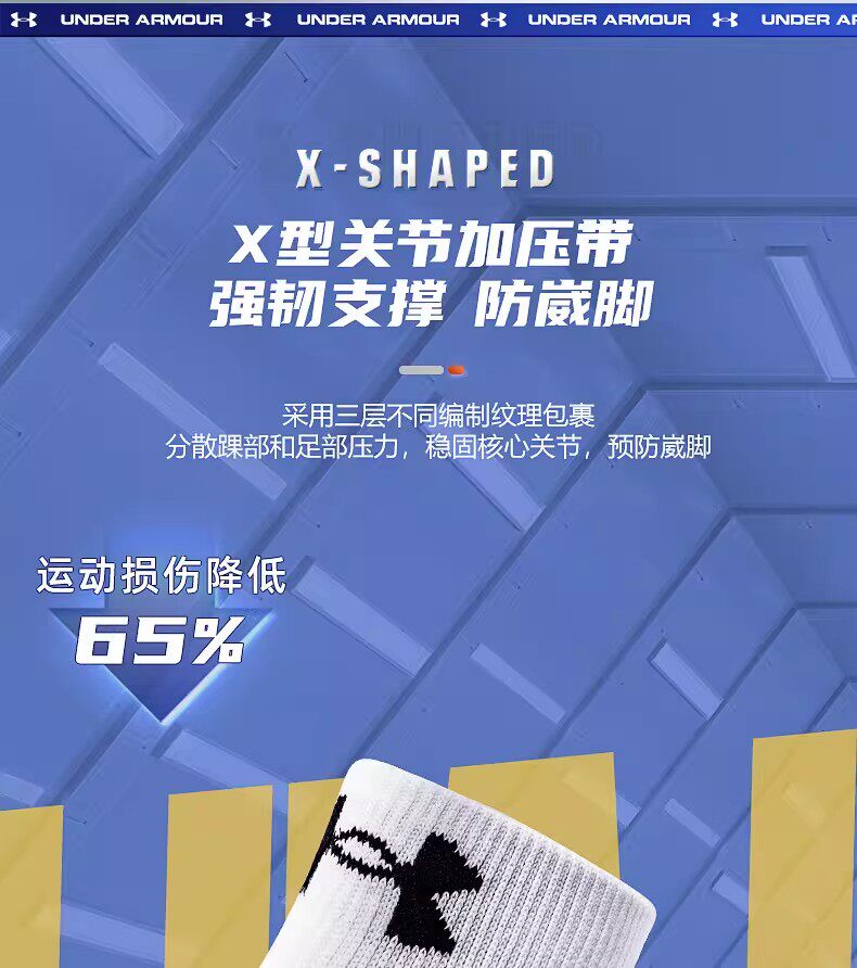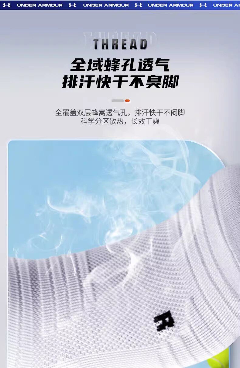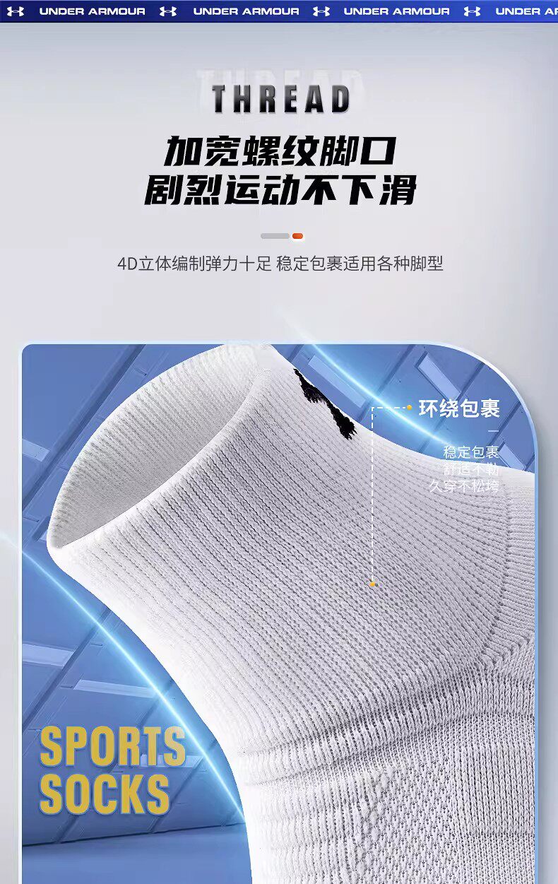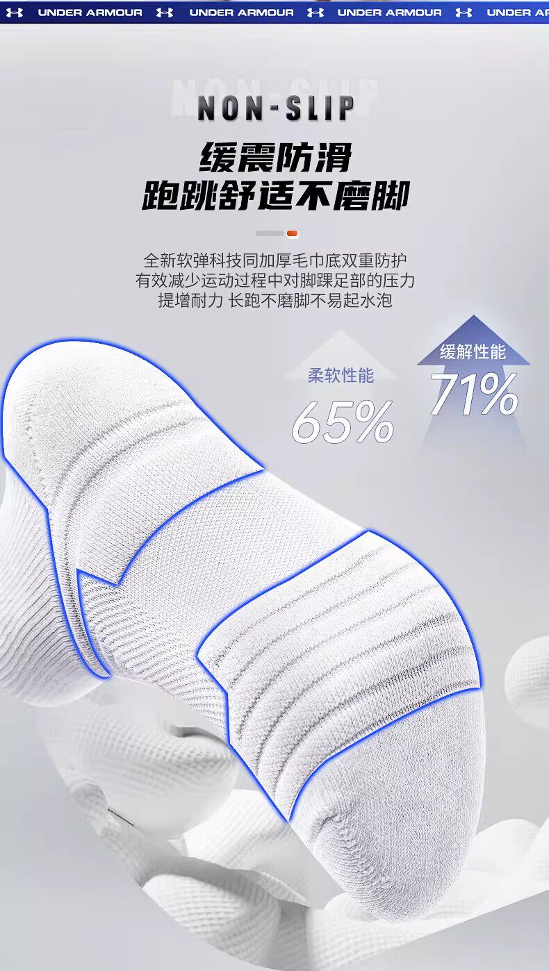 安德玛、袜子、羽毛球、运动袜、防臭、纯色短棉袜