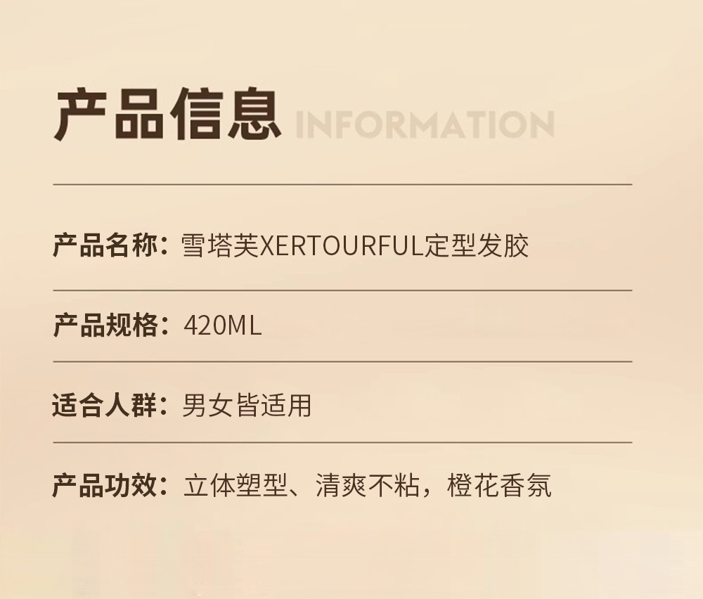 雪塔芙、定型发胶喷雾、420ml大容量、快速定型、持久24小时、清爽不油腻