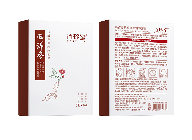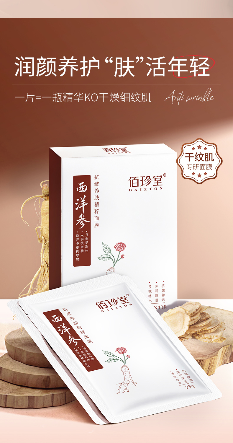 佰珍堂西洋参抗皱养肤精粹面膜a