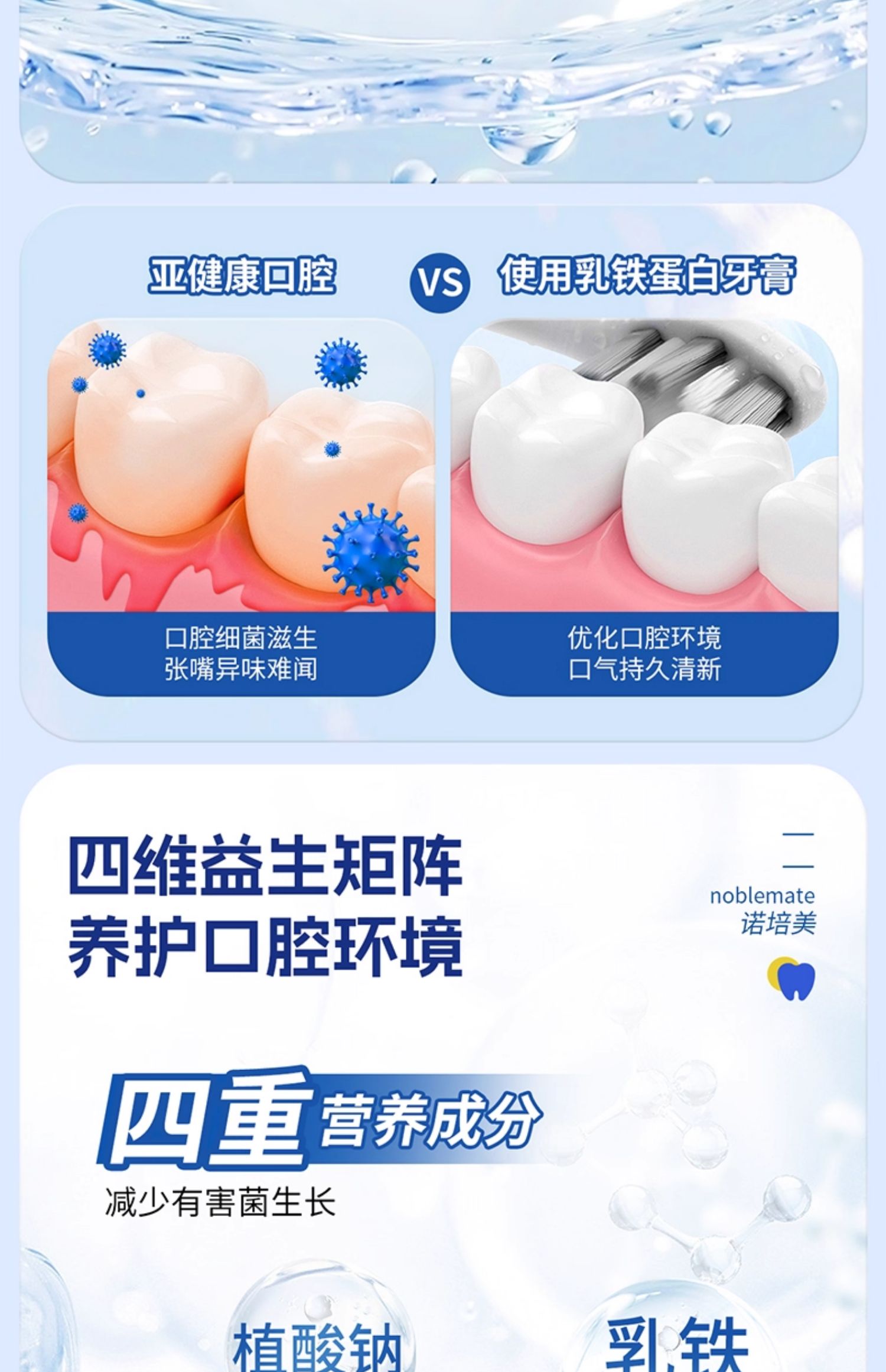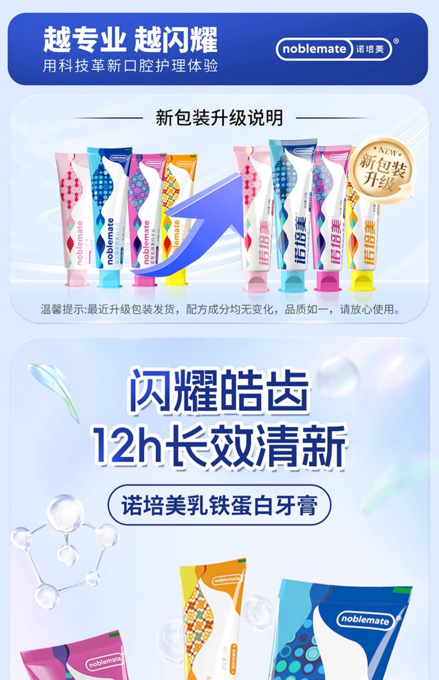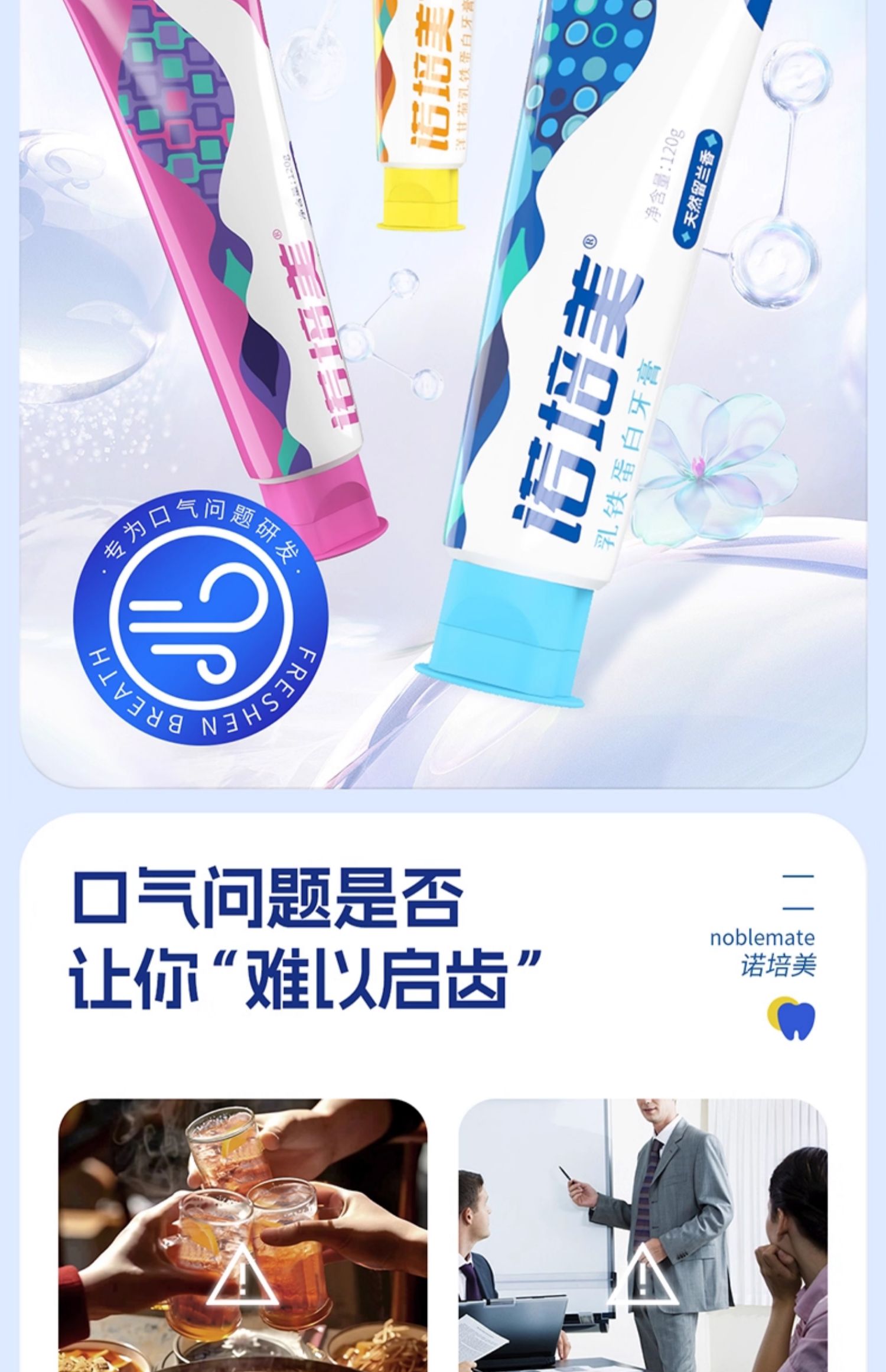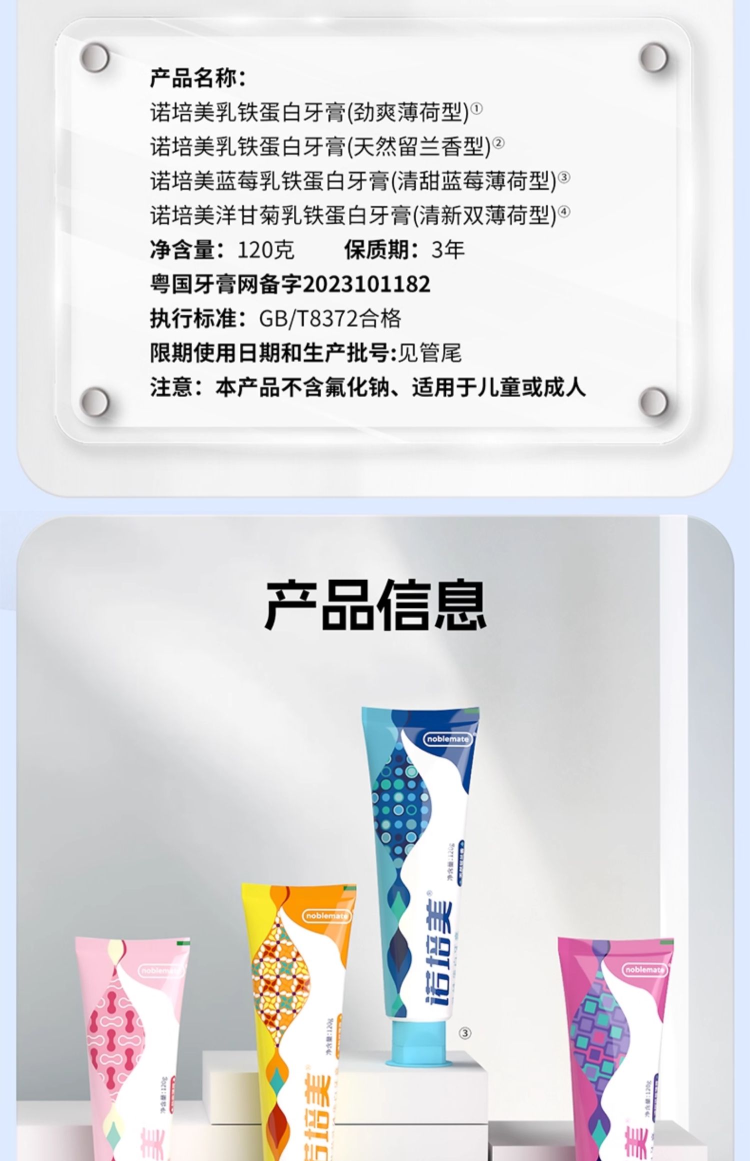 诺培美、乳铁蛋白、劲爽薄荷味、牙膏、清新口气、去牙渍洁白祛黄、买1送1