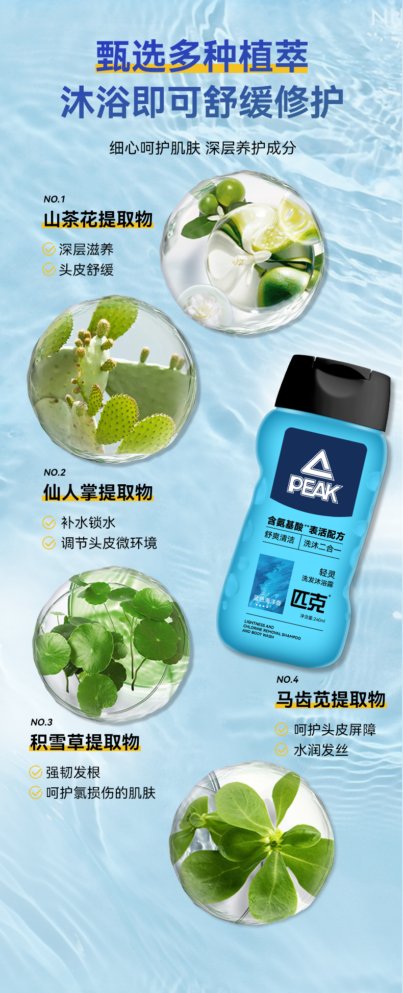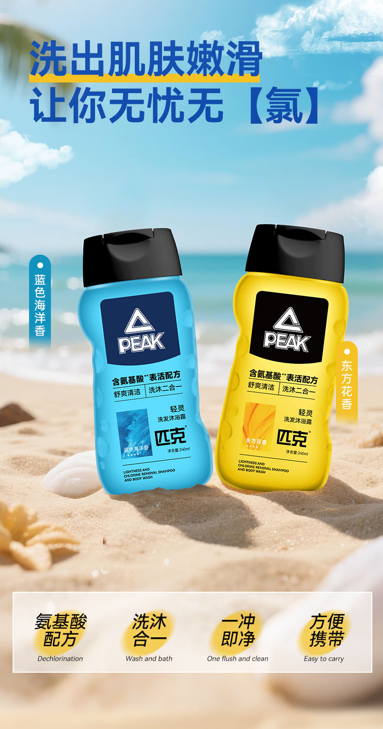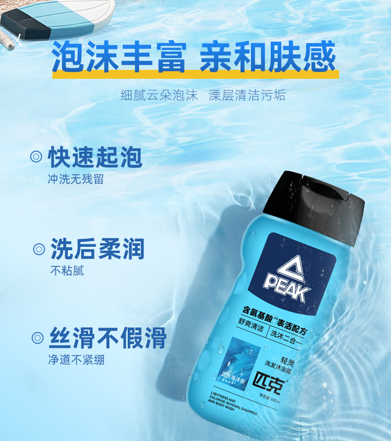 匹克、轻灵游泳、去氯二合一、沐浴露、氨基酸清洁、温和不伤肤、除氯除盐
