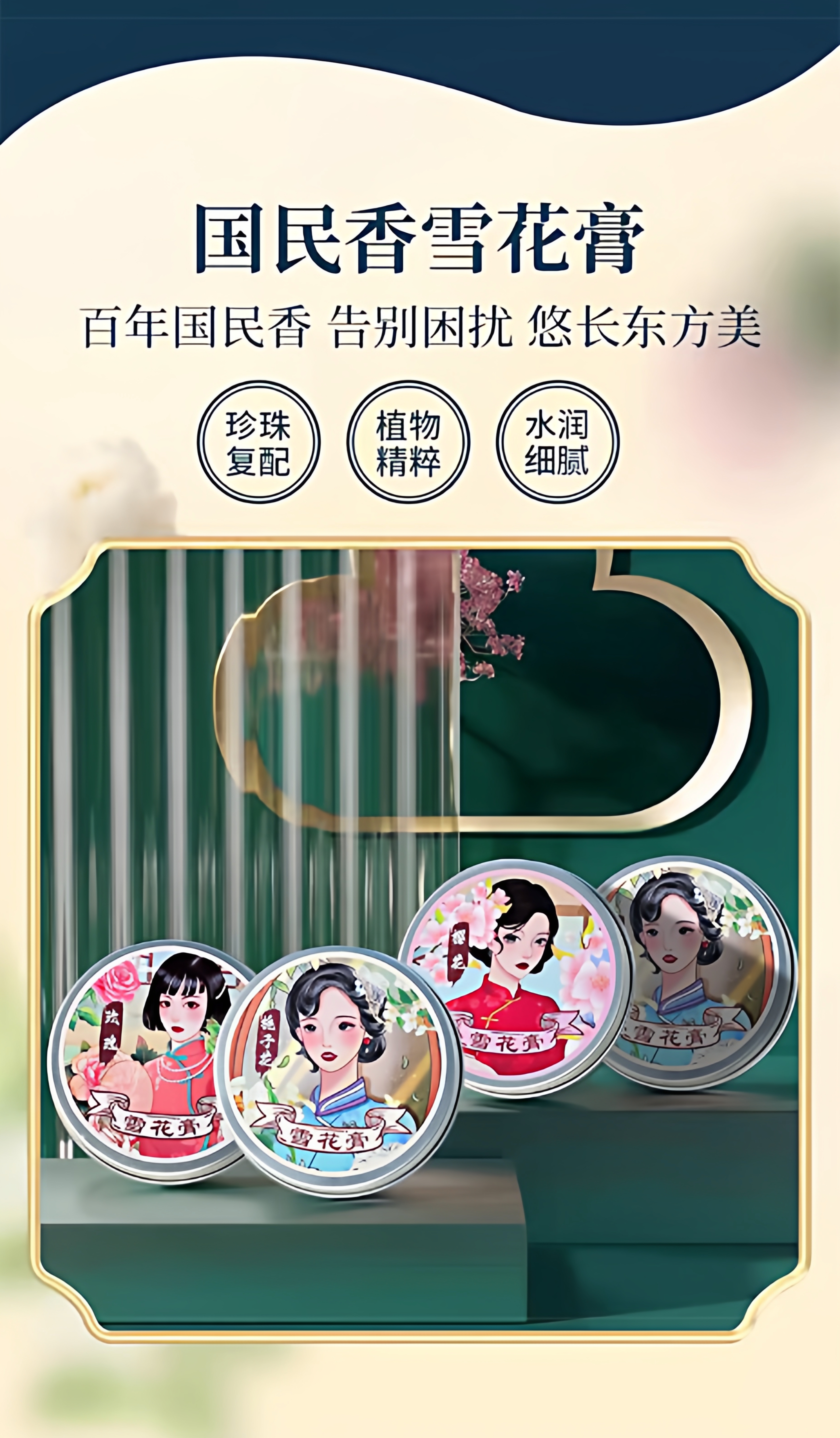 国货之光、复古雪花膏、补水保湿、肌肤润肤霜、温和配方、手足防裂