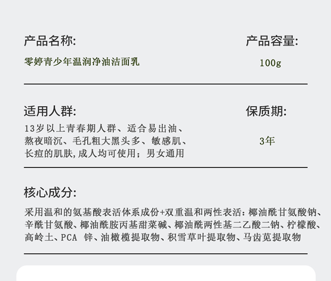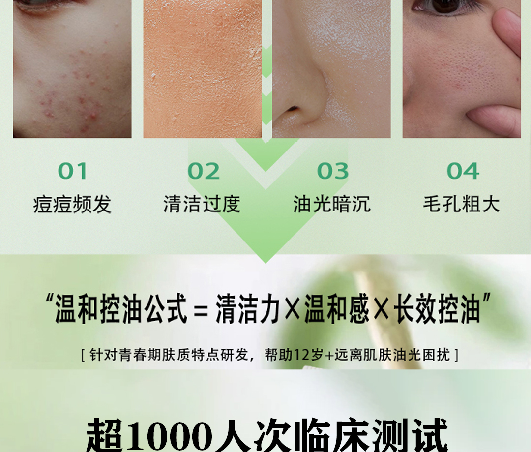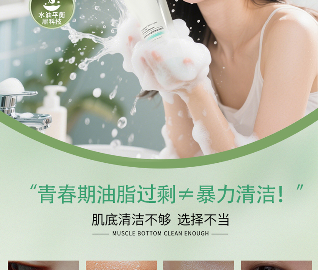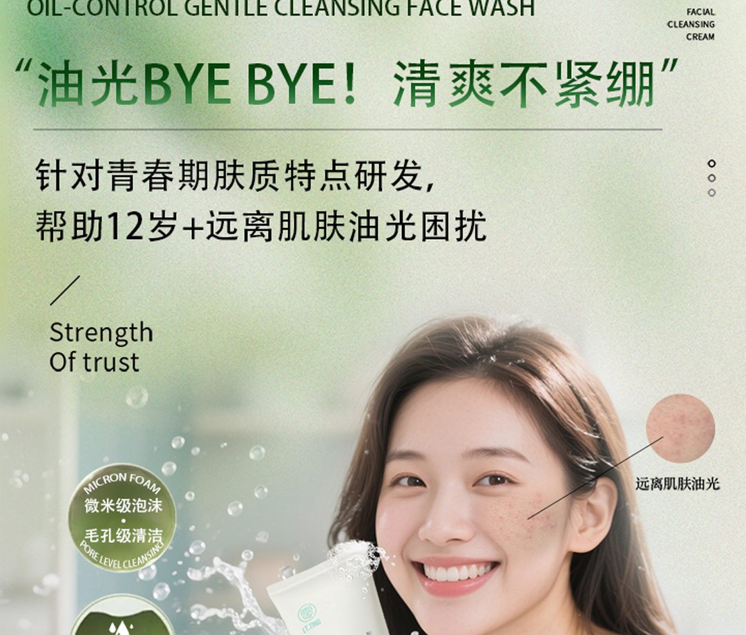 净透毛孔洗面奶、青少年、温和氨基酸、洁面乳、深层清洁、保湿控油、男女通用