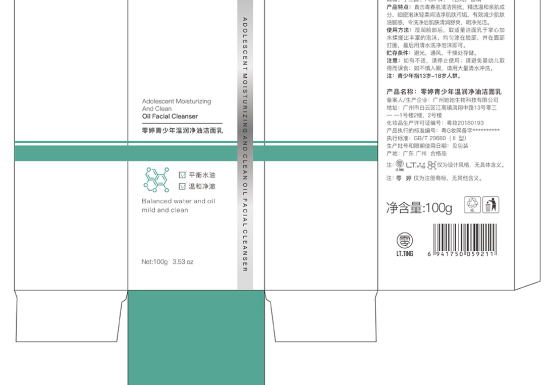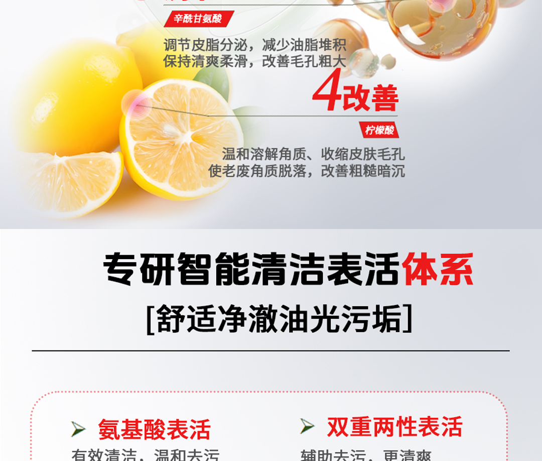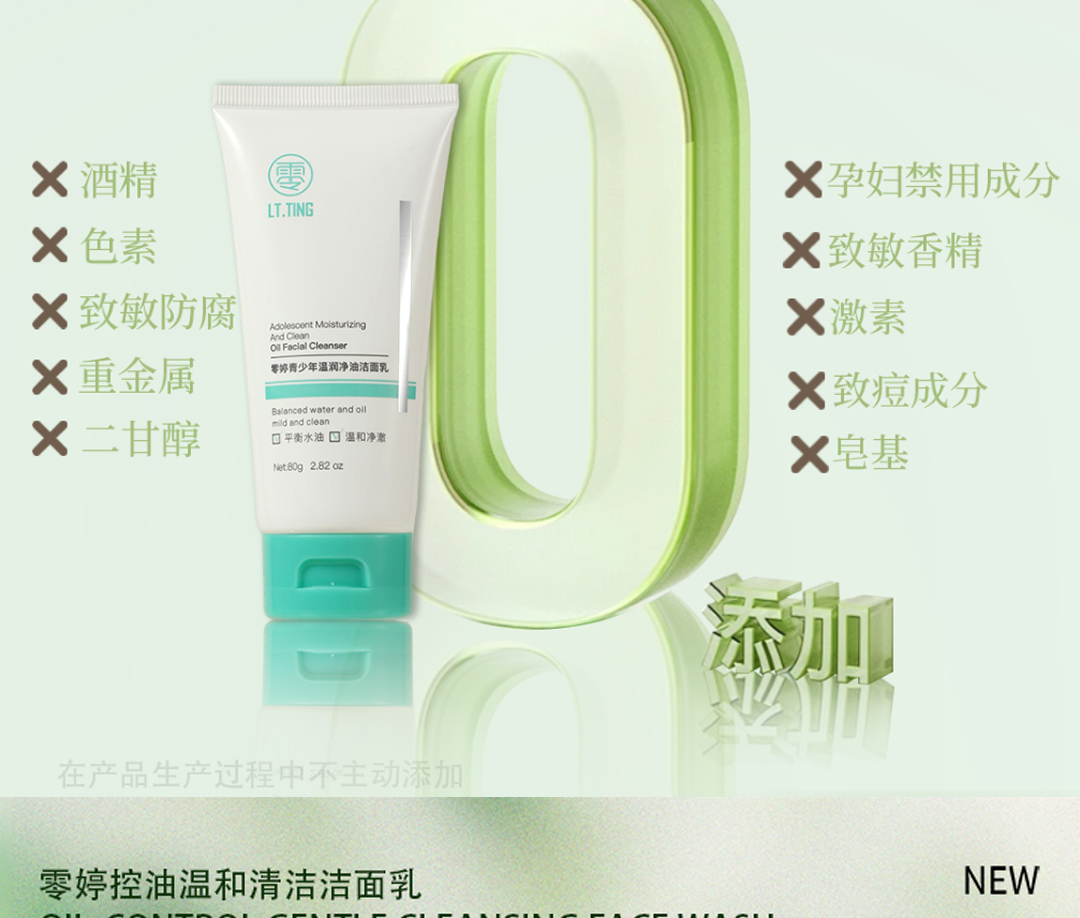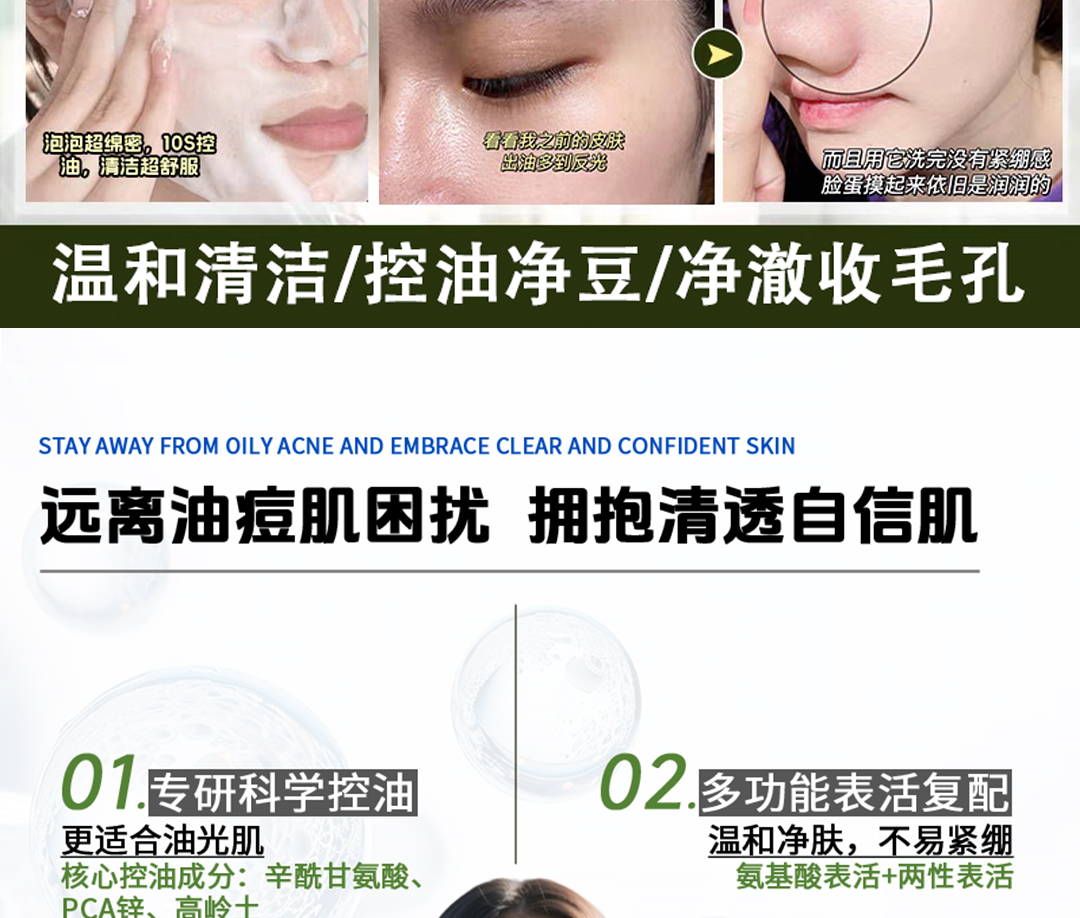 净透毛孔洗面奶、青少年、温和氨基酸、洁面乳、深层清洁、保湿控油、男女通用