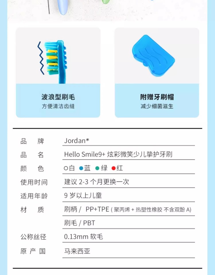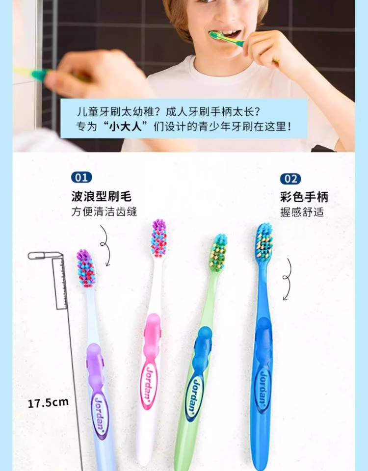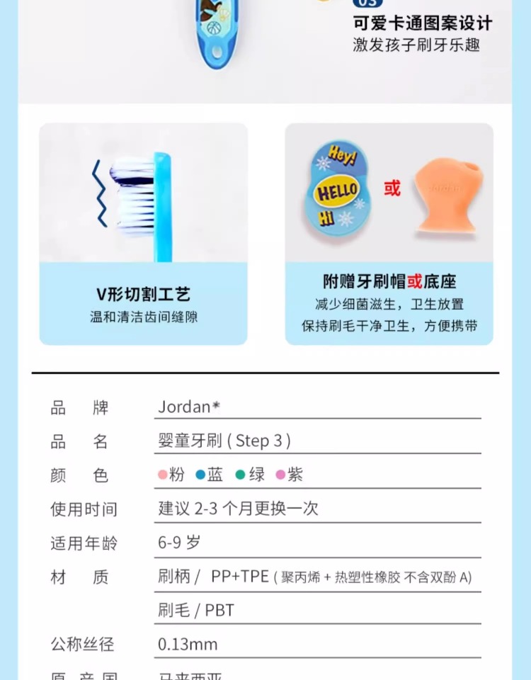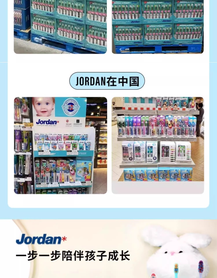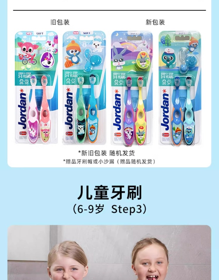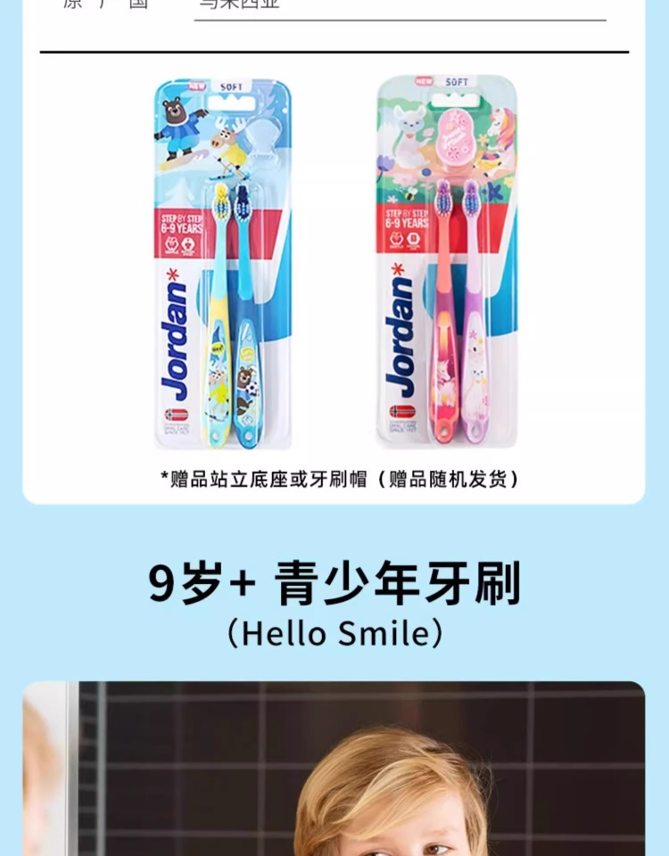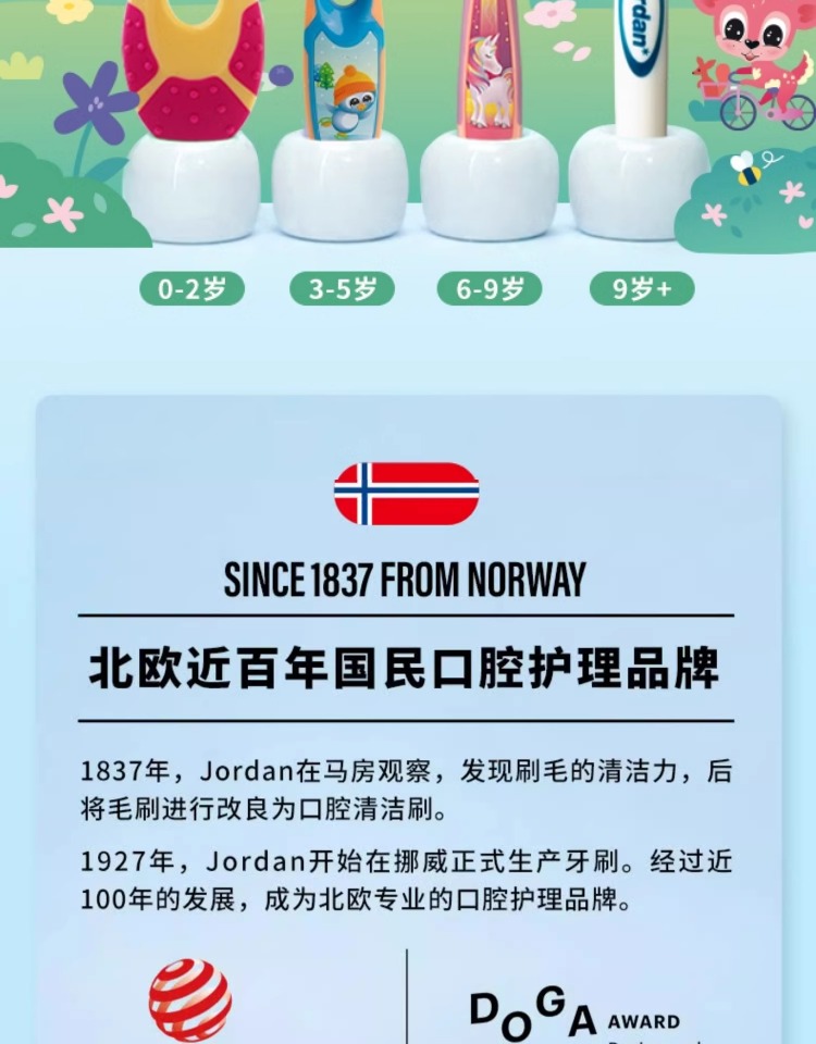 挪威Jordan0-12岁软毛牙刷分段护齿2支装宝宝婴幼儿童牙刷