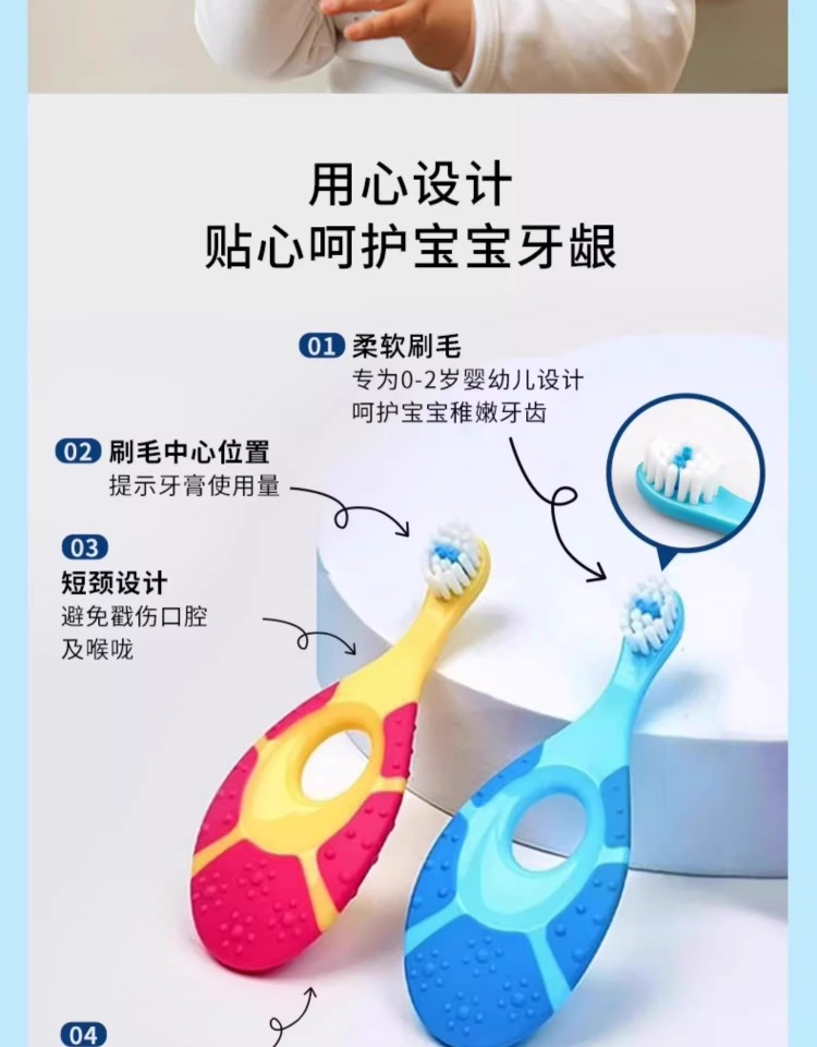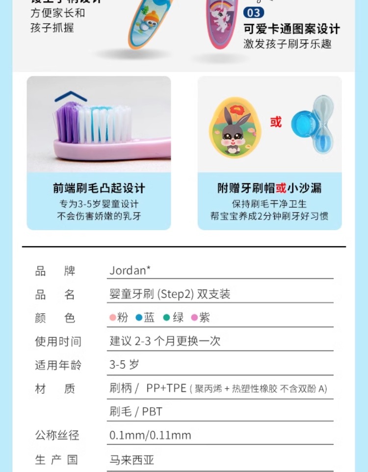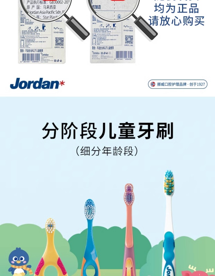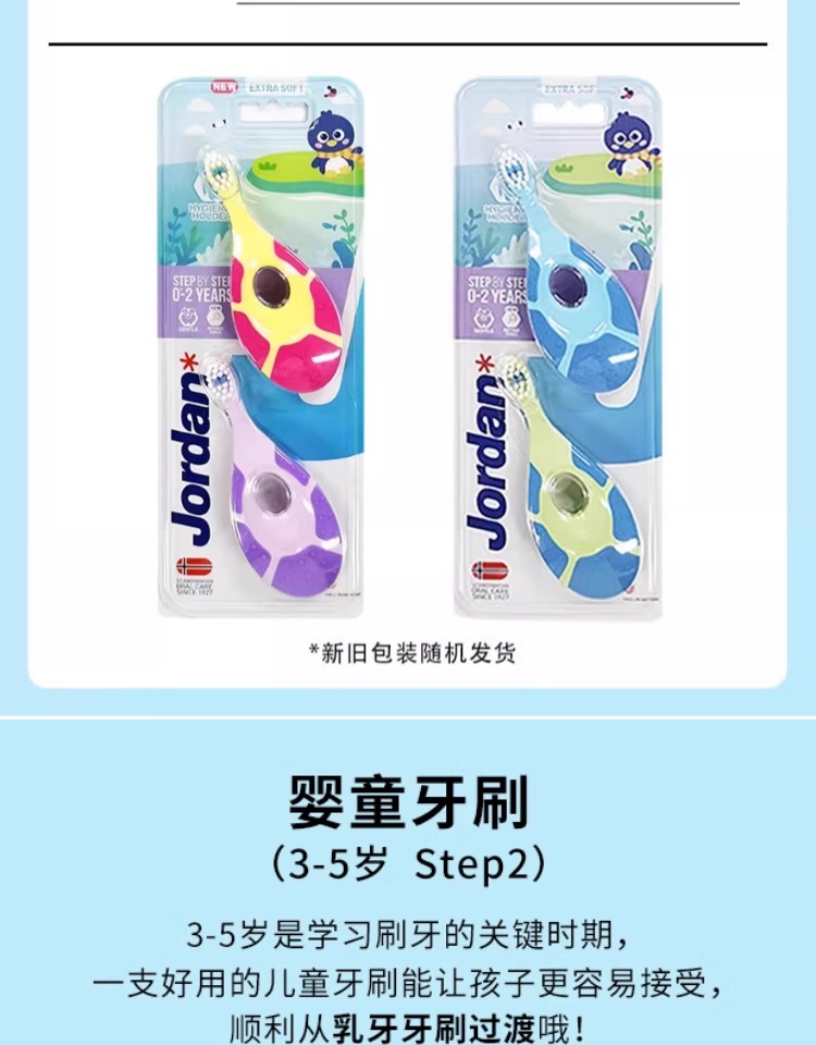 挪威Jordan、0 - 12岁、软毛牙刷、分段护齿、2支装、宝宝、婴幼儿童牙刷