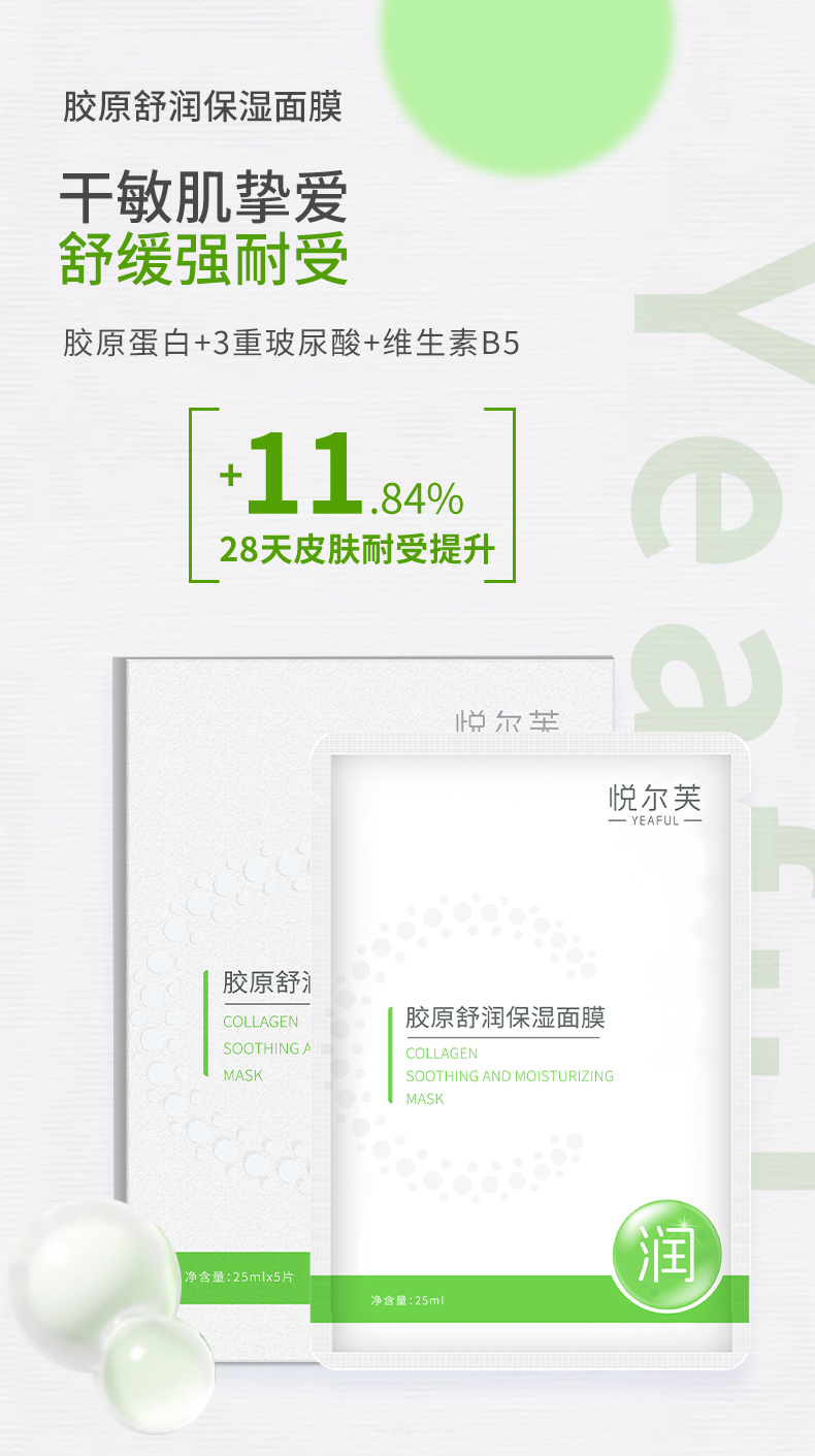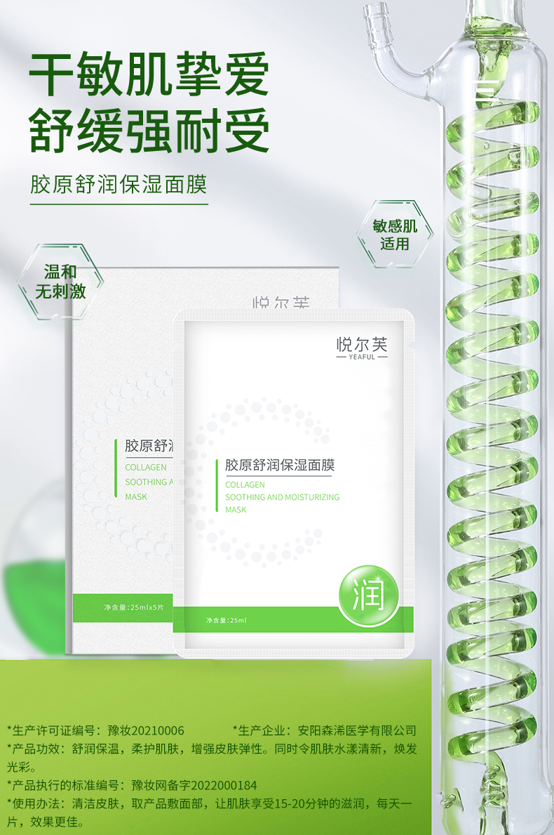 悦尔芙、胶原蛋白、舒润补水、保湿面膜、敏感肌、肌肤弹性、补水贴