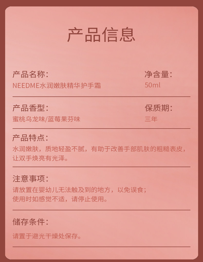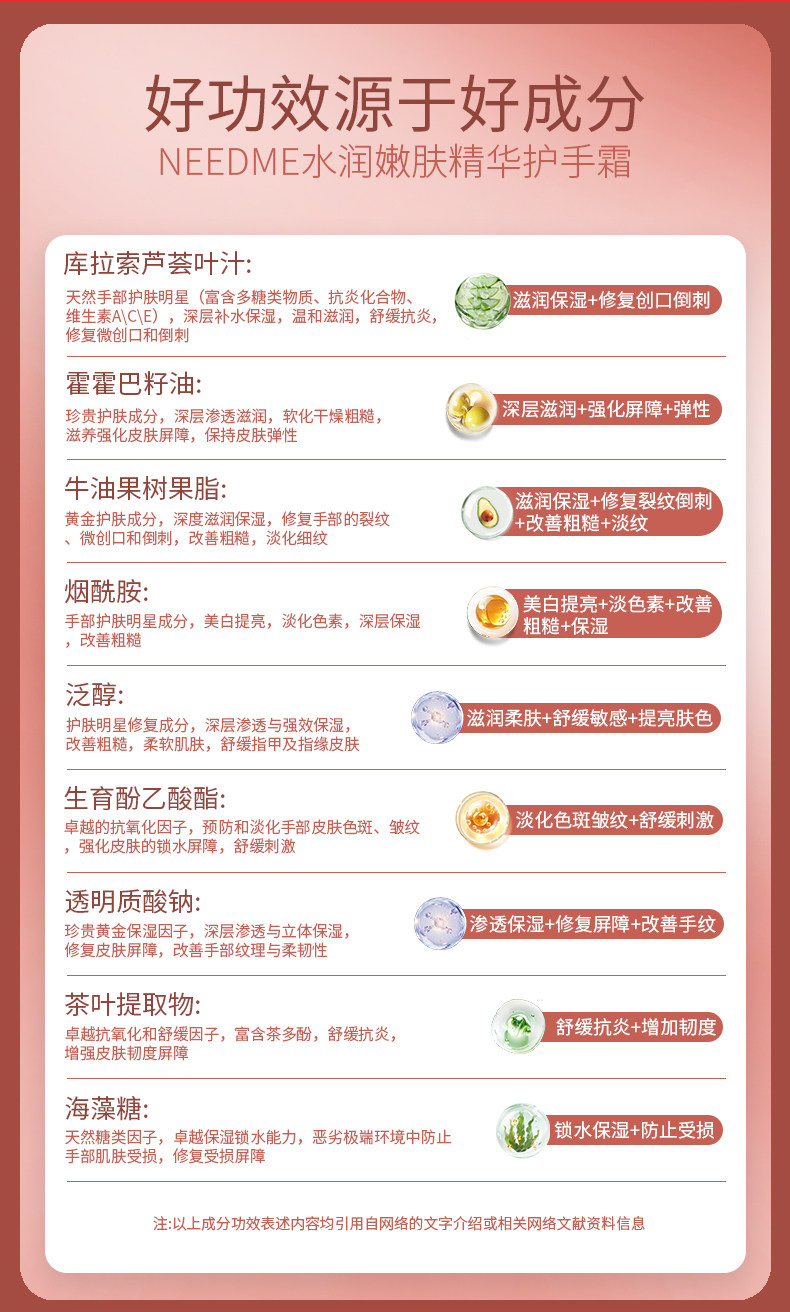 NEEDME、水润精华、护手霜、四重强韧因子、淡纹提亮、防粗糙开裂、春秋冬