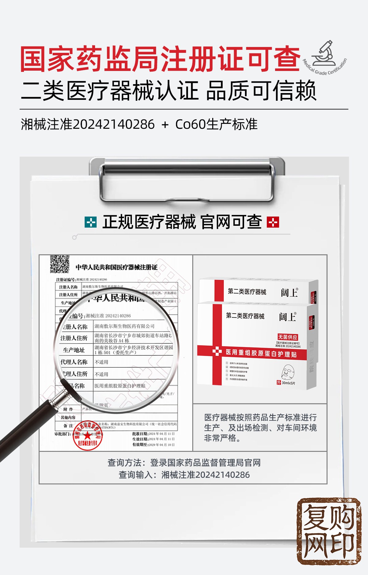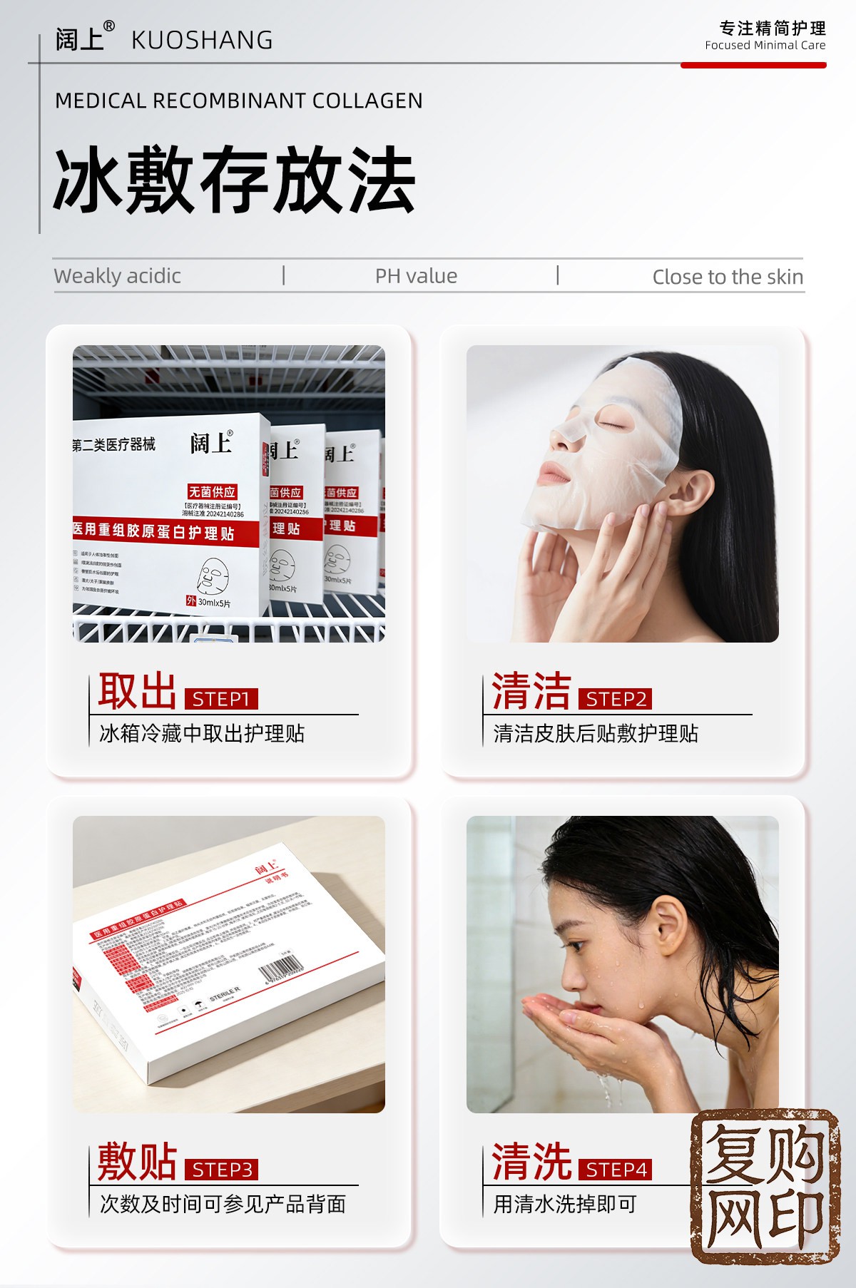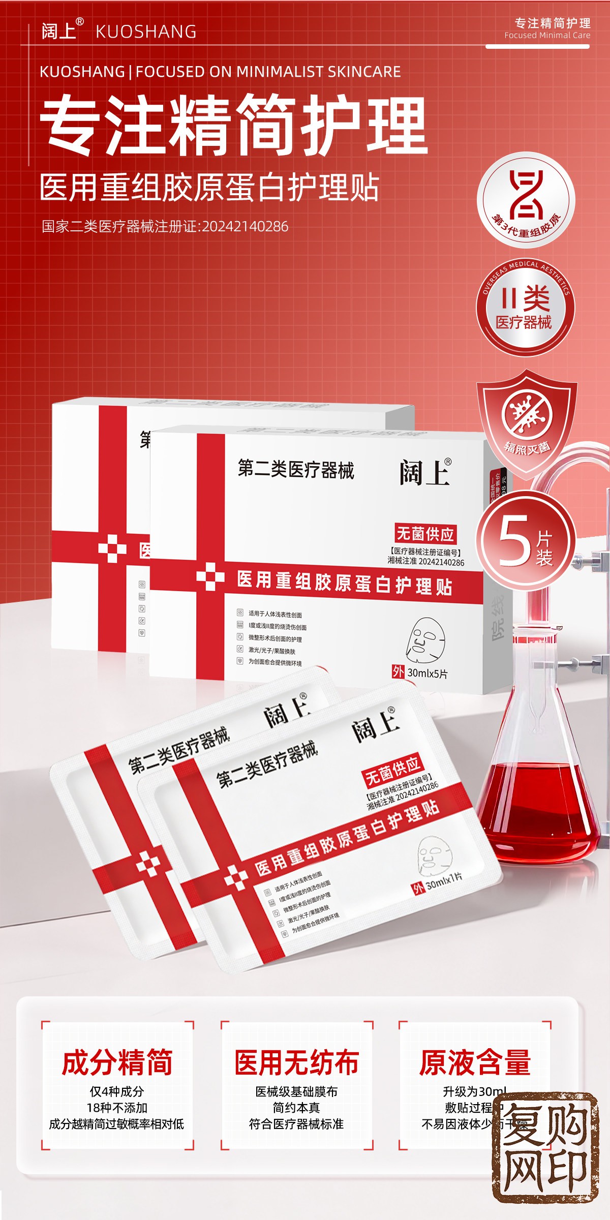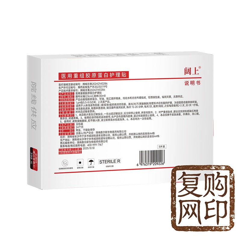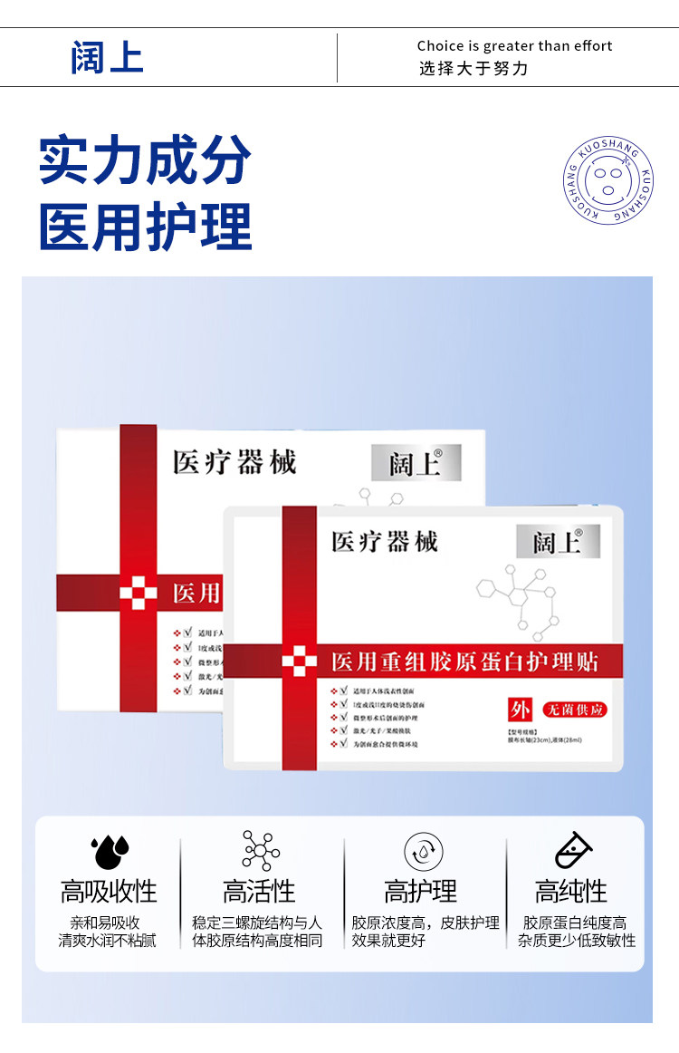 阔上医用重组胶原蛋白护理贴敷贴面部修护护理膜冷敷贴
